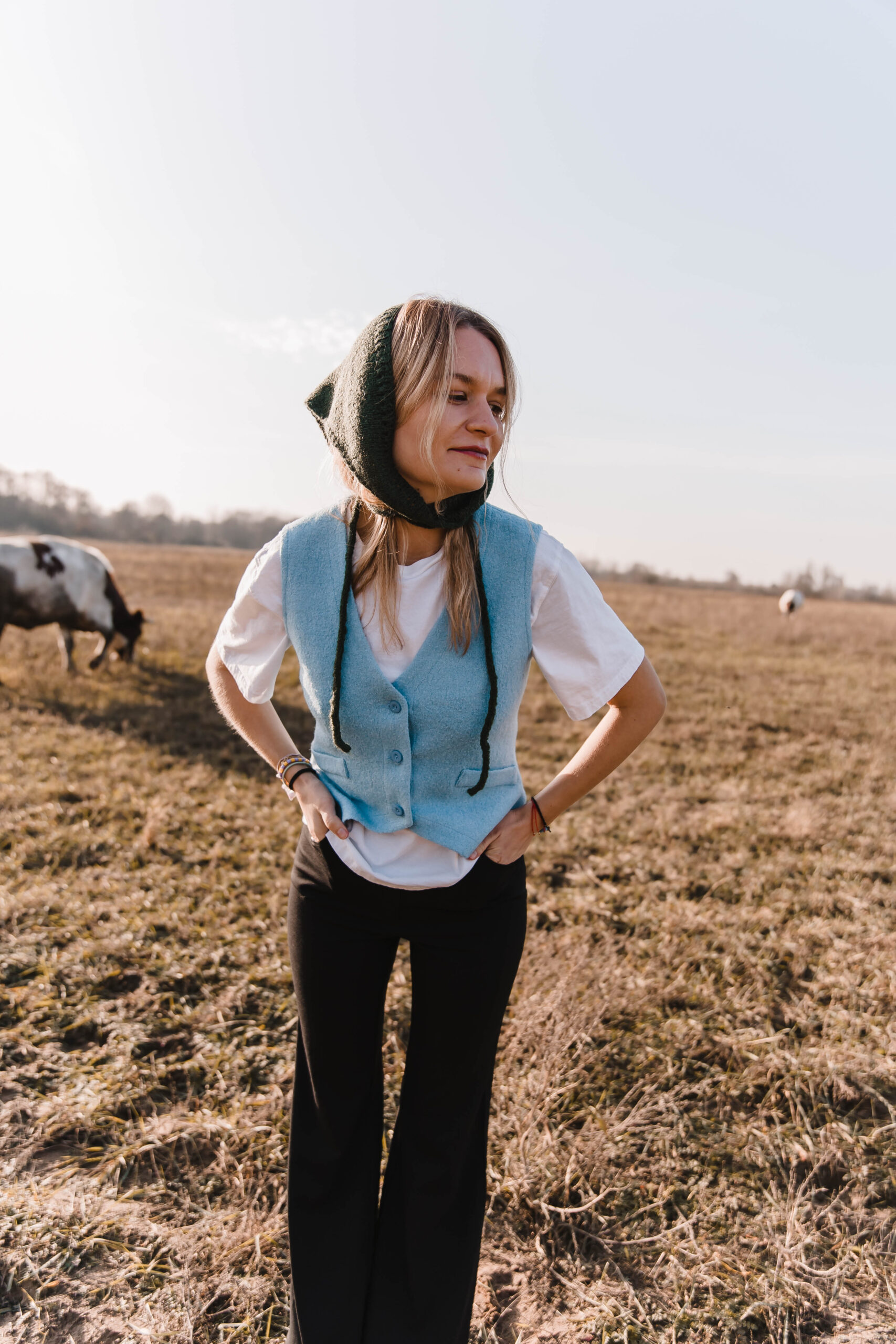 Nasza kamizelka to elegancki i ponadczasowy element garderoby. Wykonana z wysokiej jakości tkaniny, łączy komfort ciepła z minimalistycznym stylem. Dzięki swojemu uniwersalnemu krojowi doskonale sprawdzi się zarówno w połączeniu z sukienkami, jak i dżinsami czy eleganckimi spodniami. Kamizelka może być noszona na różne sposoby – z klasyczną koszulką lub bluzką, ale także do stanika jako samodzielny akcent. To must-have, który świetnie uzupełnia zarówno casualowe, jak i bardziej formalne zestawy.