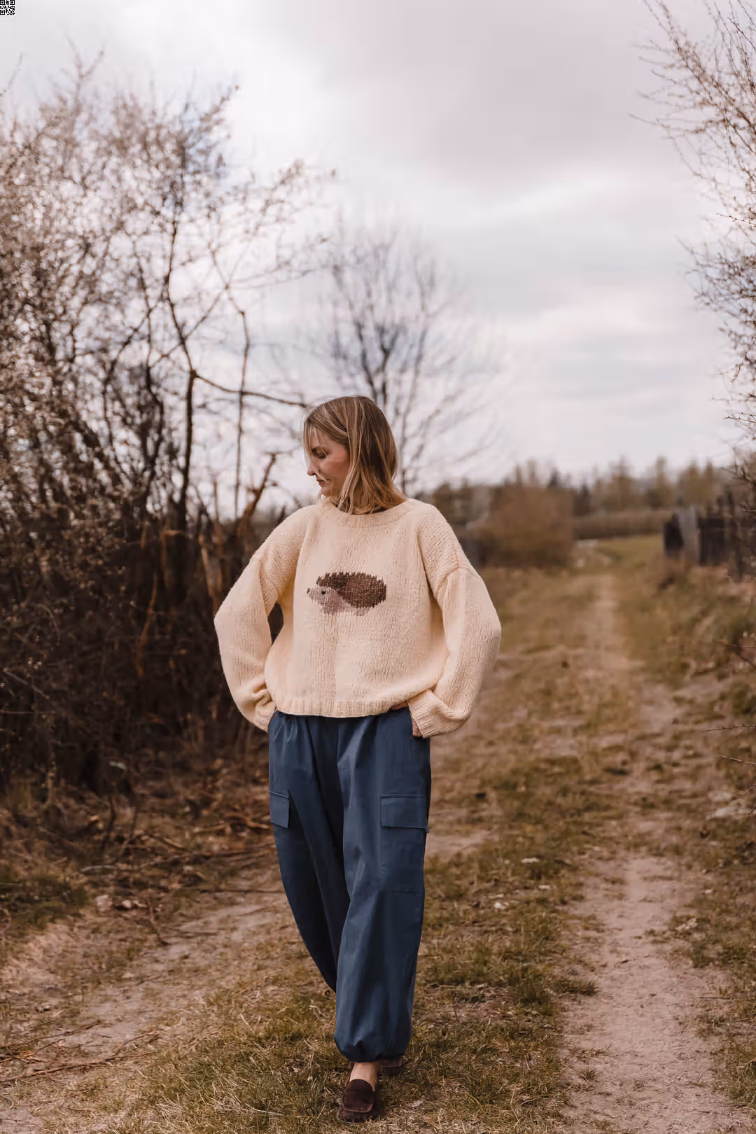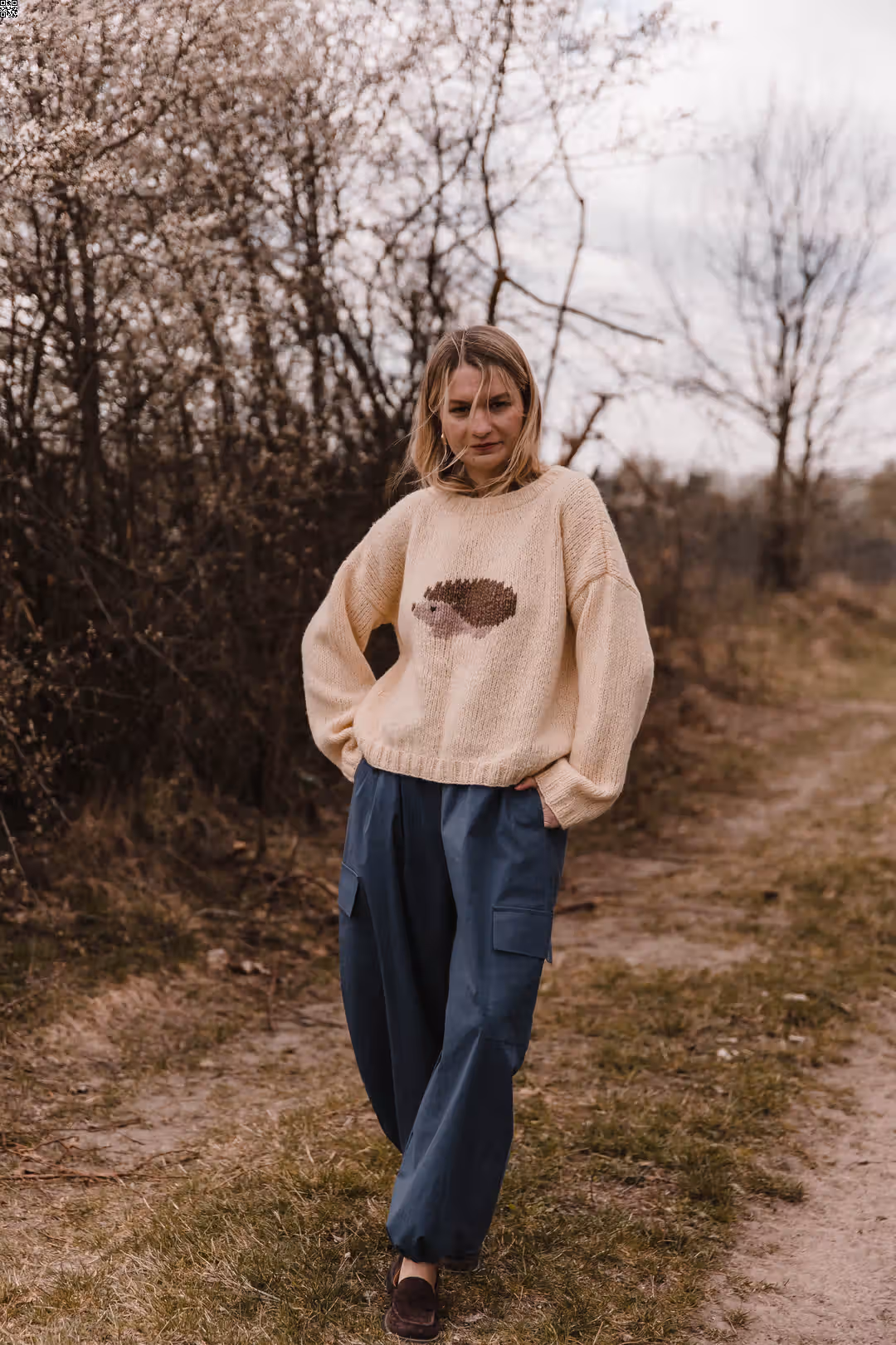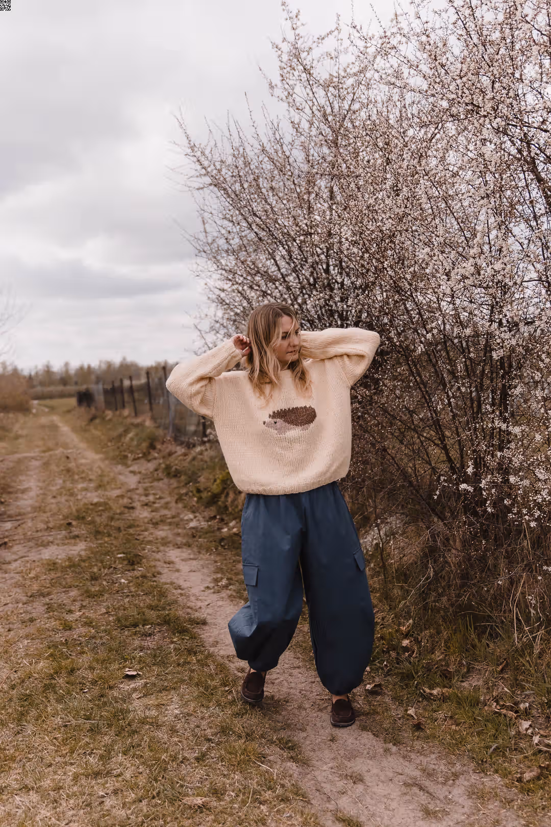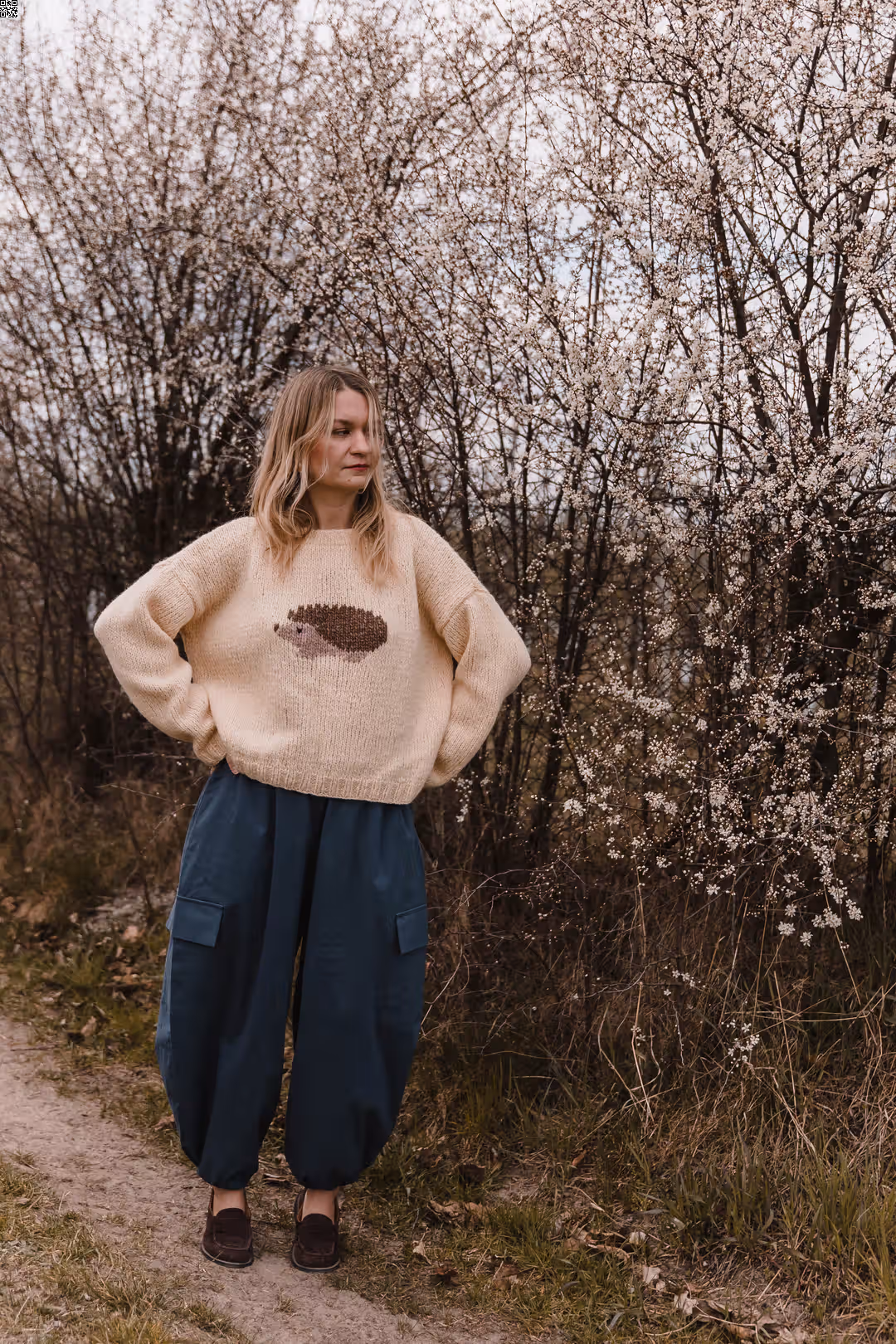 Spodnie o balonowej formie, które naturalnie układają się na sylwetce i nadają jej lekko rzeźbiarskiego kształtu. Materiał pracuje w ruchu, dzięki czemu całość wygląda swobodnie, ale nie traci formy. W pasie mają wygodną gumkę, a dół nogawek możesz regulować troczkami — nosić je bardziej zamknięte, podkreślając ich kształt, albo luźniej, w bardziej casualowy sposób. Z przodu znajdziesz klasyczne kieszenie w szwach, a po bokach dodatkowe kieszenie z klapkami, które wprowadzają lekko użytkowy charakter. To model, który łączy wygodę z wyrazistą formą — do noszenia na co dzień, bez większego zastanawiania się.