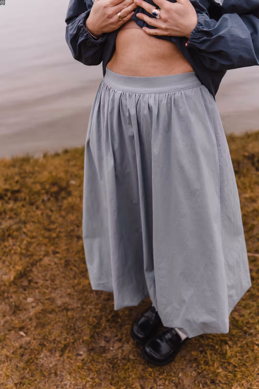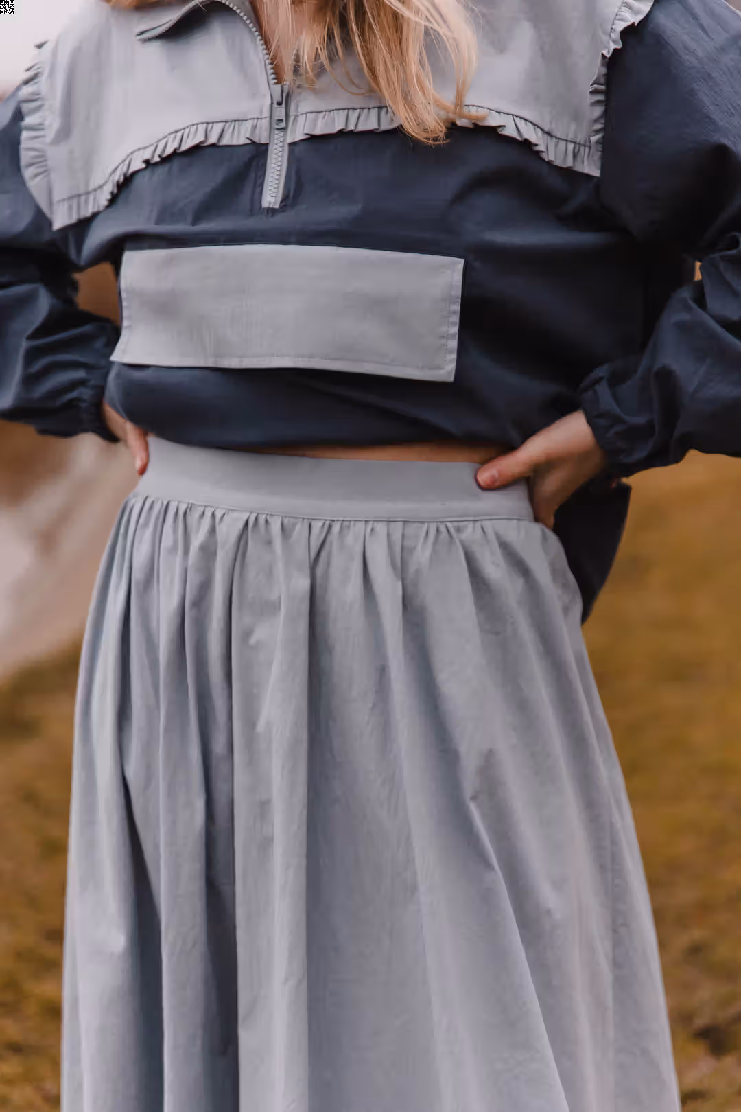 Ta spódnica bombka została zaprojektowana tak, by łączyć wygodę z ciekawą formą. Dzięki gładkiemu pasowi bez gumki świetnie trzyma się na swoim miejscu i daje bardziej eleganckie wykończenie talii. Konstrukcja spódnicy sprawia, że dół układa się w miękką bombkę — objętościową, ale nieskomplikowaną w noszeniu. Materiał jest lekki i przyjemnie pracuje w ruchu, co sprawia, że spódnica wygląda dobrze zarówno z krótką bluzą, jak i z dopasowanym topem. W zestawie z kangurką tworzy harmonijny komplet o sportowo-casualowym charakterze — idealny na co dzień, ale na swój sposób naprawdę wyjątkowy.