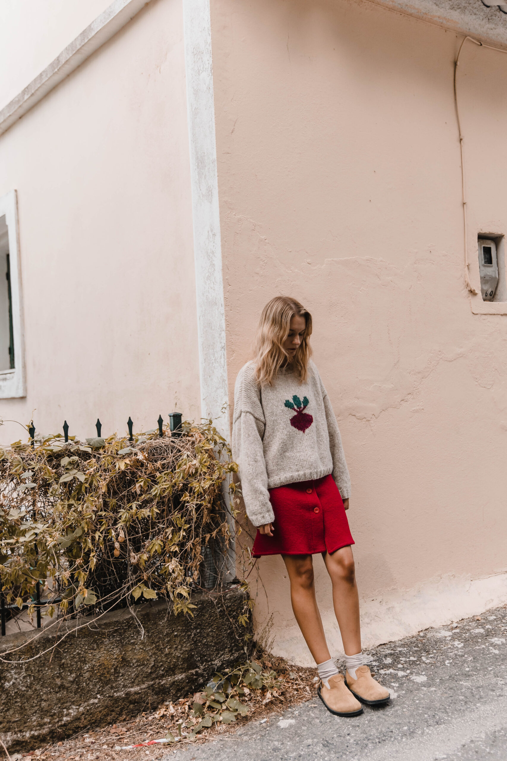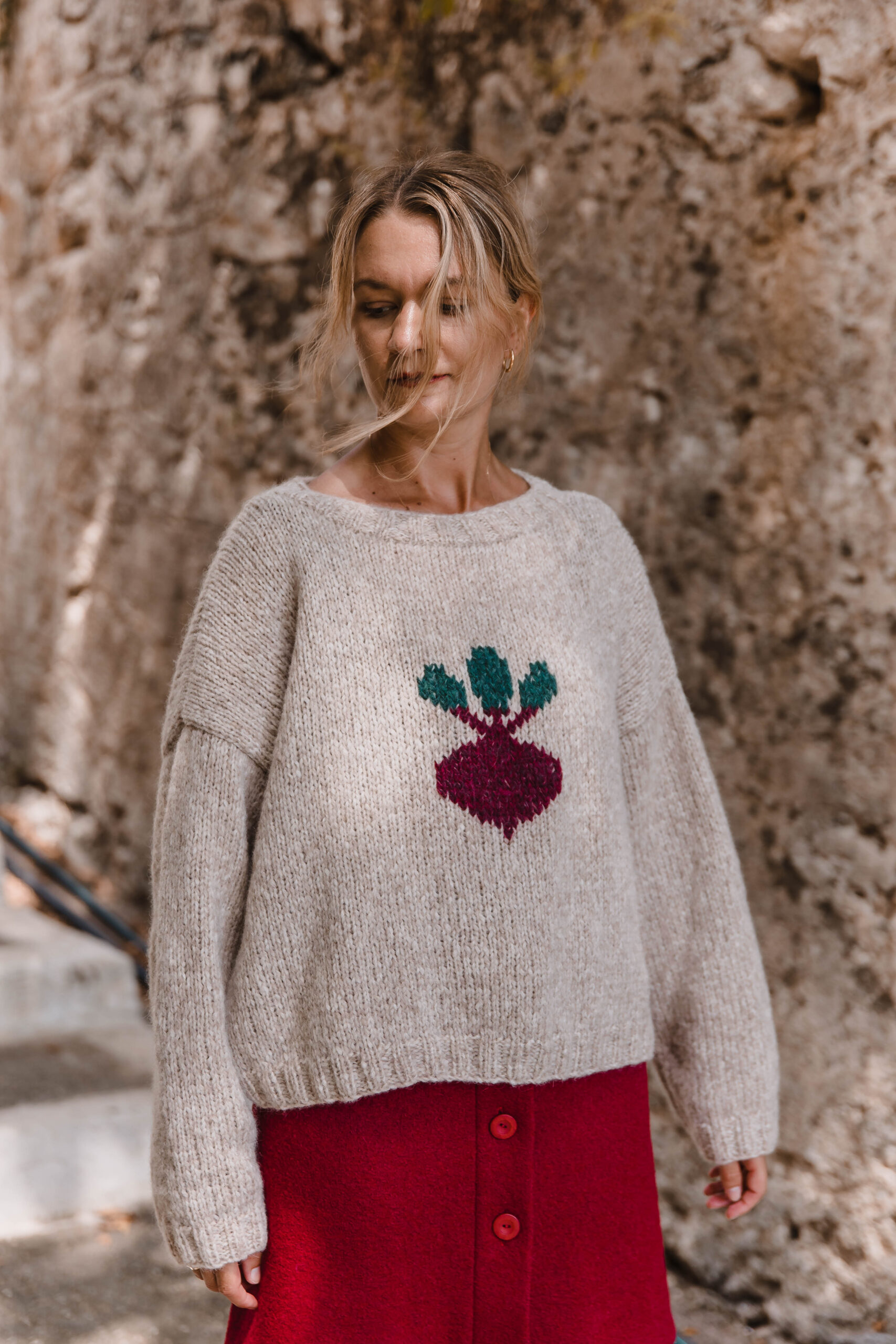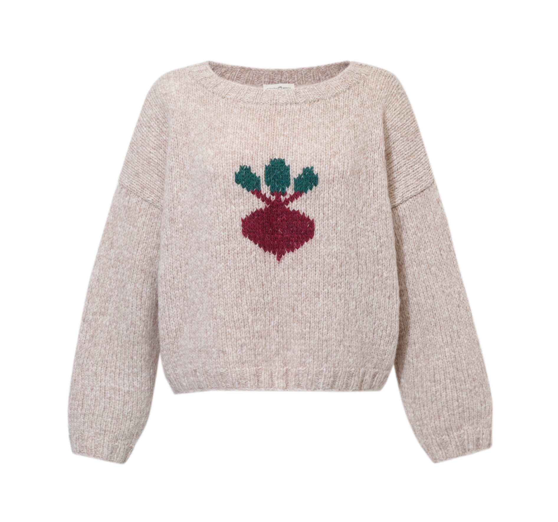 Niebanalny sweter, który wyróżni Cię z tłumu! W ciepłym, pszenicznym odcieniu, idealnie wpisuje się w jesienno-zimowe klimaty. Na przodzie znajduje się haft buraka – oryginalny akcent, który dodaje humoru i charakteru. Wykonany z miękkiej, przyjemnej w dotyku włóczki, zapewnia komfort i ciepło przez cały dzień. Noś go z jeansami i sneakersami lub z naszą Hot Red Mini Skirt, tworząc luźny, ale stylowy look. Ten sweter to idealny wybór dla tych, którzy lubią modę z przymrużeniem oka 😉