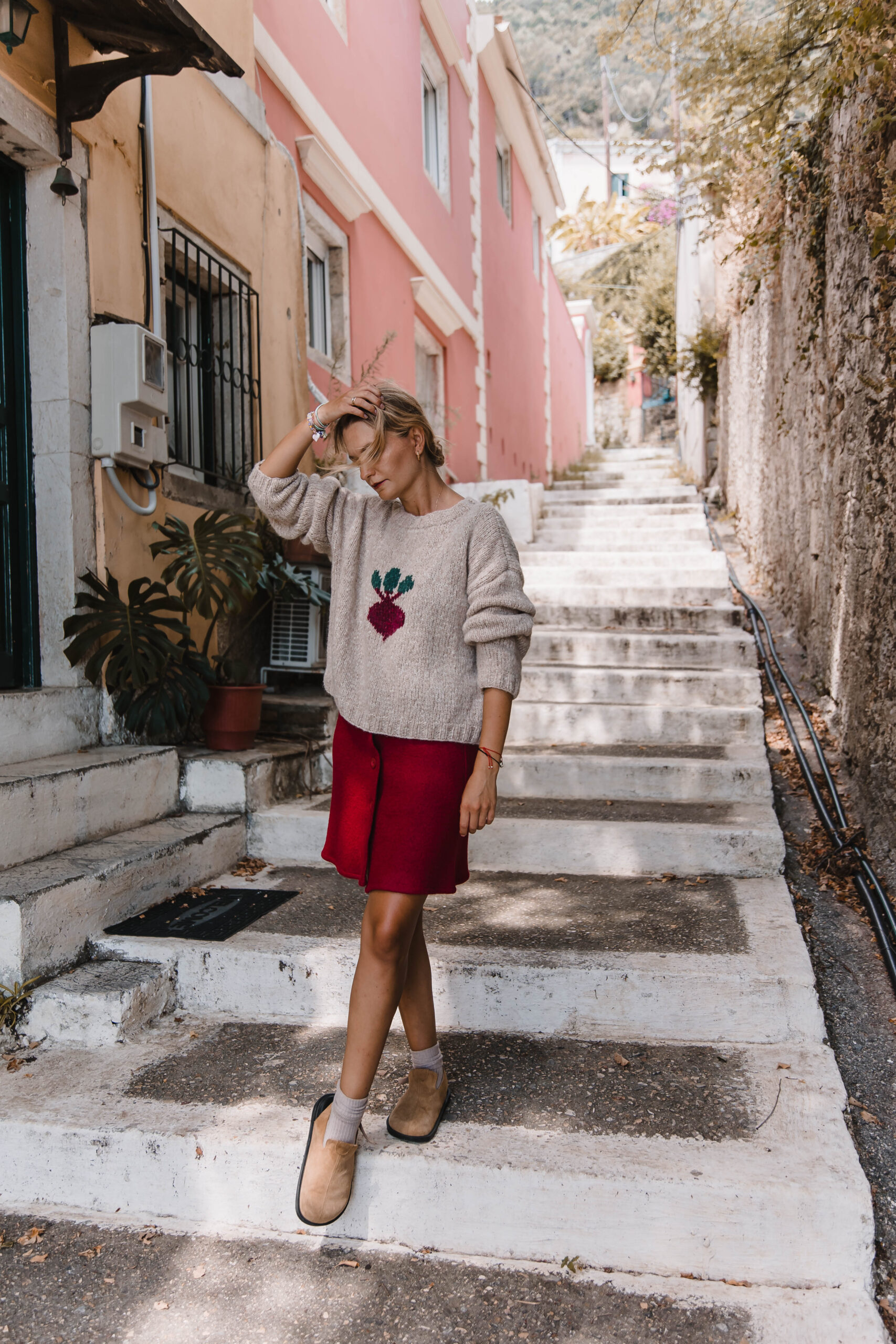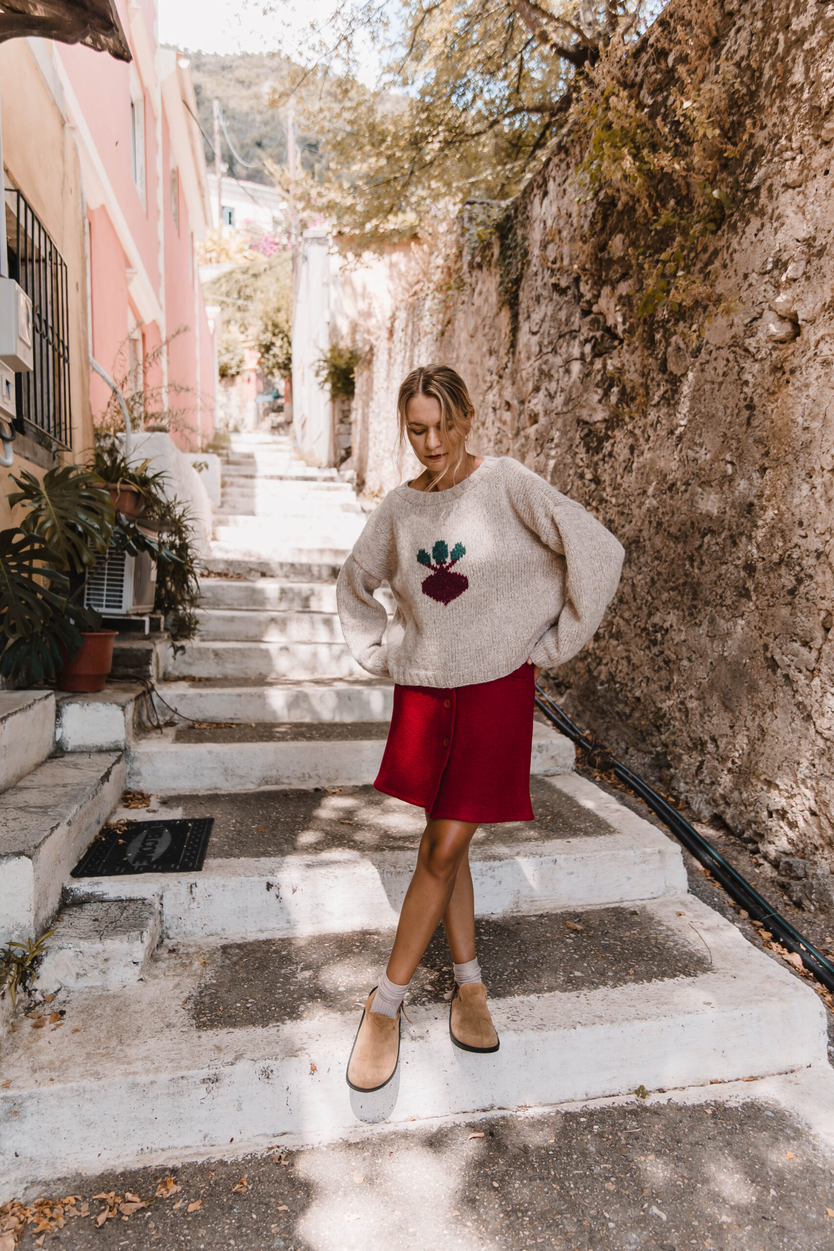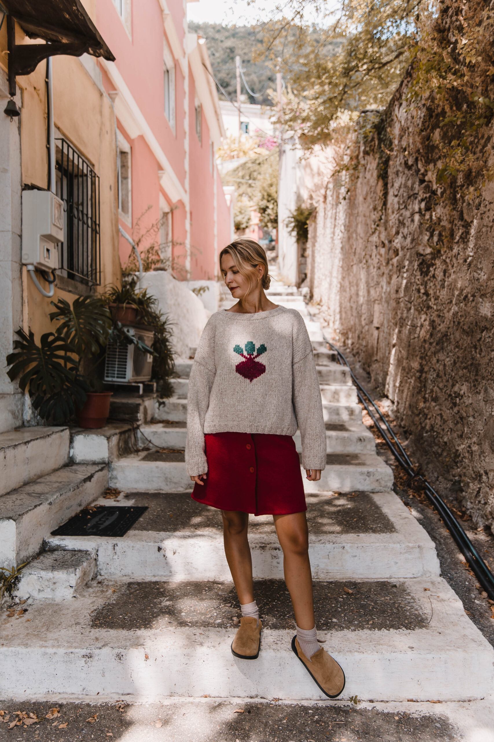 Niebanalny sweter, który wyróżni Cię z tłumu! W ciepłym, pszenicznym odcieniu, idealnie wpisuje się w jesienno-zimowe klimaty. Na przodzie znajduje się haft buraka – oryginalny akcent, który dodaje humoru i charakteru. Wykonany z miękkiej, przyjemnej w dotyku włóczki, zapewnia komfort i ciepło przez cały dzień. Noś go z jeansami i sneakersami lub z naszą Hot Red Mini Skirt, tworząc luźny, ale stylowy look. Ten sweter to idealny wybór dla tych, którzy lubią modę z przymrużeniem oka 😉