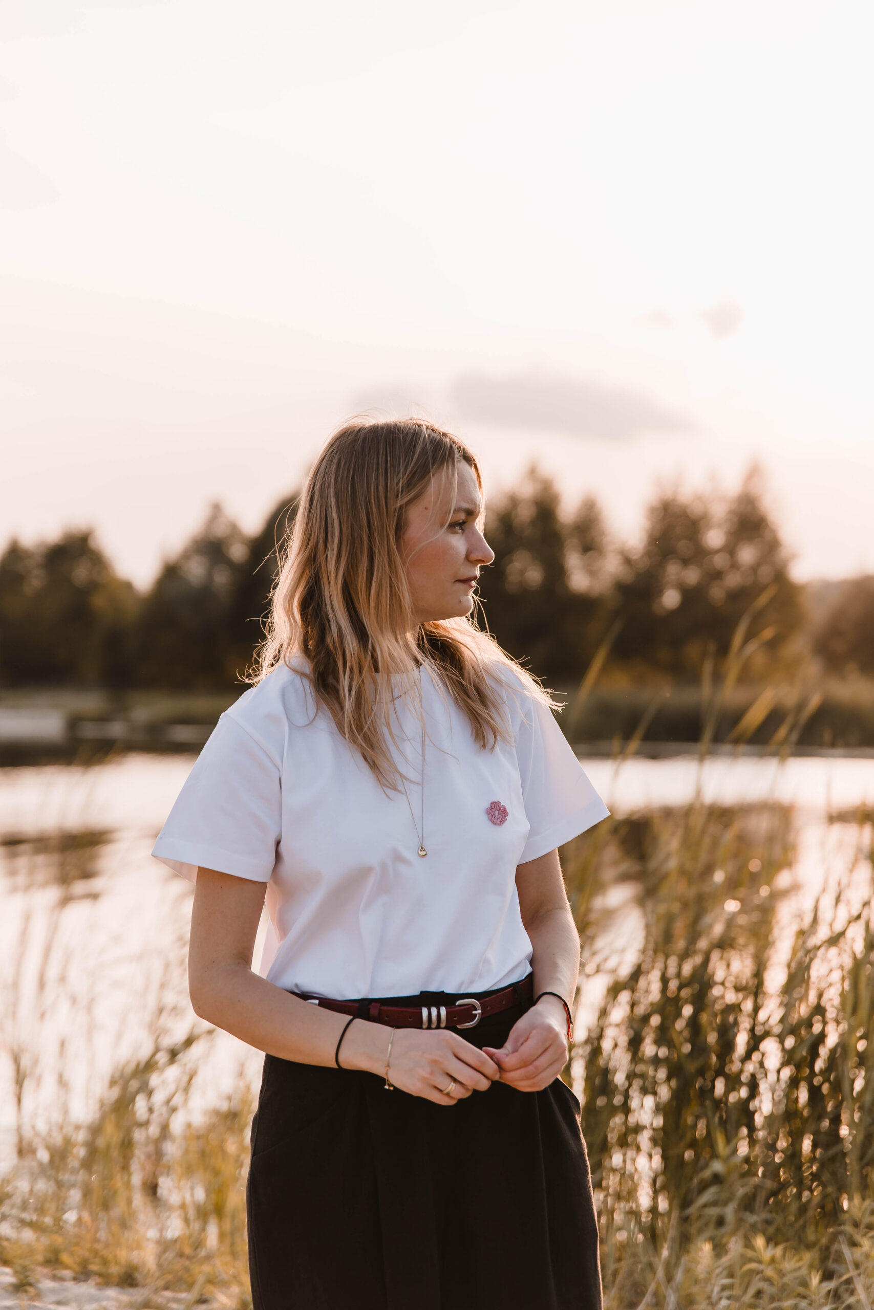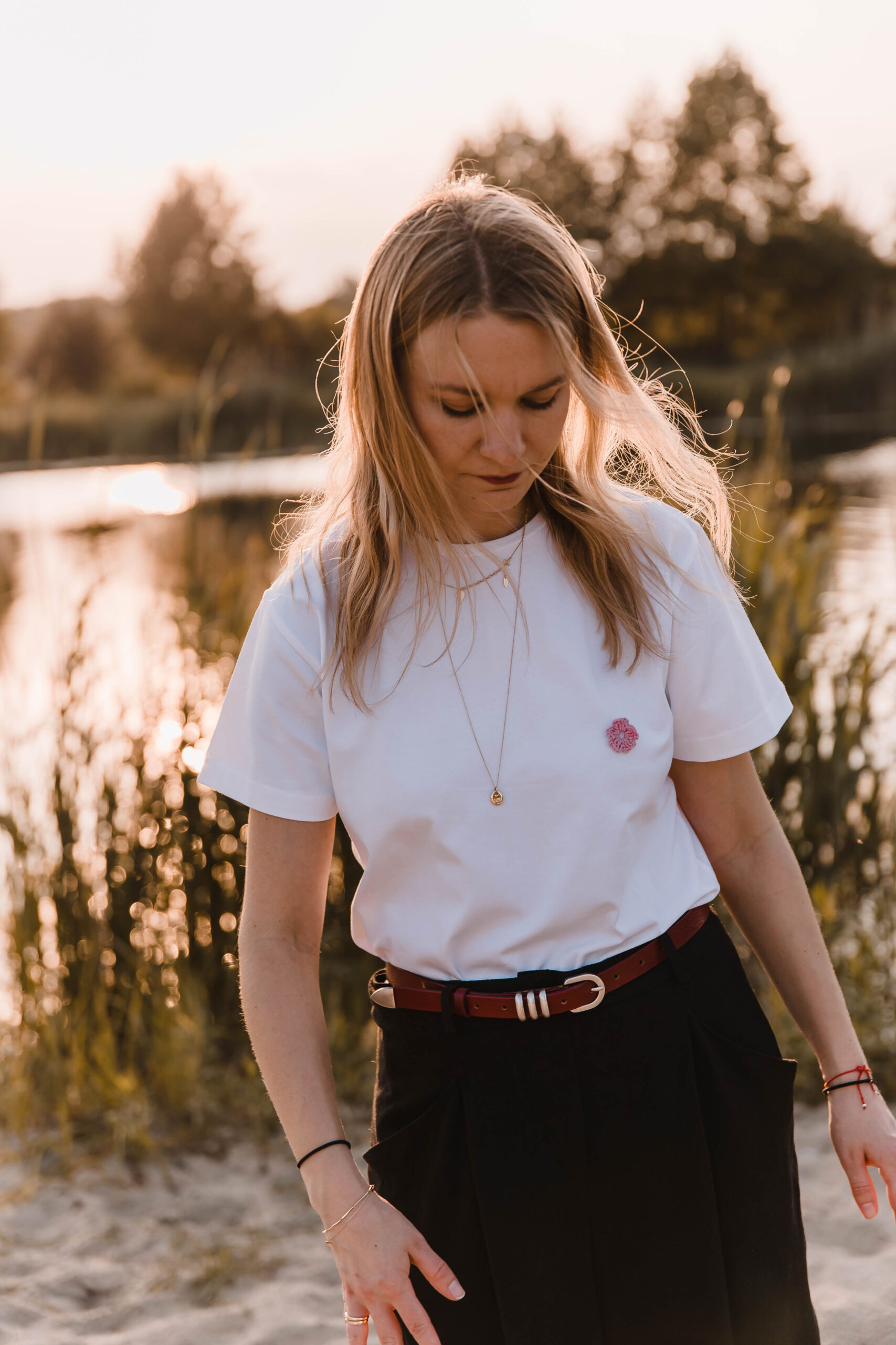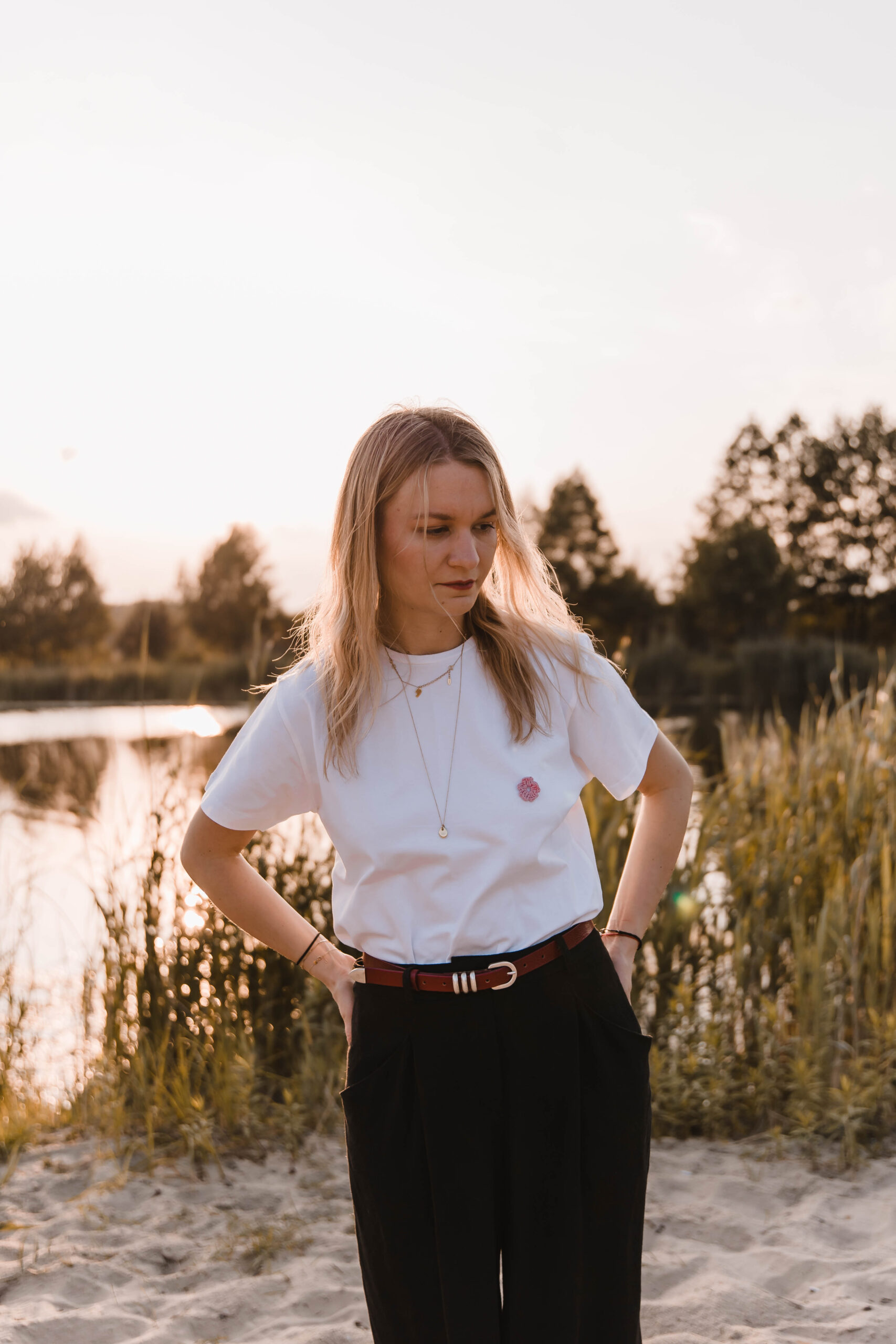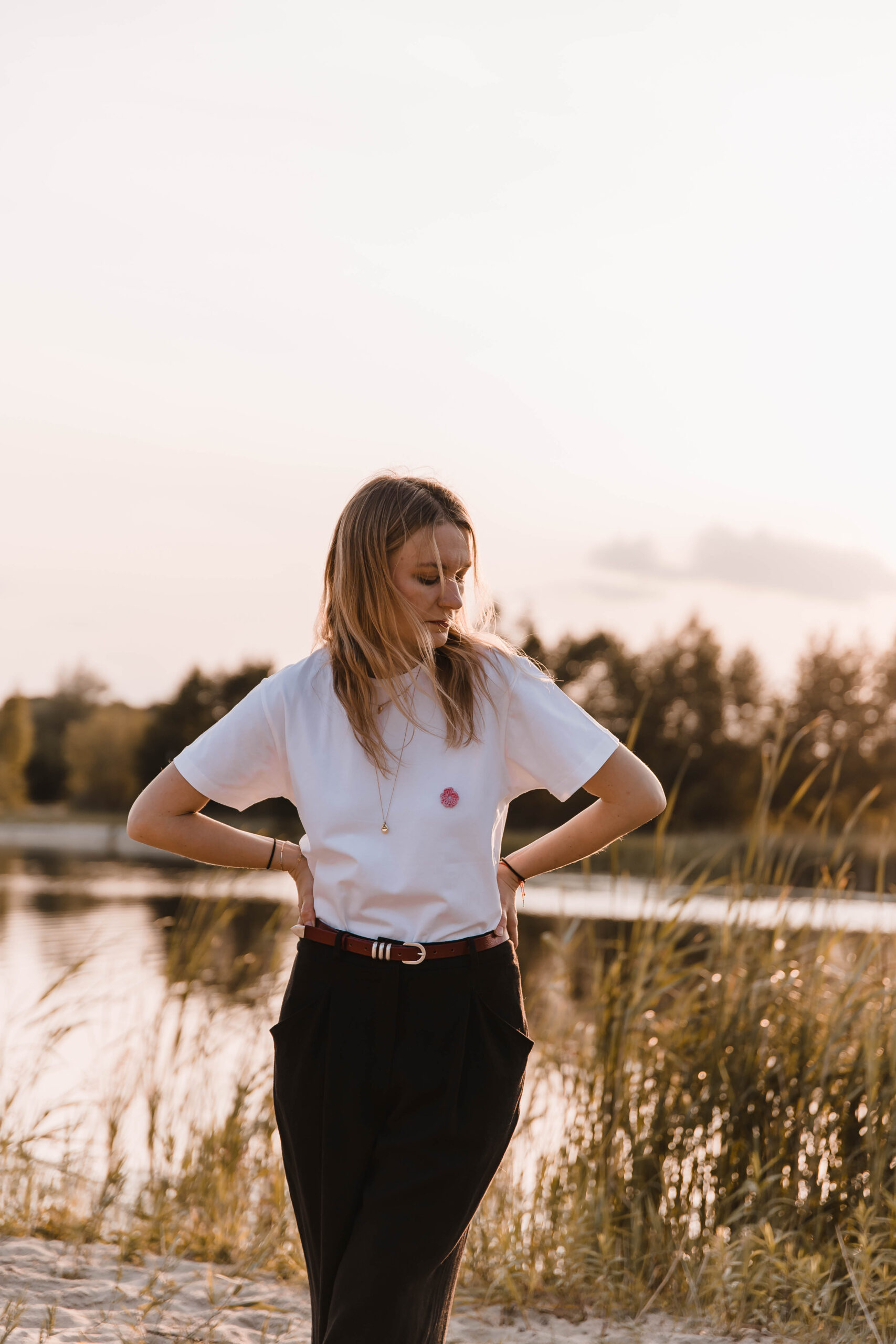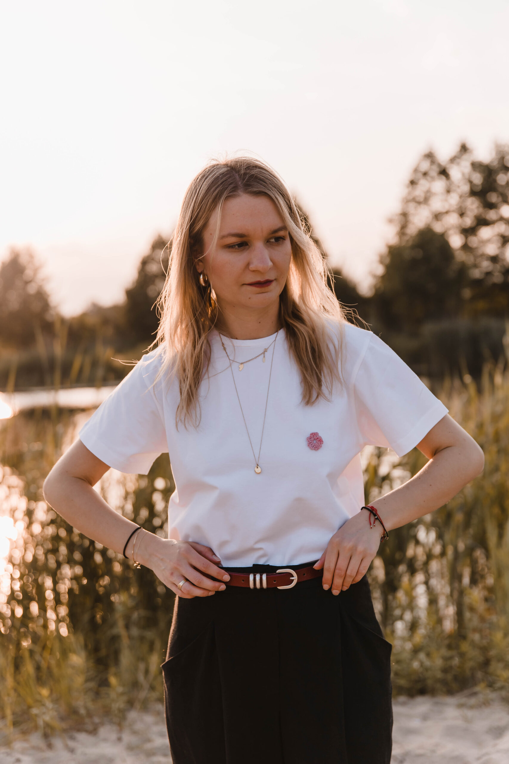 Załóż ją, kiedy chcesz po prostu czuć się dobrze. Biała koszulka z delikatnym haftem kwiatka to Twoja codzienna dawka świeżości – jak pierwszy łyk porannej kawy albo spacer boso po trawie. Pasuje do wszystkiego, ale nie jest jak wszystko. Prosta. Piękna. Twoja.
