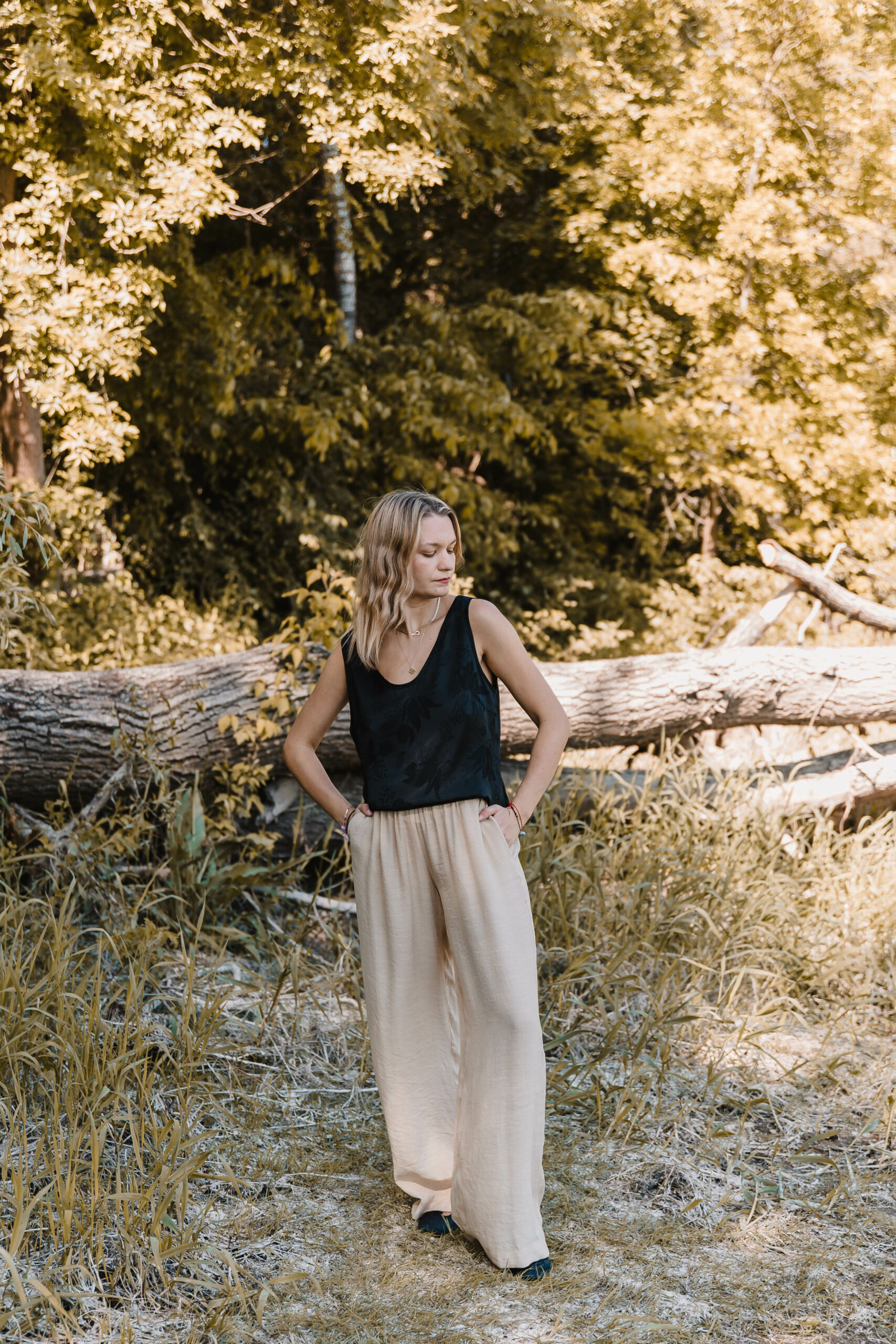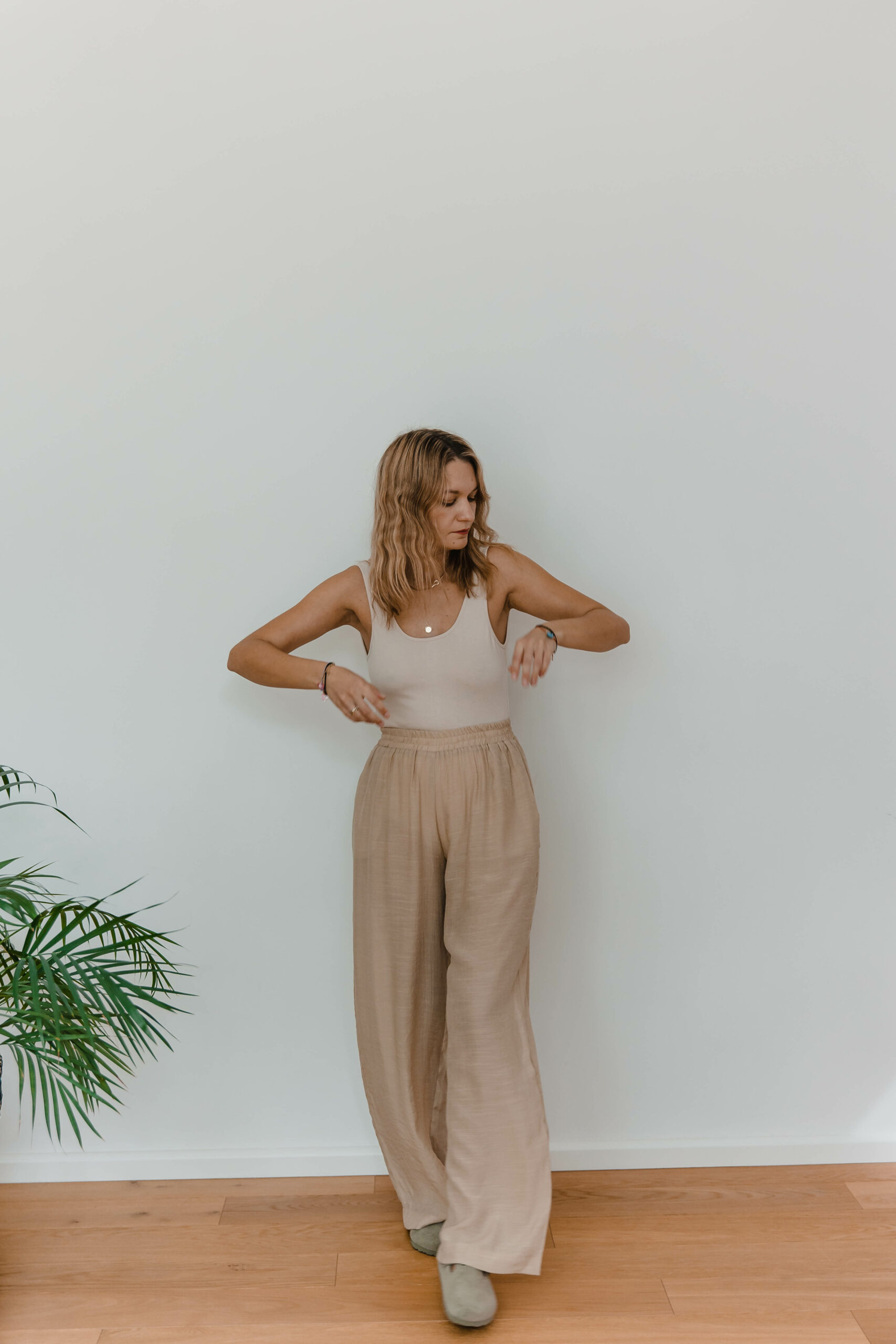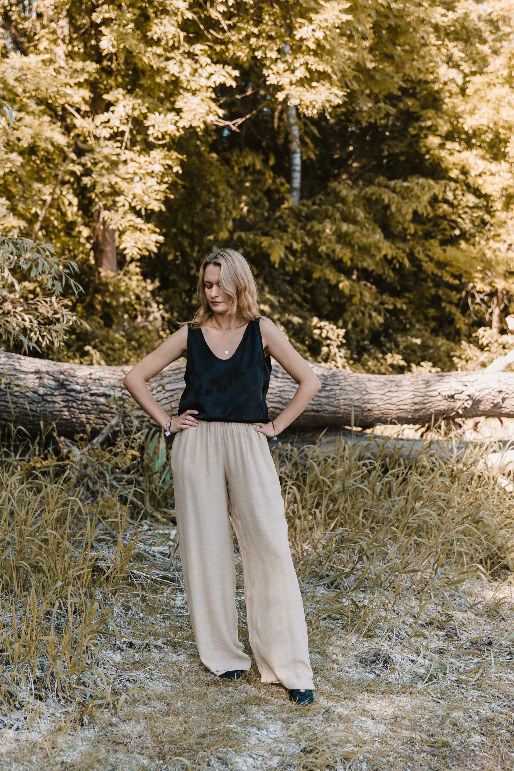 Uszyte z delikatnej, lekko prześwitującej tkaniny spodnie zapewnią Ci wygodę i swobodę przez cały dzień. Elastyczna gumka w pasie dopasuje się do Twojej figury, podczas gdy praktyczne kieszenie dodają im funkcjonalności i wygody. Gotowa na letnie przygody w najwyższym komforcie?