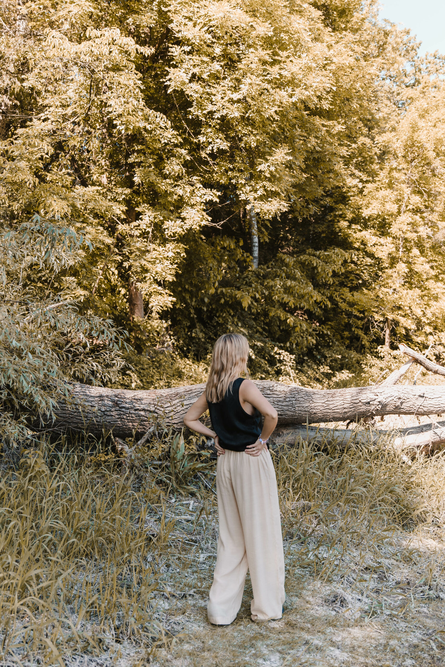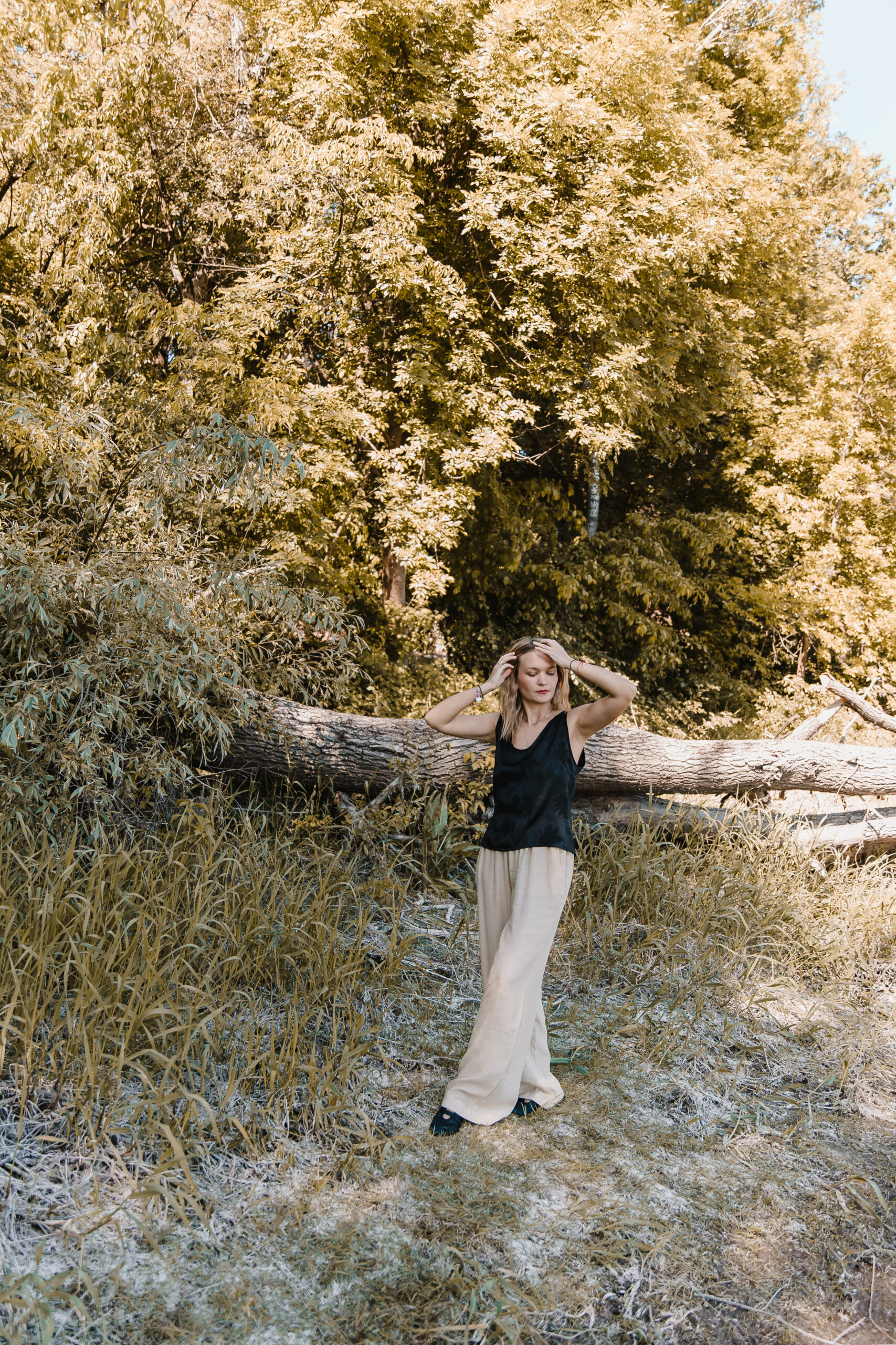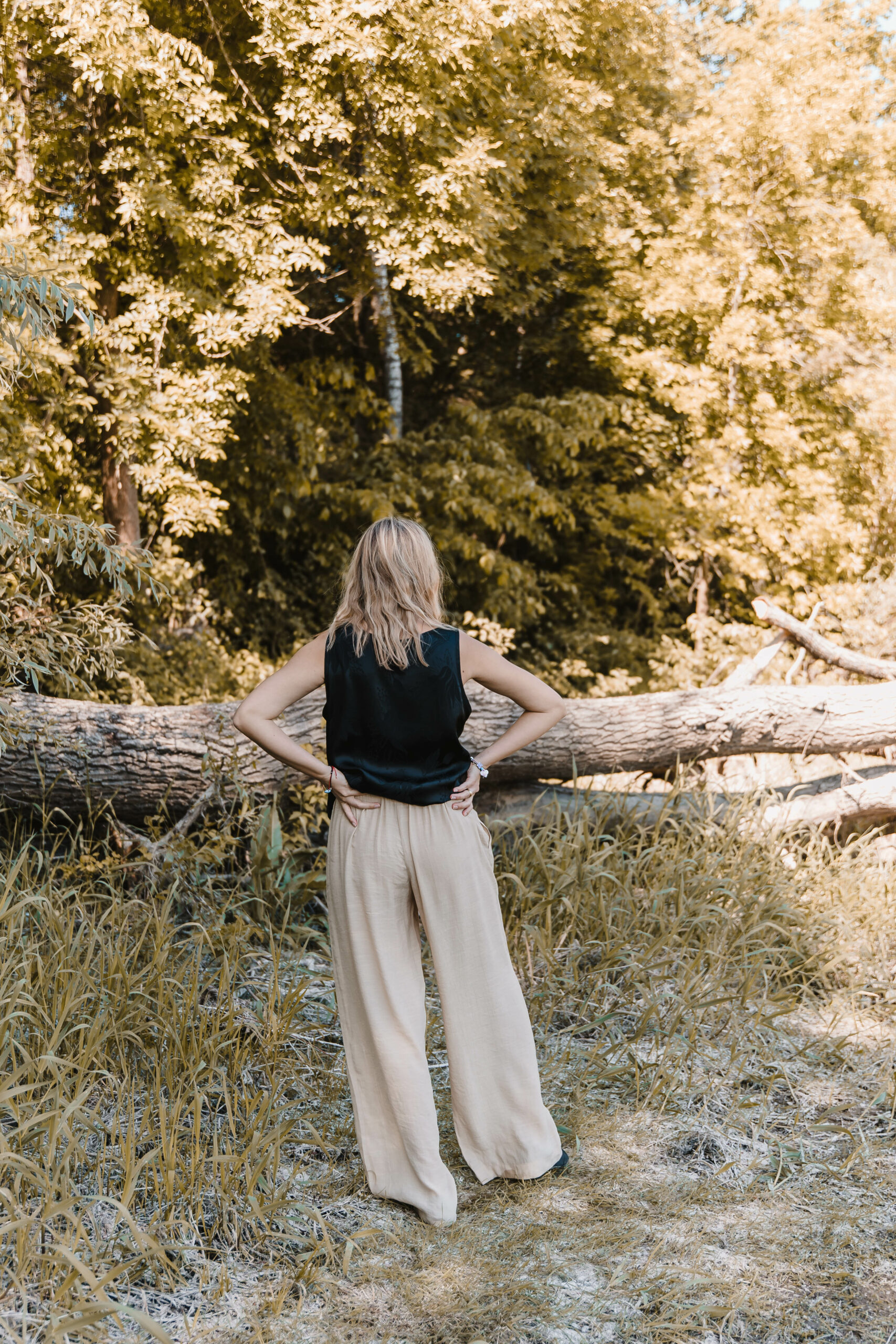 Uszyte z delikatnej, lekko prześwitującej tkaniny spodnie zapewnią Ci wygodę i swobodę przez cały dzień. Elastyczna gumka w pasie dopasuje się do Twojej figury, podczas gdy praktyczne kieszenie dodają im funkcjonalności i wygody. Gotowa na letnie przygody w najwyższym komforcie?