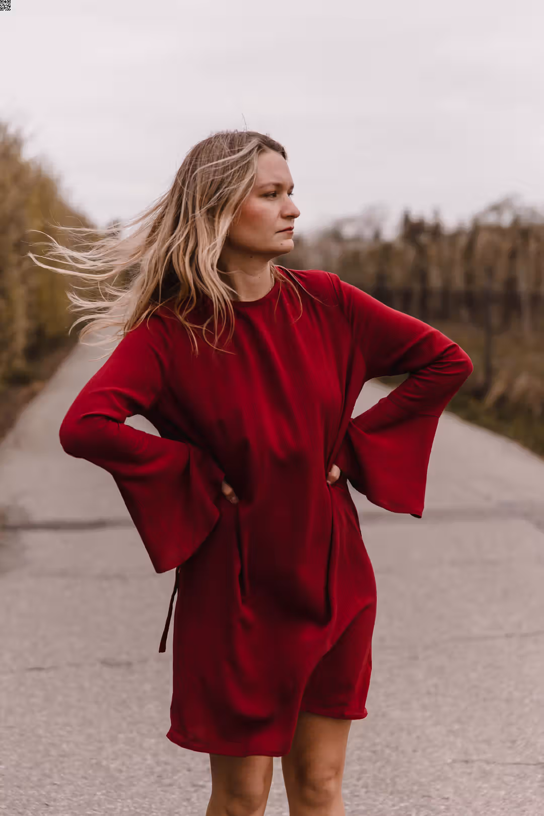 Lekka, miękko układająca się sukienka, która porusza się razem z Tobą. Szerokie rękawy w stylu lat 70. dodają jej charakteru i sprawiają, że nawet najprostsza stylizacja nabiera wyjątkowego wyrazu. Noś ją tak, jak lubisz — z paskiem, by podkreślić talię, albo puszczoną swobodnie, kiedy masz ochotę na luz i naturalność. To model, który dopasowuje się do Twojego rytmu dnia.