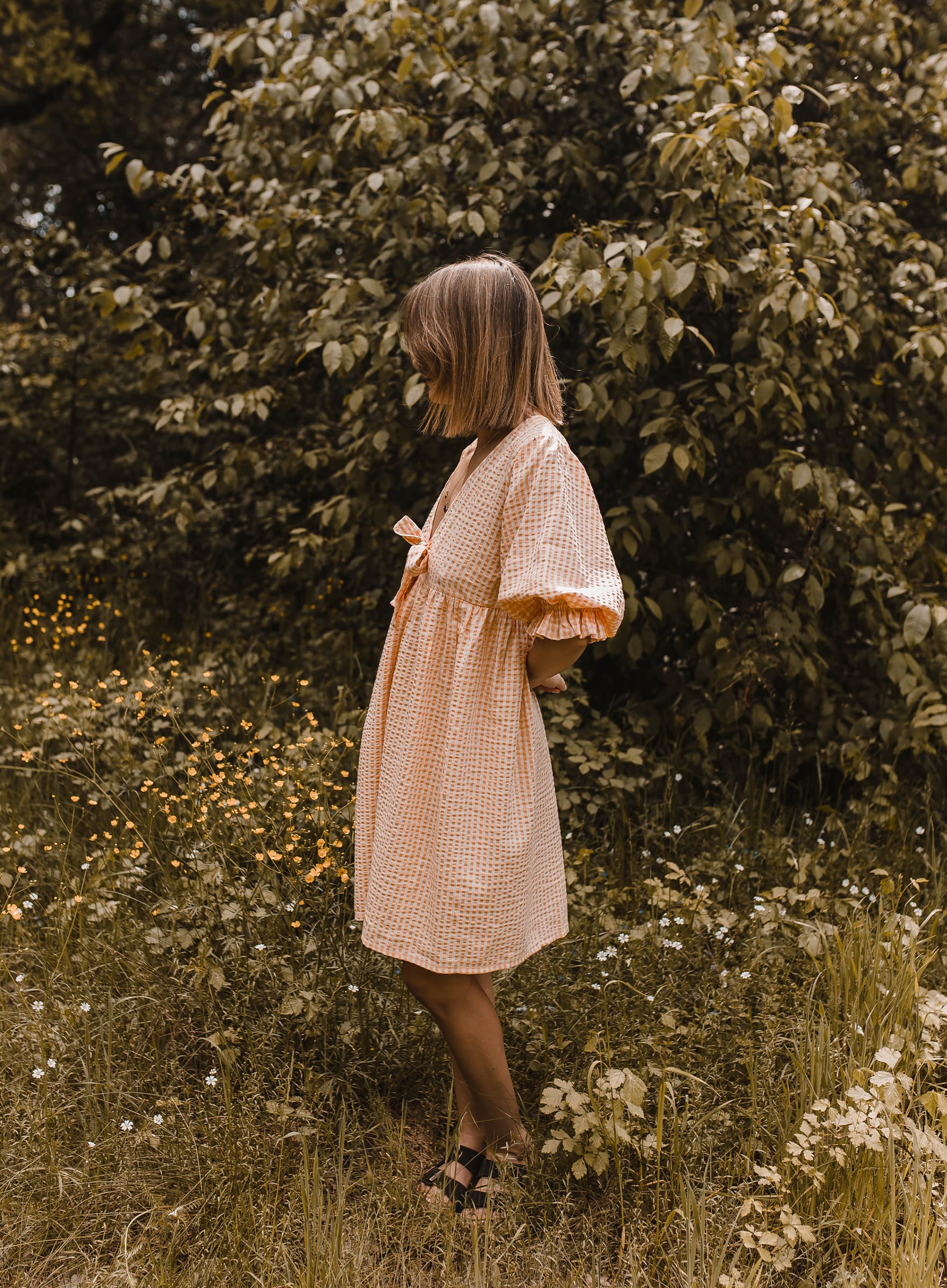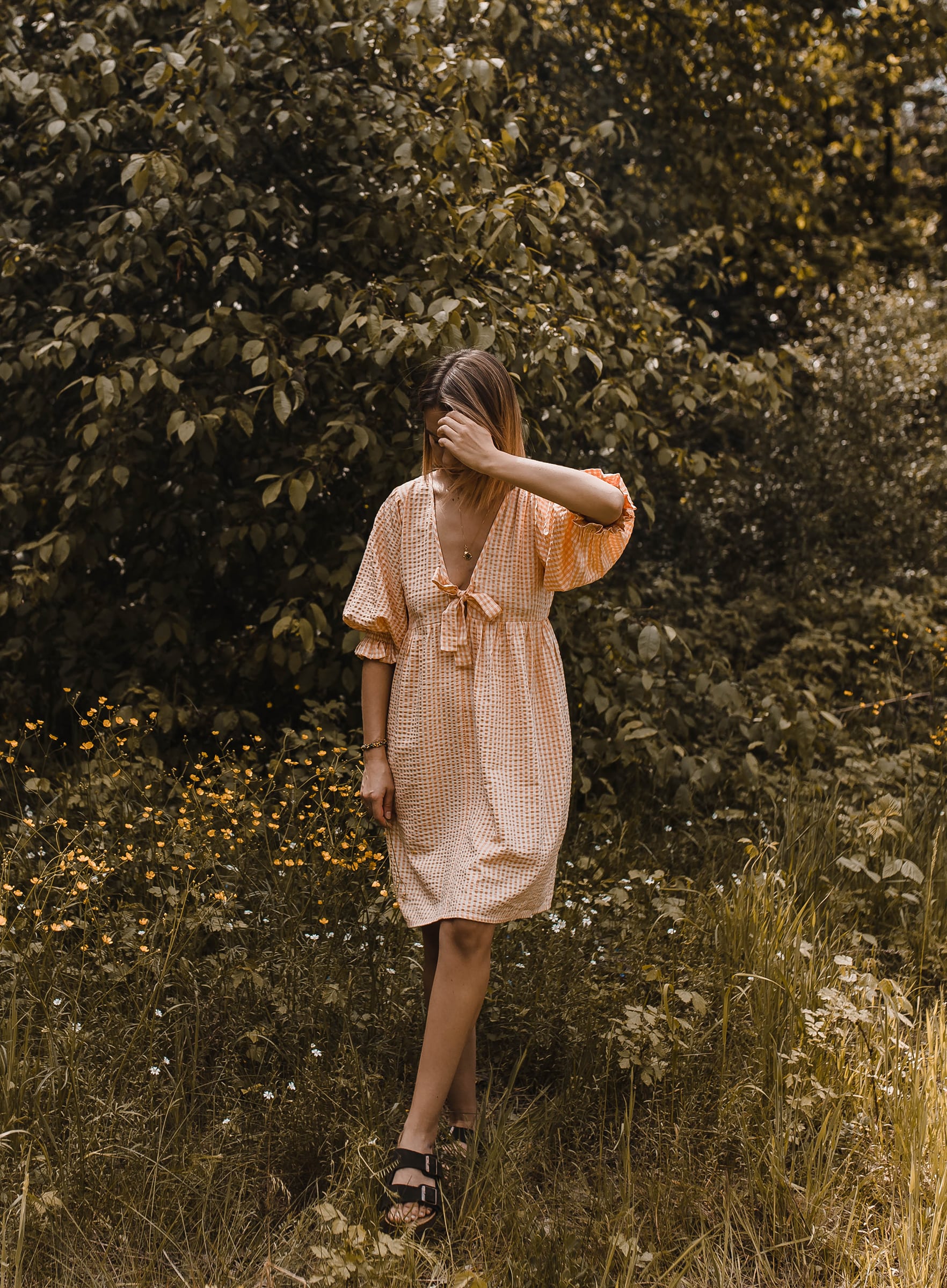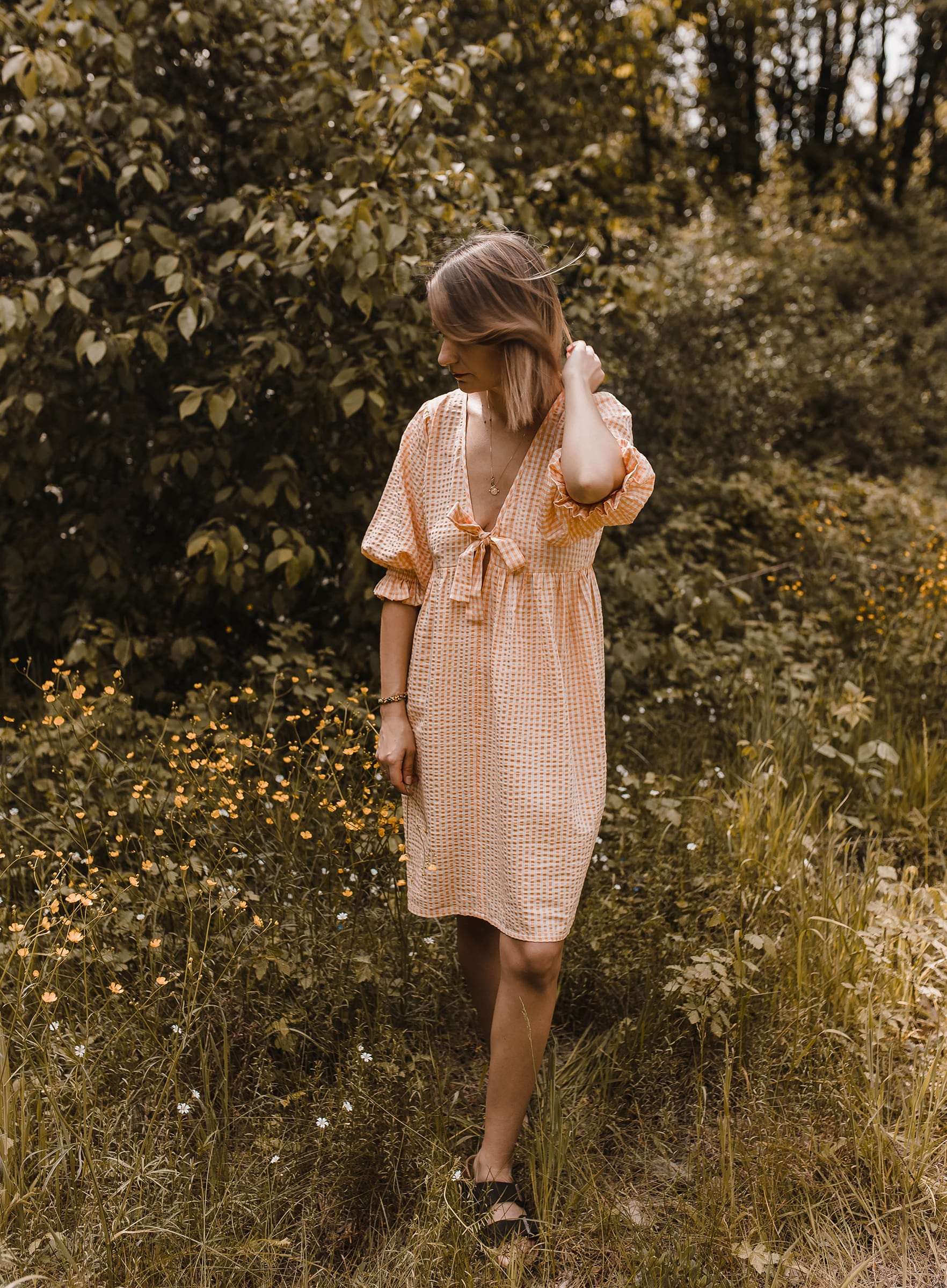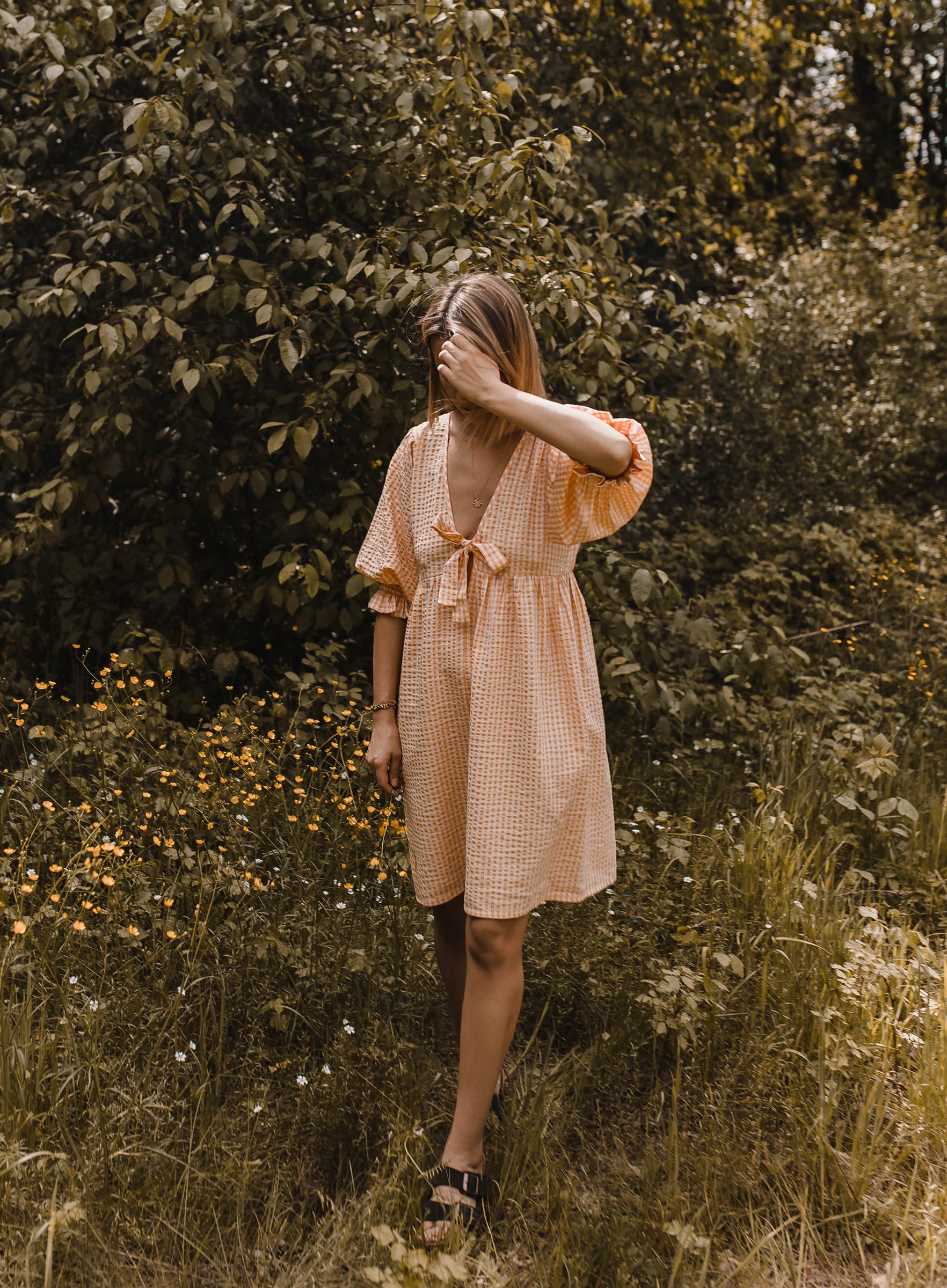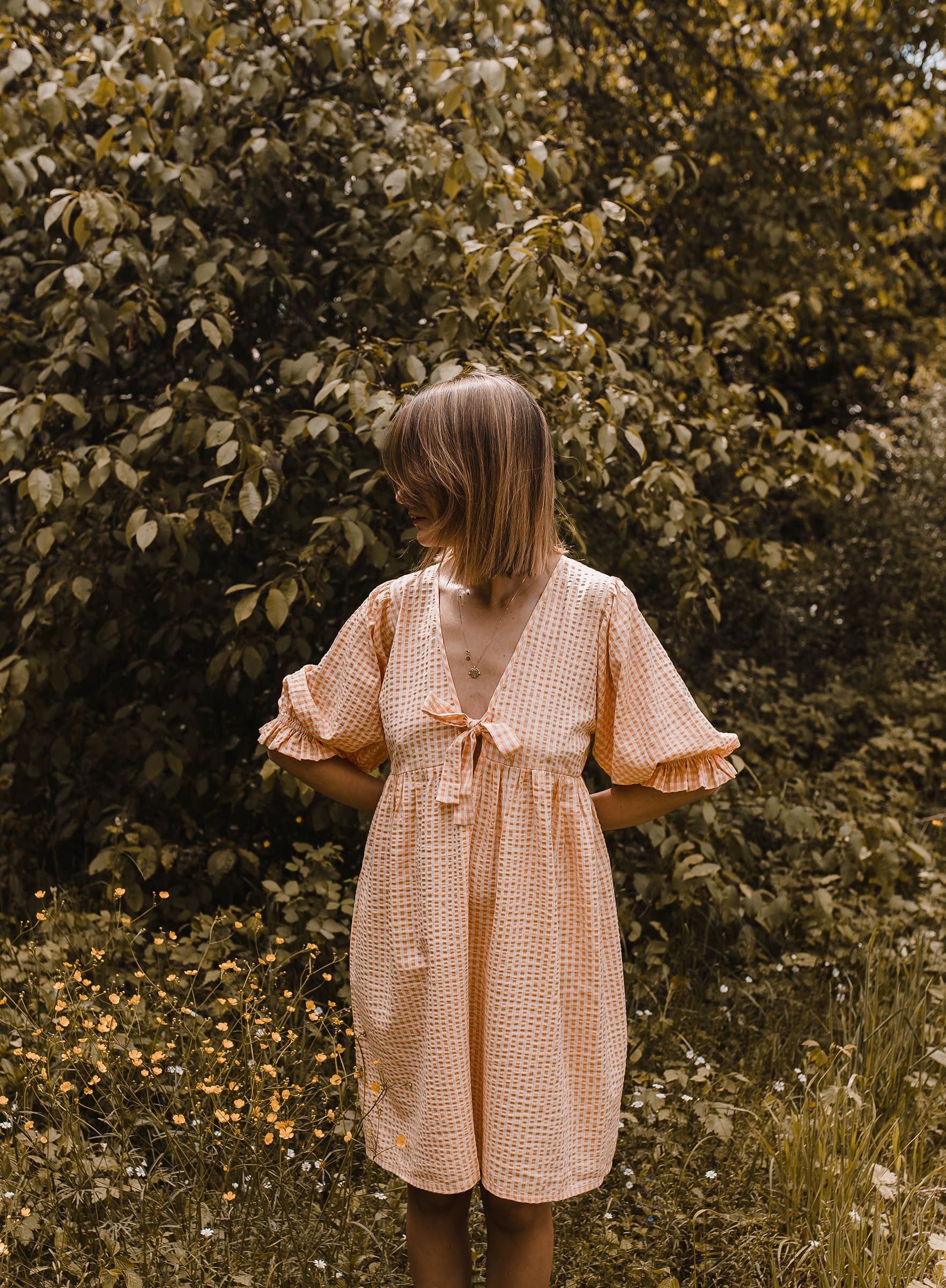 Checked dress – sukienka mini w kratkę pomarańczowa