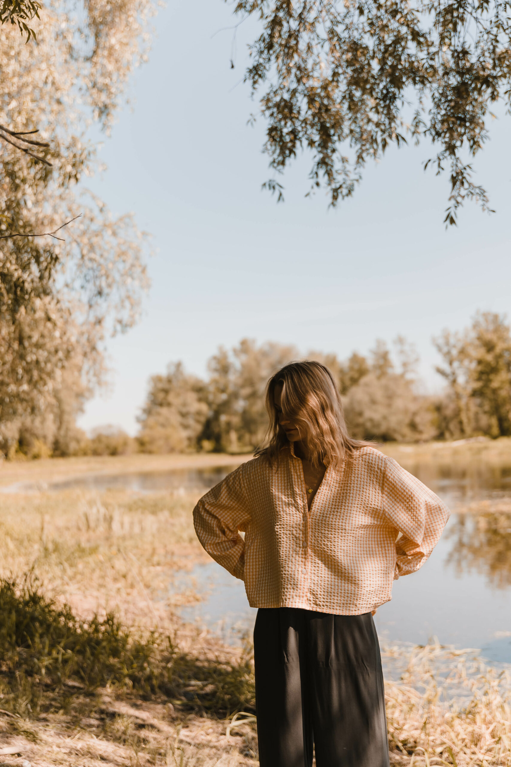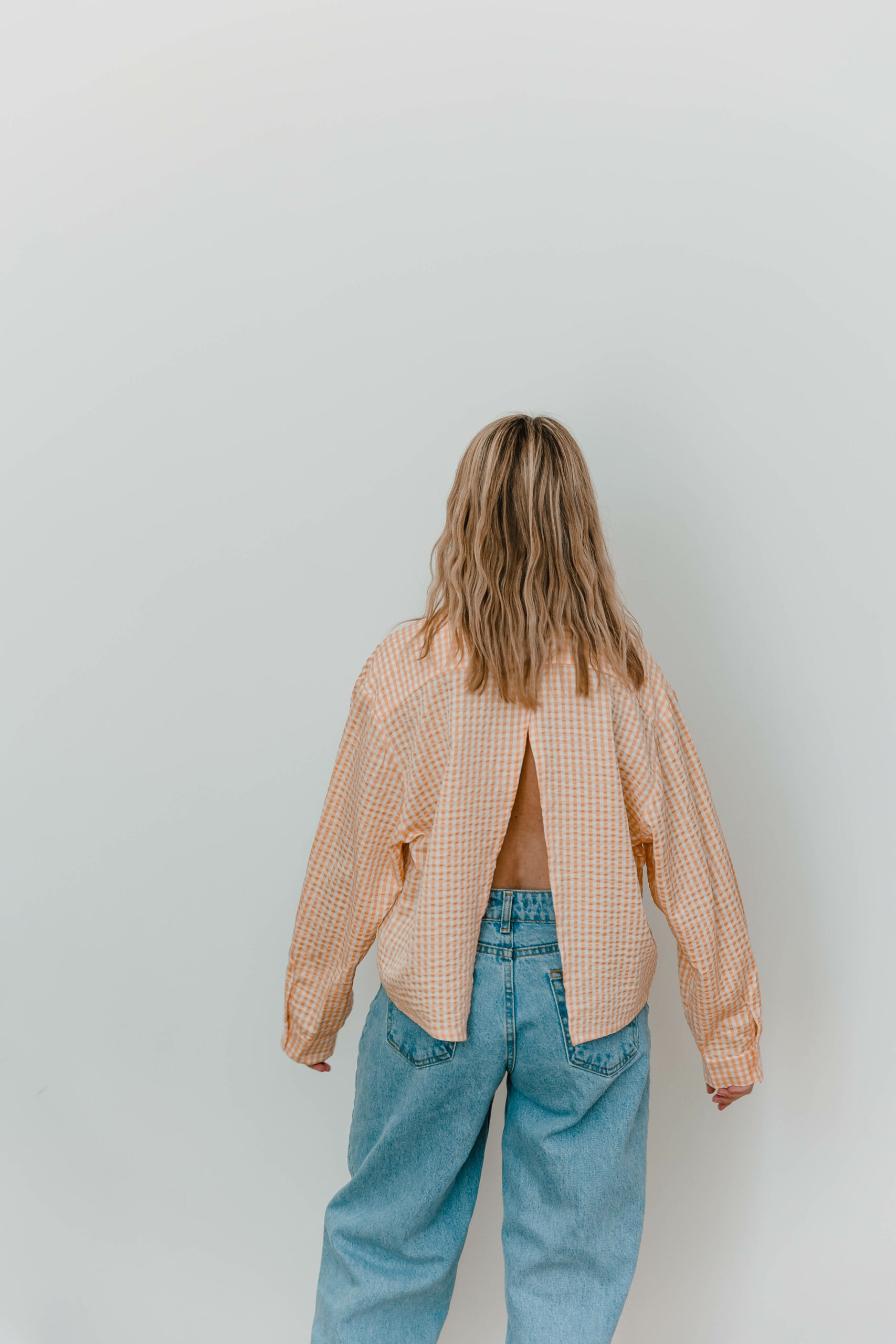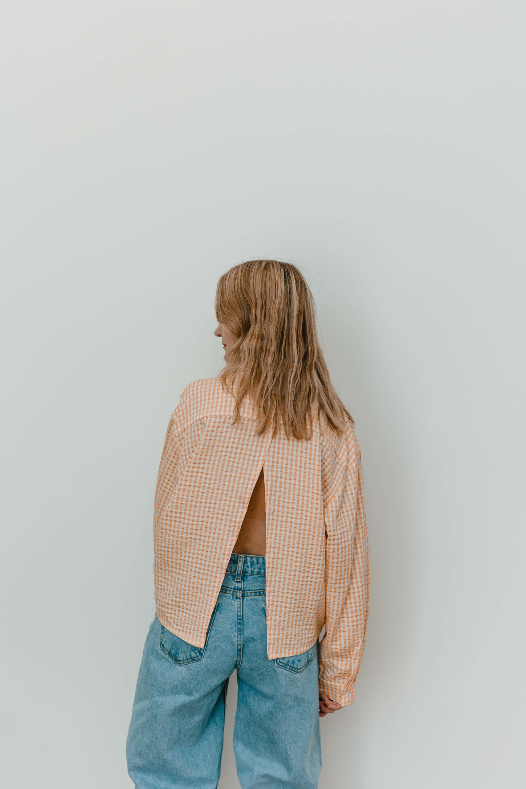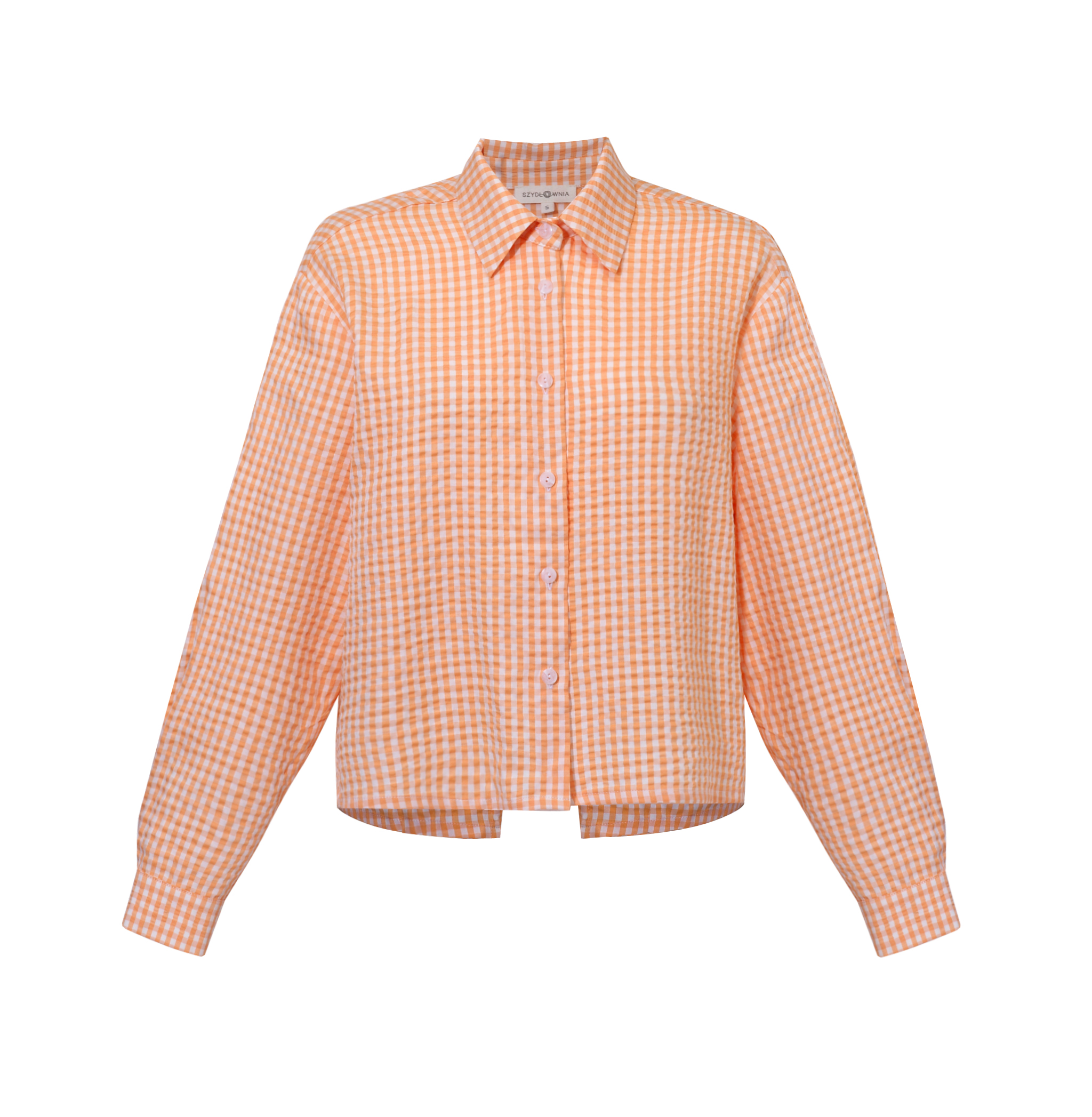 Klasyczny koszulowy krój z zapięciem na guziki z przodu kontrastuje z odważnym, głębokim rozcięciem na plecach, nadając całości niepowtarzalnego uroku. Przewiewność gwarantowana 😉