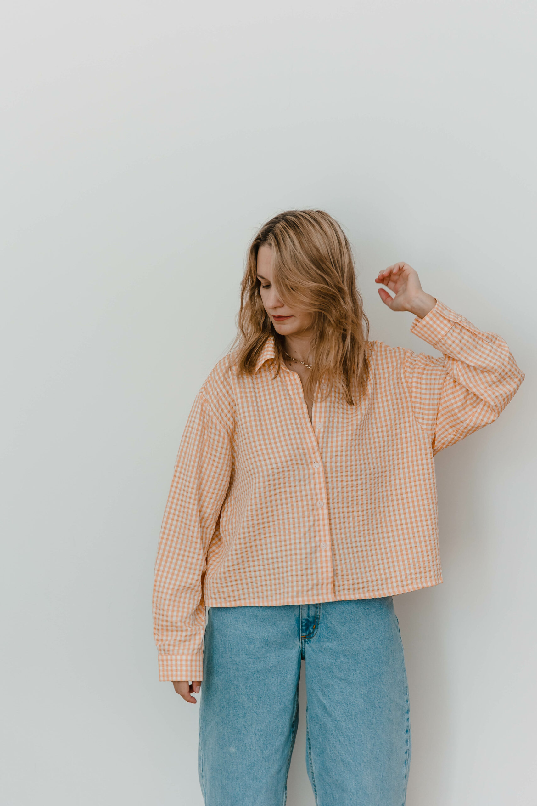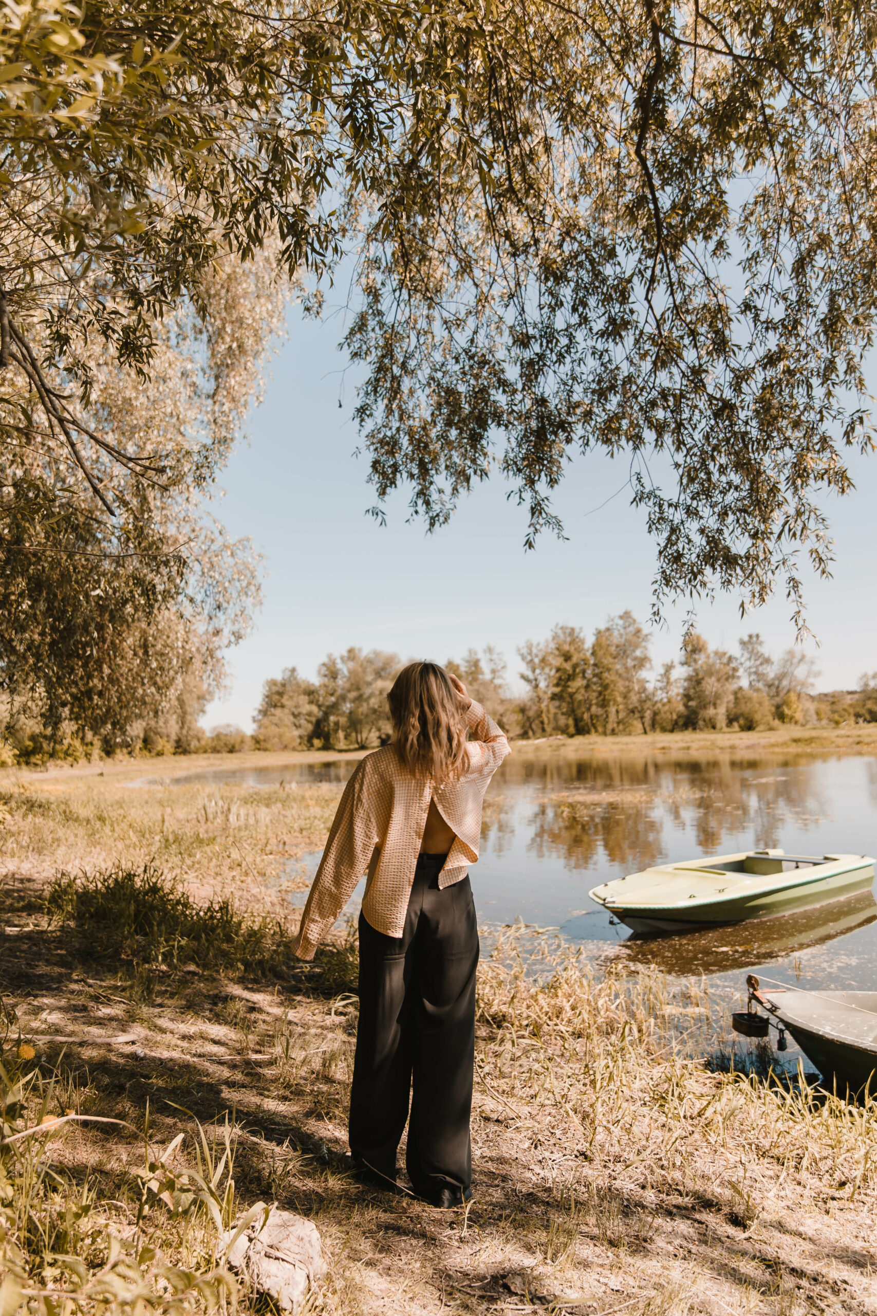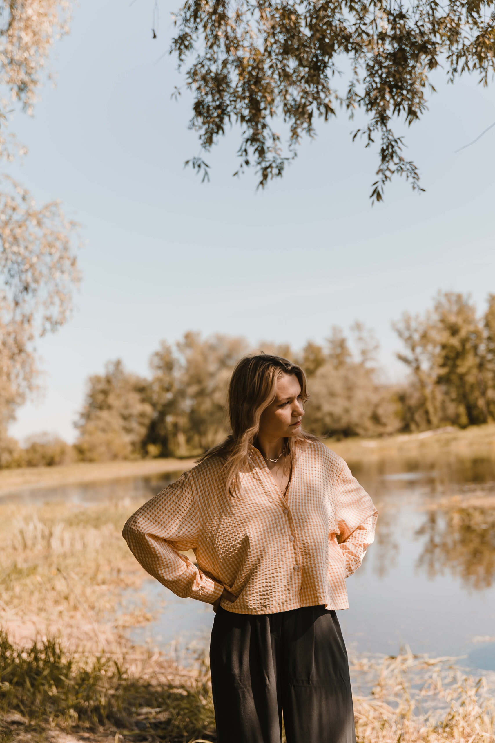 Klasyczny koszulowy krój z zapięciem na guziki z przodu kontrastuje z odważnym, głębokim rozcięciem na plecach, nadając całości niepowtarzalnego uroku. Przewiewność gwarantowana 😉