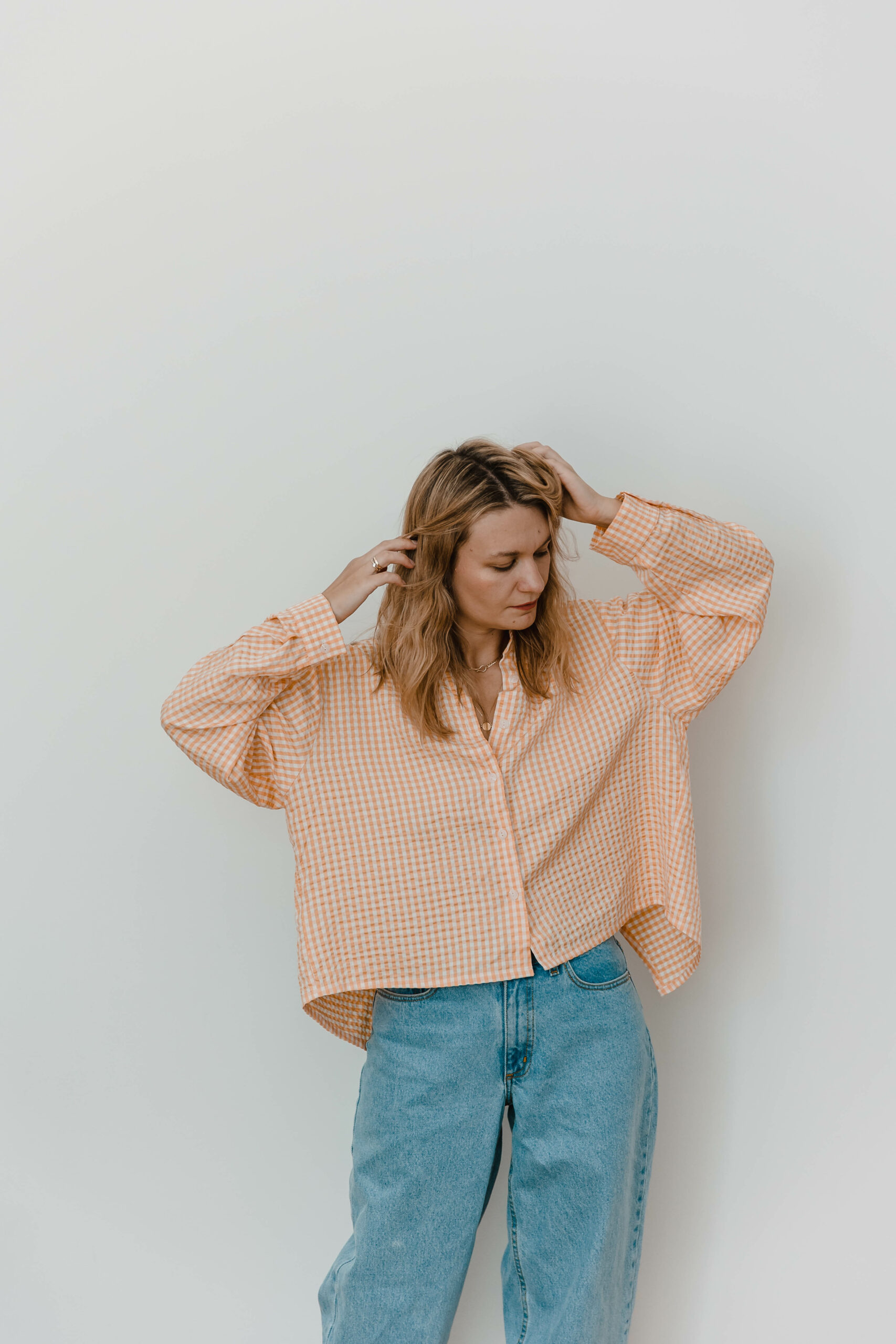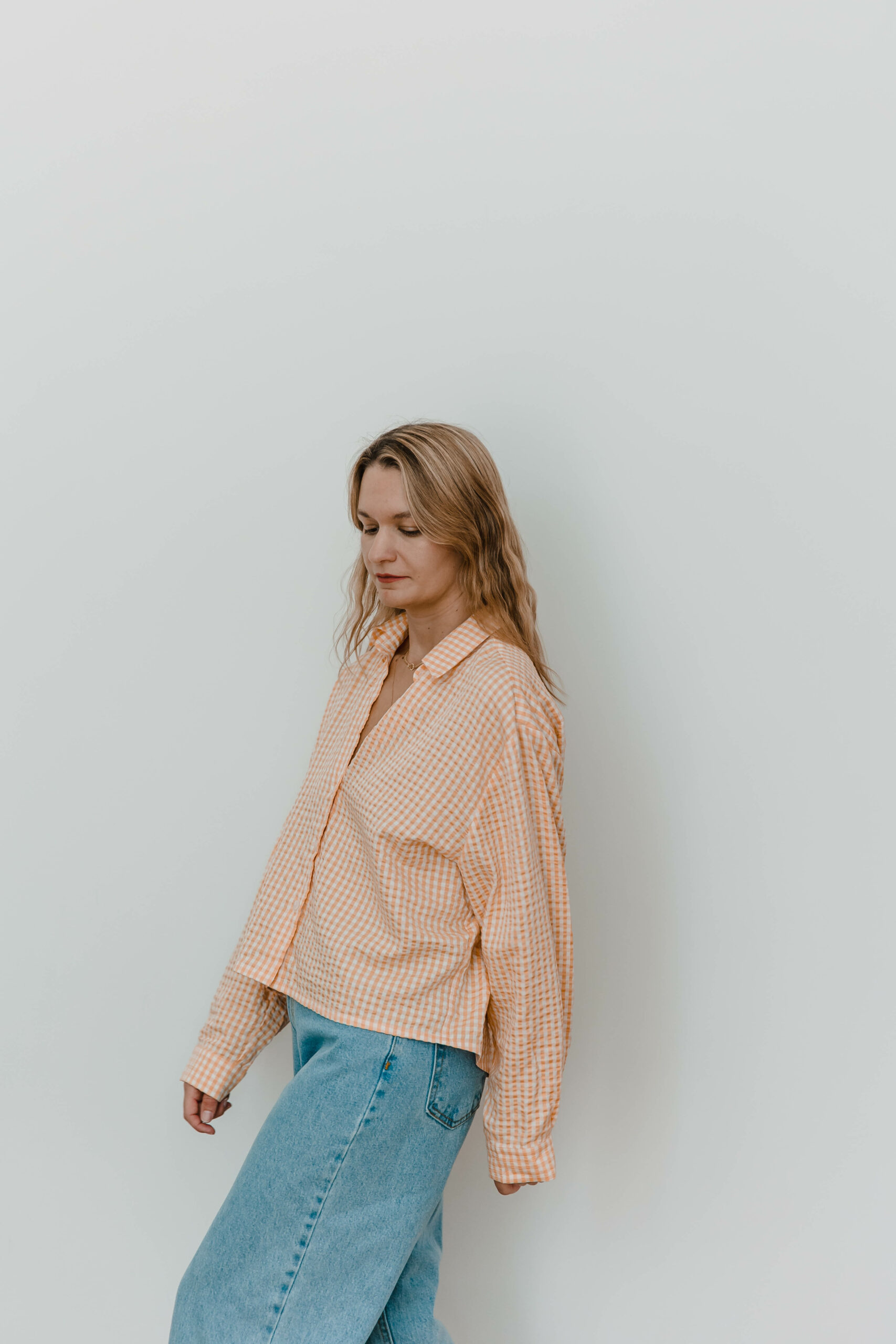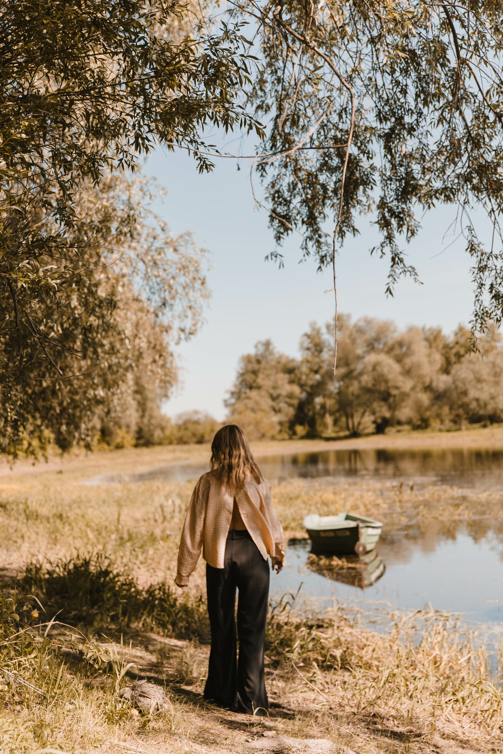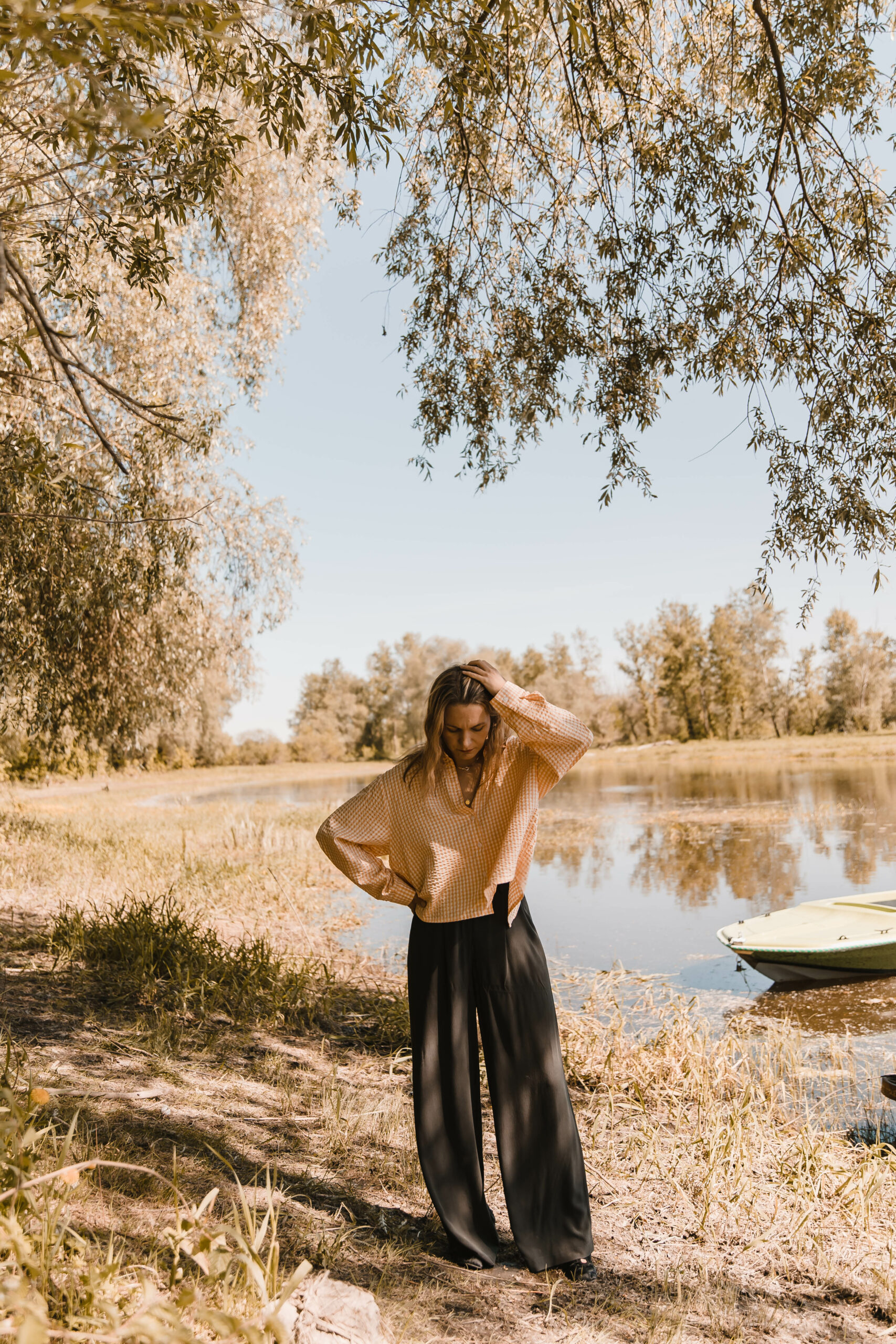 Klasyczny koszulowy krój z zapięciem na guziki z przodu kontrastuje z odważnym, głębokim rozcięciem na plecach, nadając całości niepowtarzalnego uroku. Przewiewność gwarantowana 😉