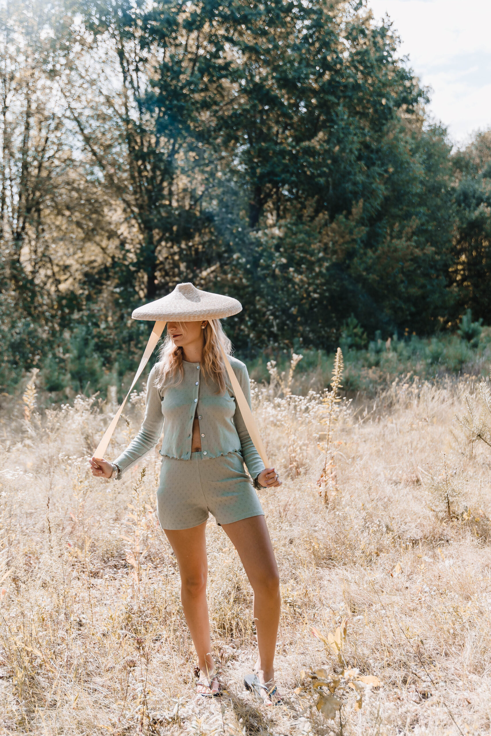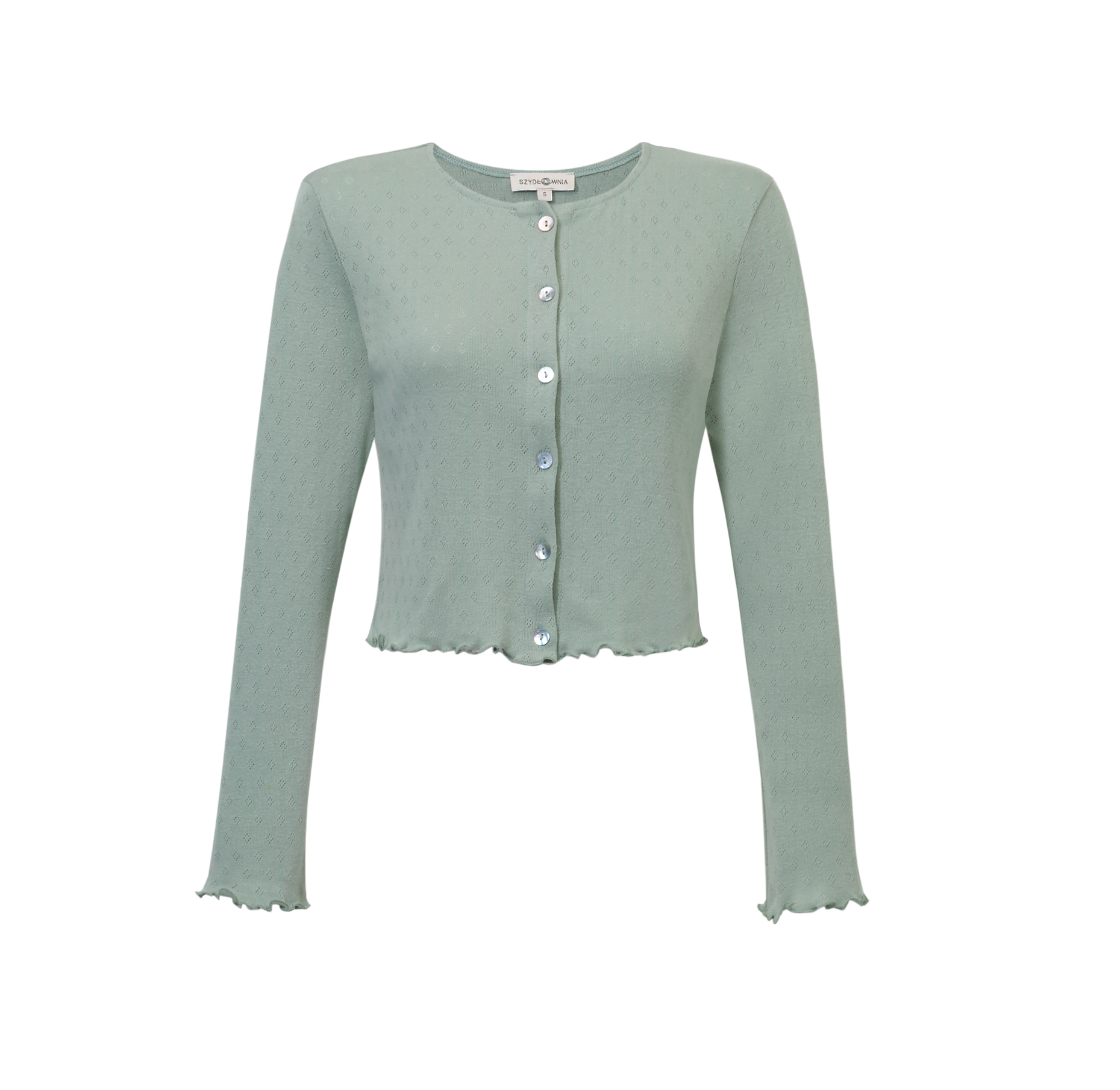 Lekka, miętowa koszulka z ażurowej dzianiny — taka, którą zakładasz rano i już wiesz, że dzień będzie dobry. Guziki z masy perłowej łapią światło i aż proszą się, żeby się nimi pobawić — możesz je rozpinać i zapinać w zależności od nastroju, pogody czy planów na dzień. Mereżkowe wykończenia dodają jej lekkości, a miękki materiał sprawia, że jest przyjemna w noszeniu od świtu do nocy. Pasuje do wszystkiego — od ulubionych jeansów po zwiewną spódnicę — i bez wysiłku dopasowuje się do Twojego rytmu.