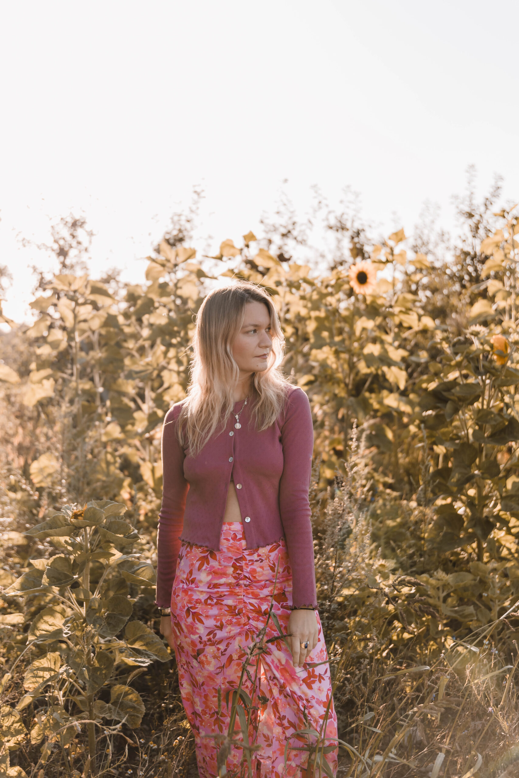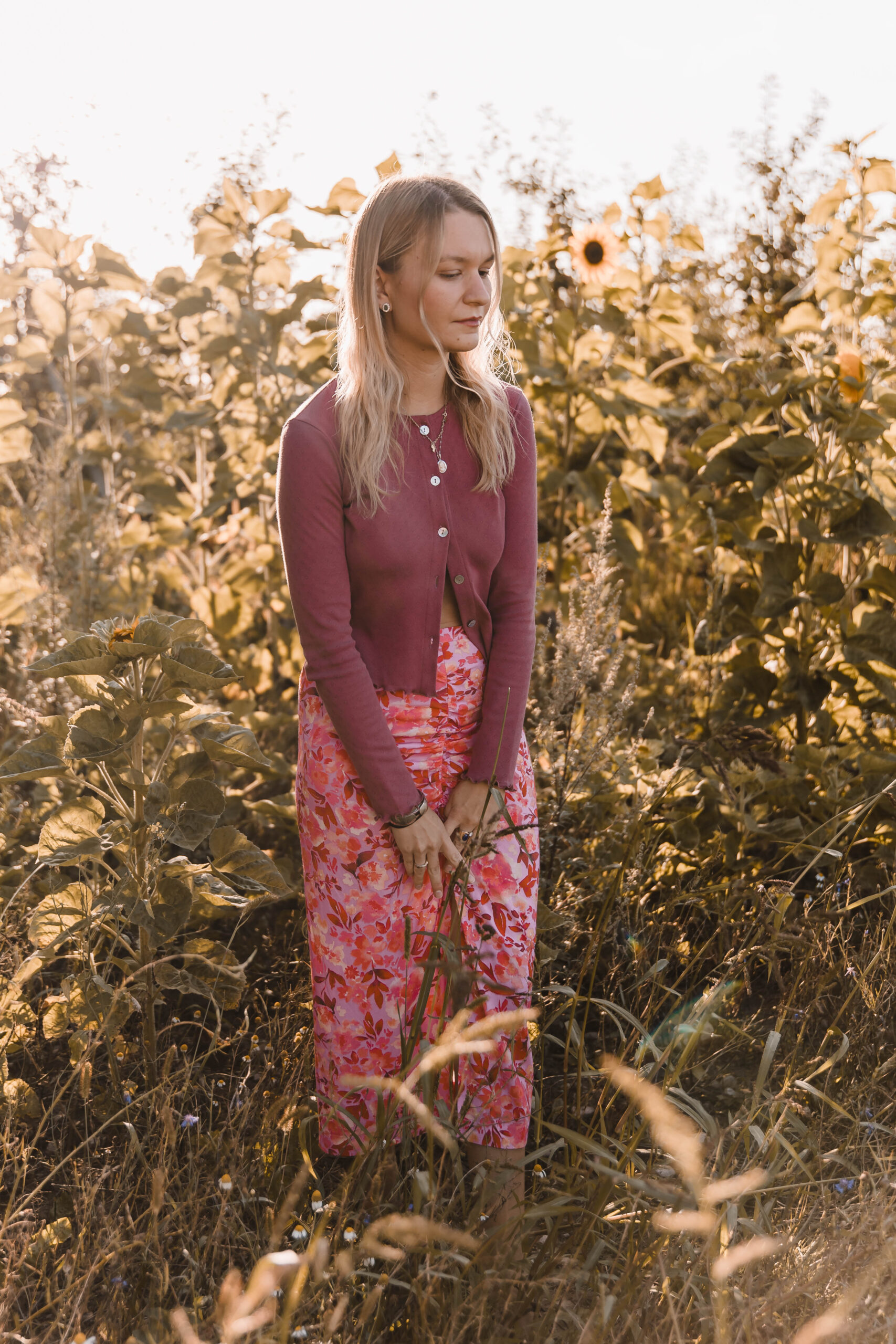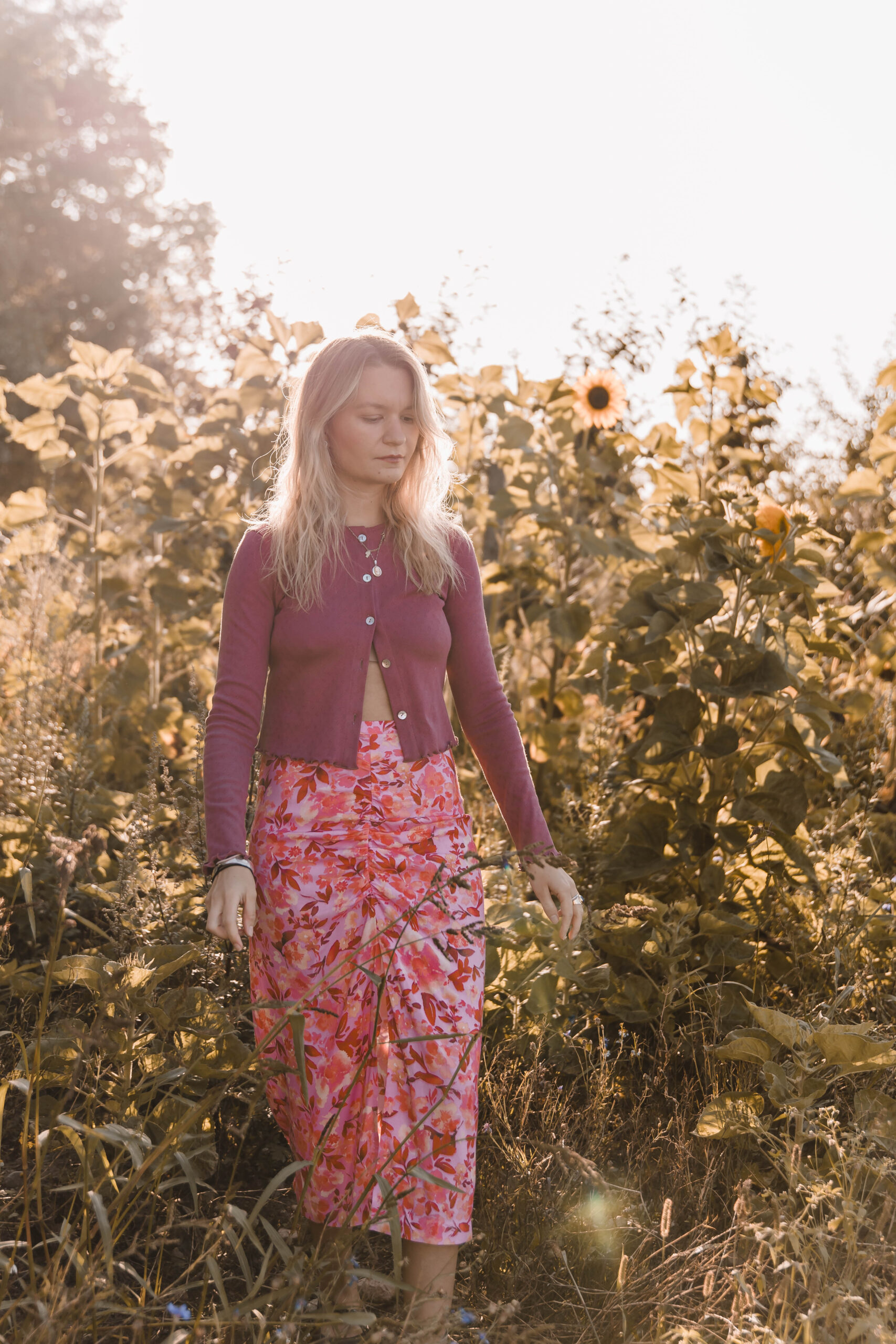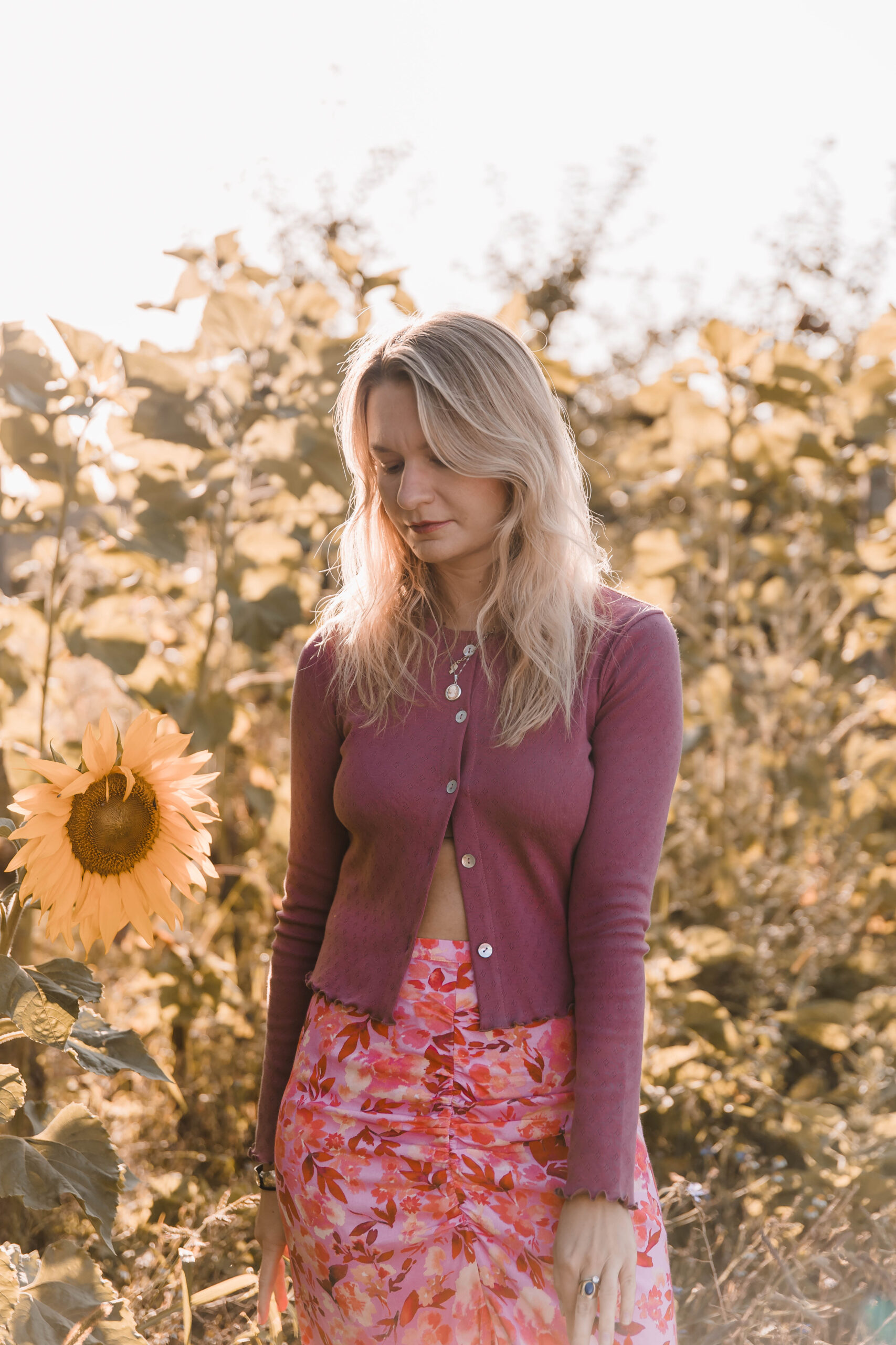 Lekka, wrzosowa koszulka z ażurowej dzianiny — taka, którą zakładasz rano i już wiesz, że dzień będzie dobry. Guziki z masy perłowej łapią światło i aż proszą się, żeby się nimi pobawić — możesz je rozpinać i zapinać w zależności od nastroju, pogody czy planów na dzień. Mereżkowe wykończenia dodają jej lekkości, a miękki materiał sprawia, że jest przyjemna w noszeniu od świtu do nocy. Pasuje do wszystkiego — od ulubionych jeansów po zwiewną spódnicę — i bez wysiłku dopasowuje się do Twojego rytmu.