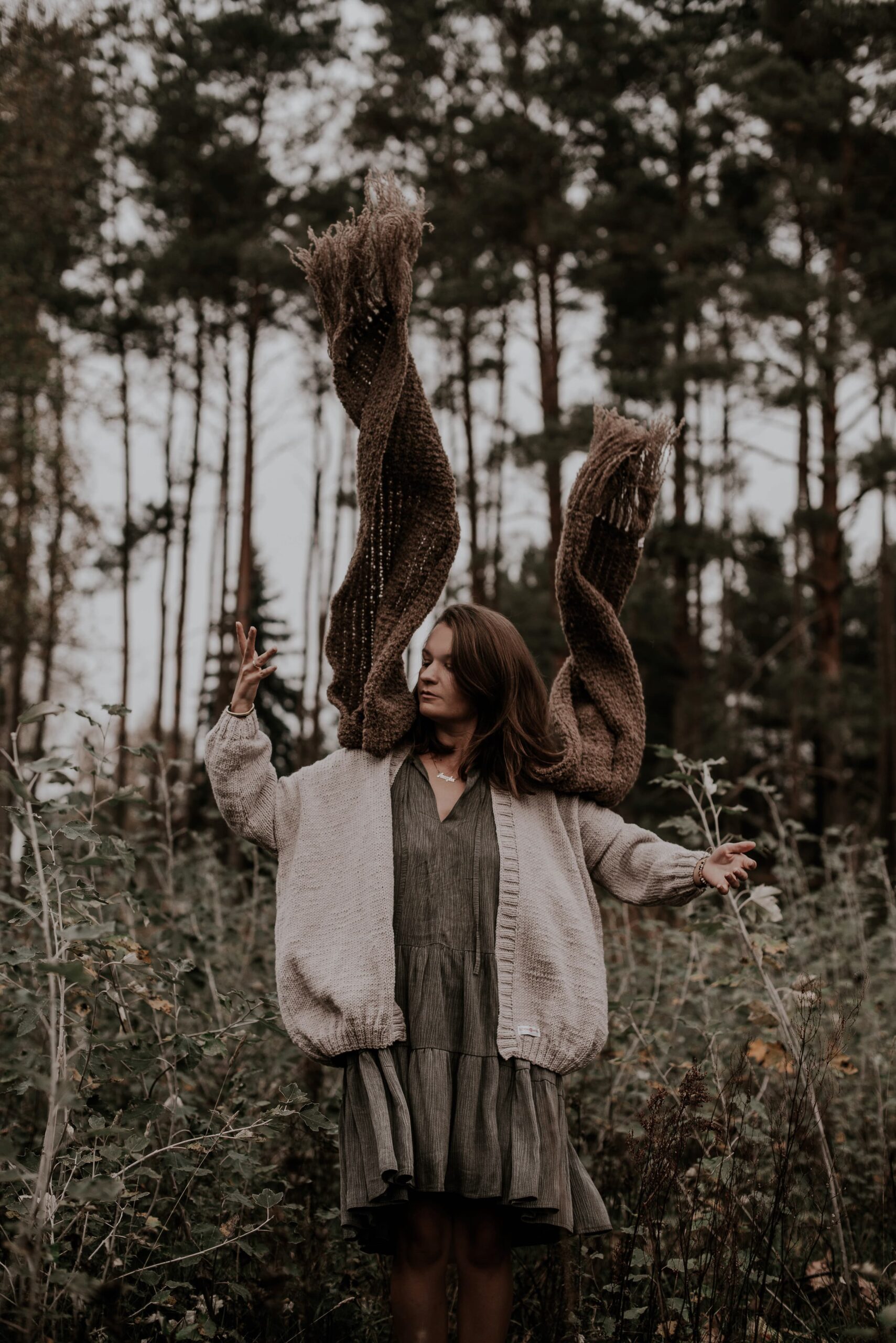 Każdy szalik wykonywany jest ręcznie, dlatego podane wymiary są orientacyjne i mogą się nieznacznie różnić. Należy przyjąć margines +- 3 cm.