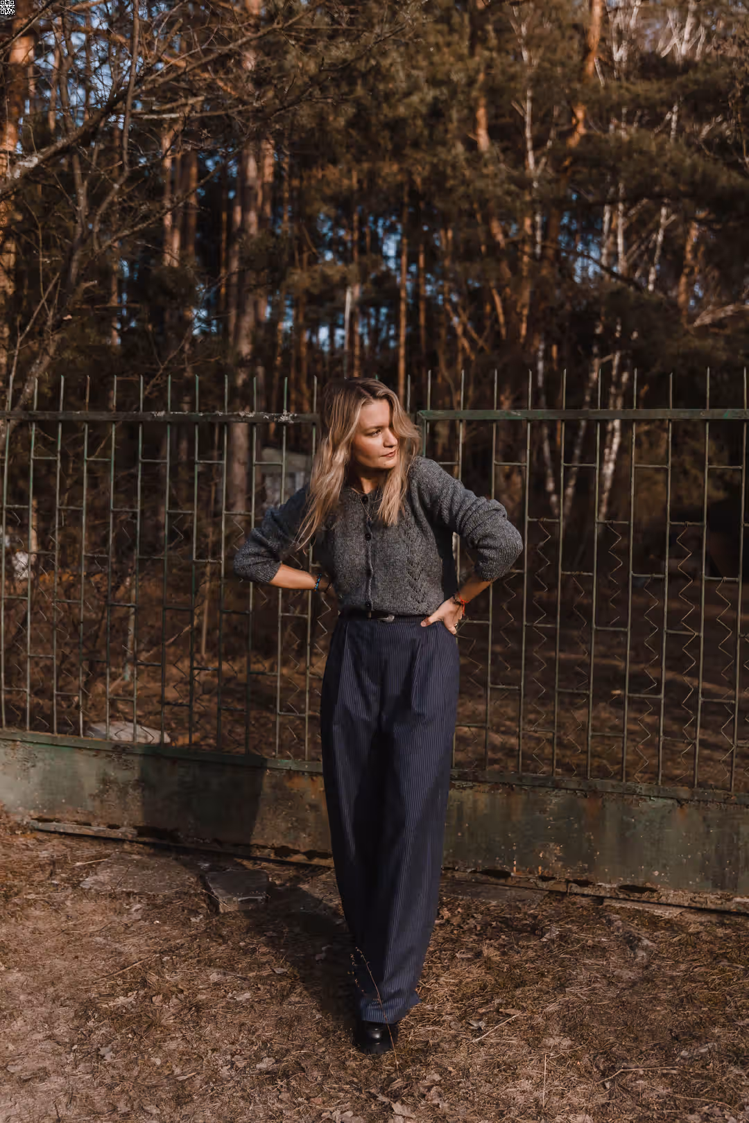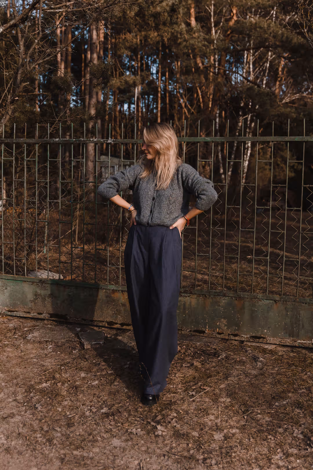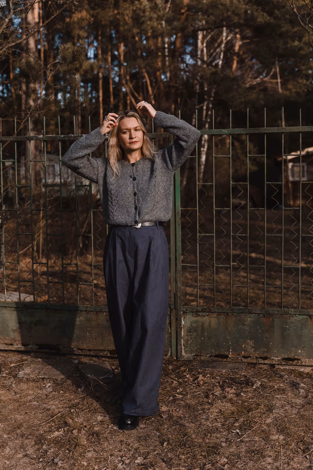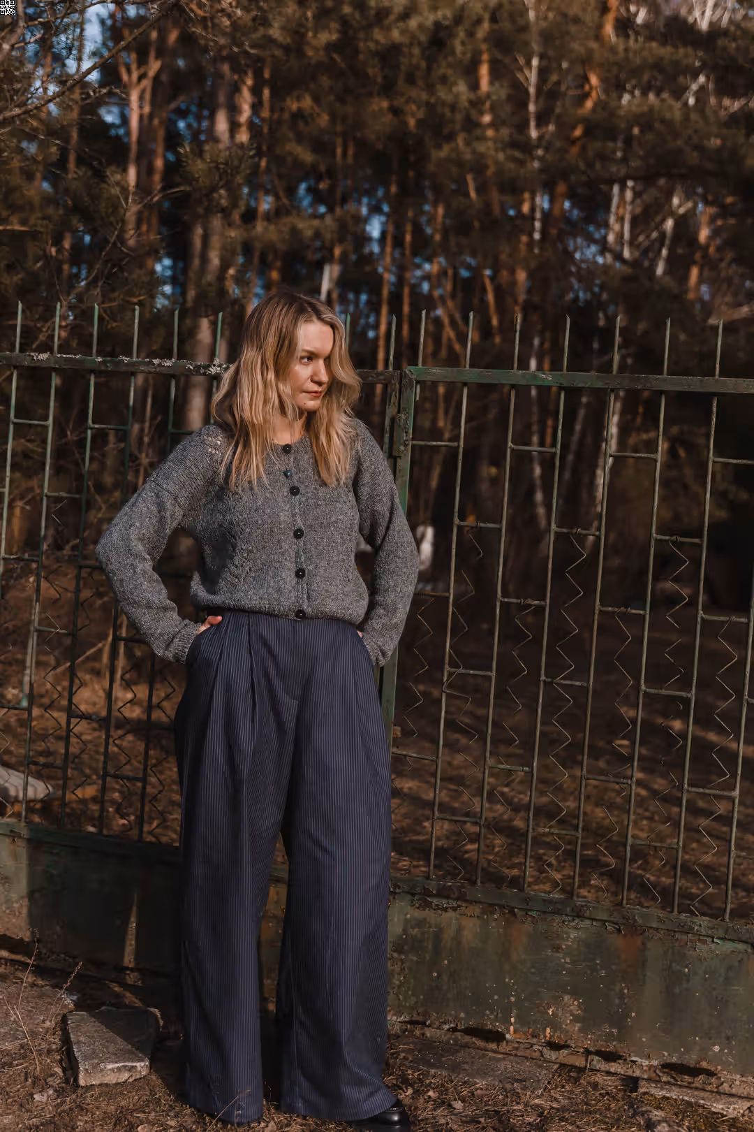 Spodnie o inspirowanym garniturem kroju, ale w swobodnym, codziennym wydaniu. Luźniejsza forma i miękko układający się materiał sprawiają, że są wygodne i naturalne w noszeniu. Wysoki stan podkreśla talię, a prosta nogawka daje lekkość i ponadczasowy charakter. To model, który dobrze wygląda zarówno w prostych stylizacjach, jak i w bardziej odważnych zestawieniach. Możesz nosić je klasycznie — z koszulą, swetrem czy T-shirtem — albo połączyć ze spódnicą z kompletu, tworząc bardziej nieoczywistą, warstwową stylizację. Dla tych, które lubią prostotę, ale nie boją się wyjść poza schemat.