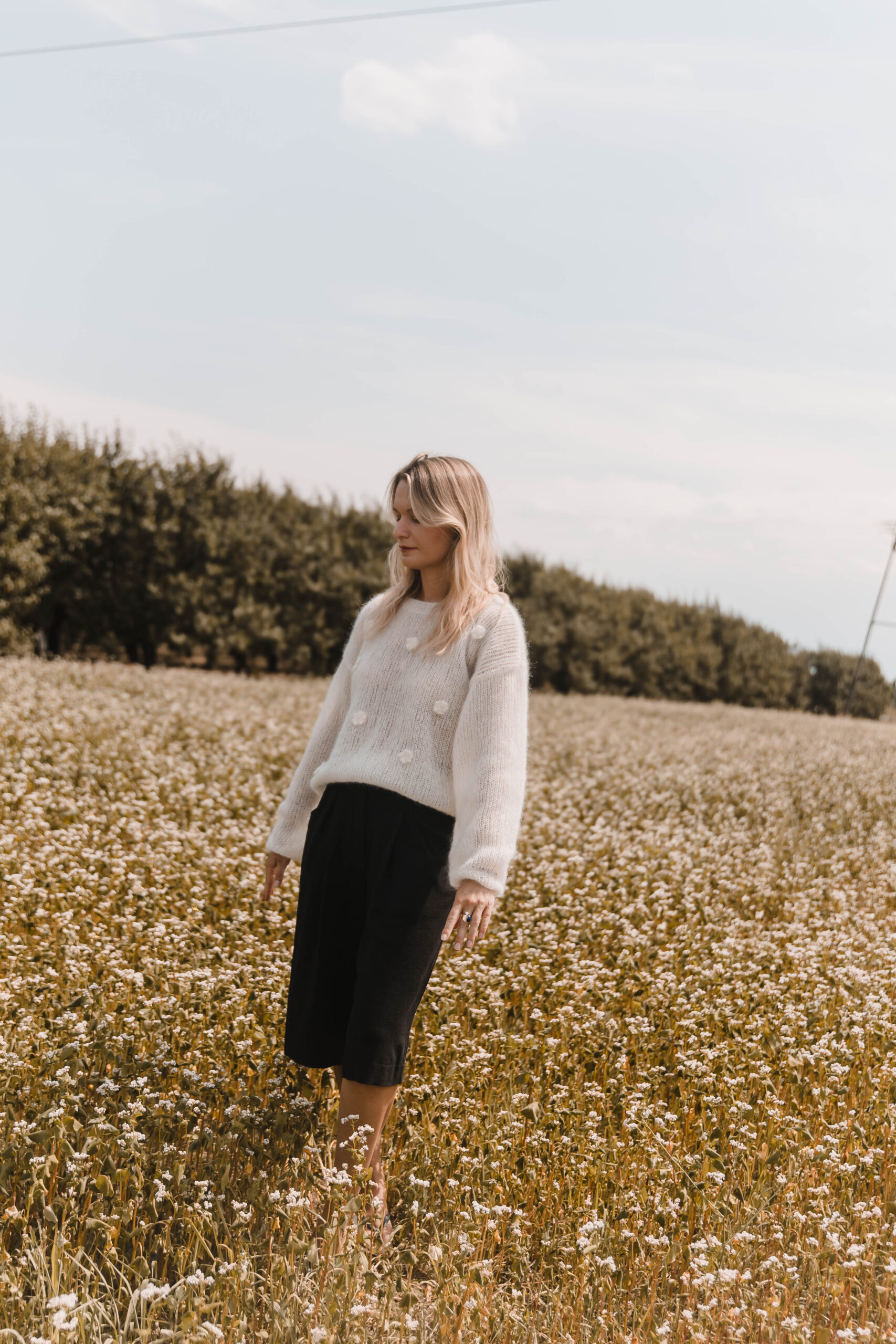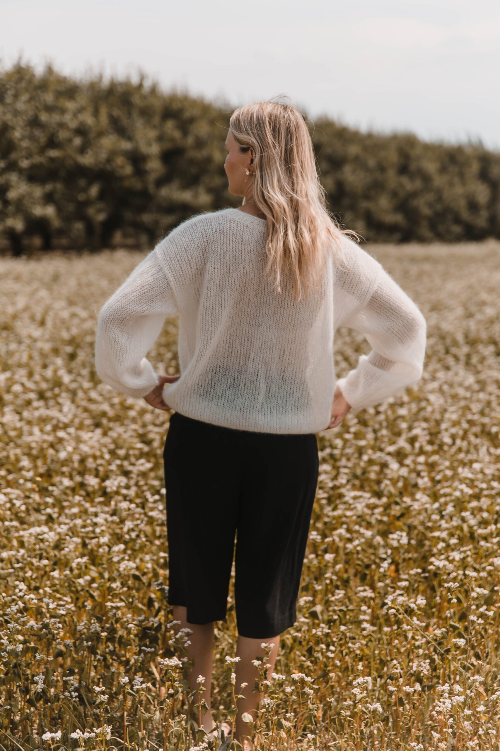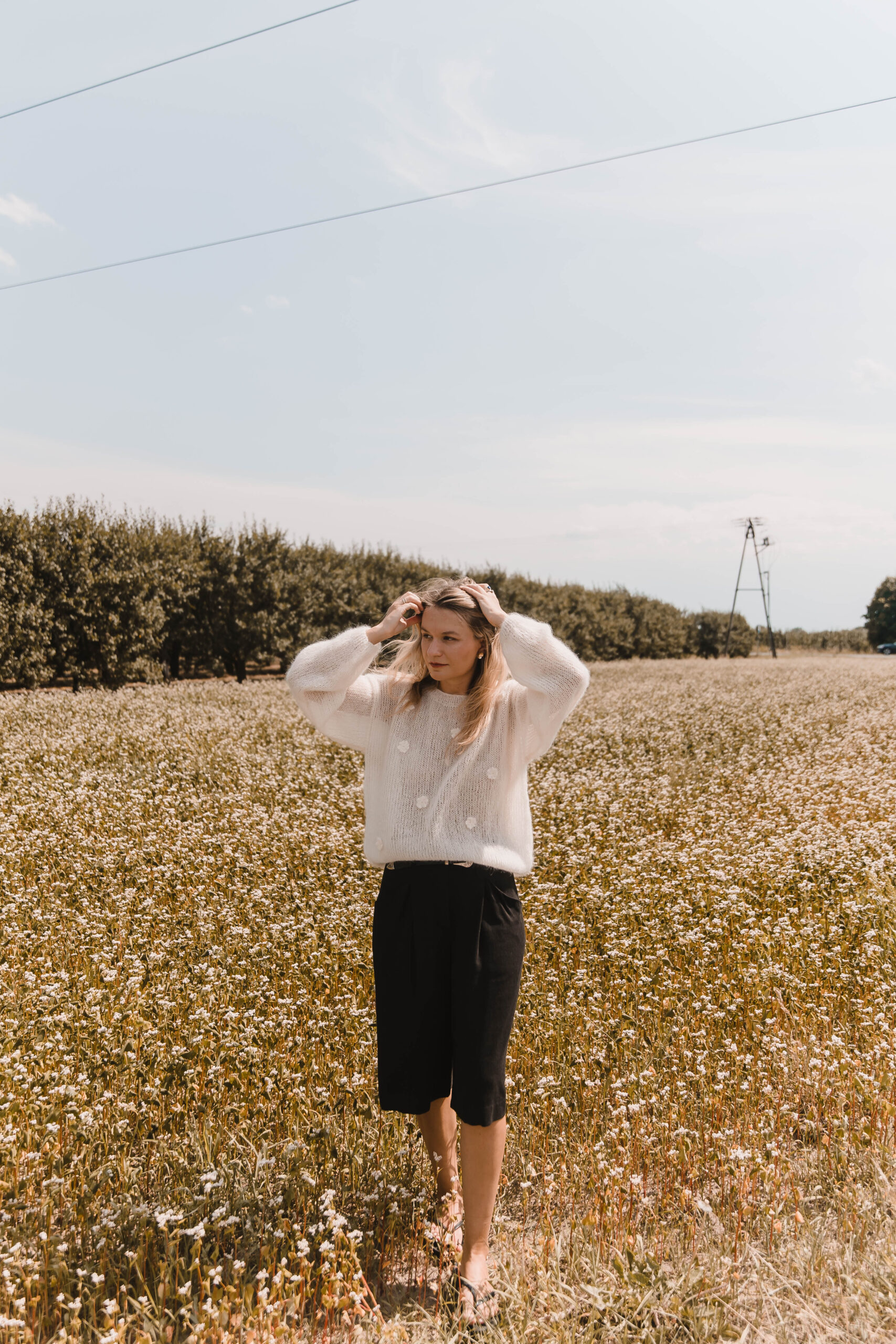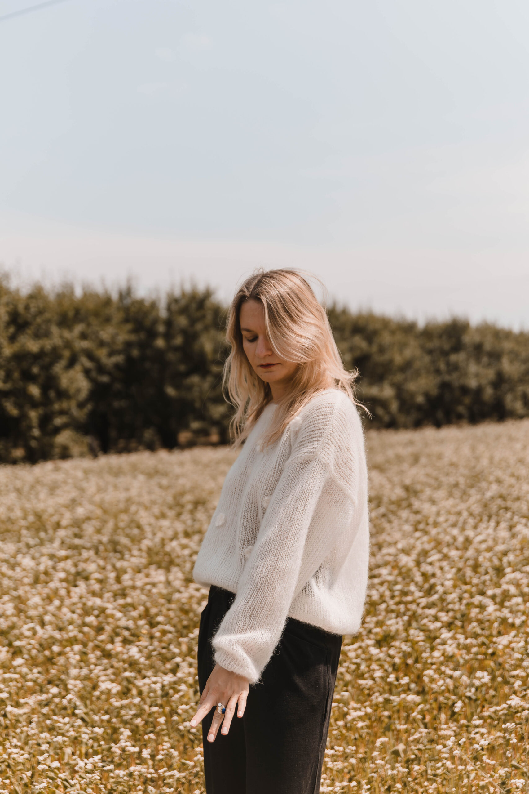 „Cloudette” to sweter jak z marzenia – miękki, puchaty i pełen uroku. Zrobiony na drutach z delikatnej przędzy, otula niczym chmurka w letni poranek. Jego wyjątkowość tkwi w detalach: kwiatki wykonane szydełkiem i ręcznie doszyte do dzianiny przywodzą na myśl czasy, gdy ubrania powstawały z sercem i cierpliwością. To połączenie rzemiosła i subtelnej estetyki w najczystszej postaci. „Cloudette” idealnie łączy dziewczęcość z autentycznym stylem handmade – noś ją do dżinsów, spódnicy w kwiaty albo tak, jak lubisz najbardziej. Bo ten sweter nie goni za trendami – on tworzy swój własny klimat.