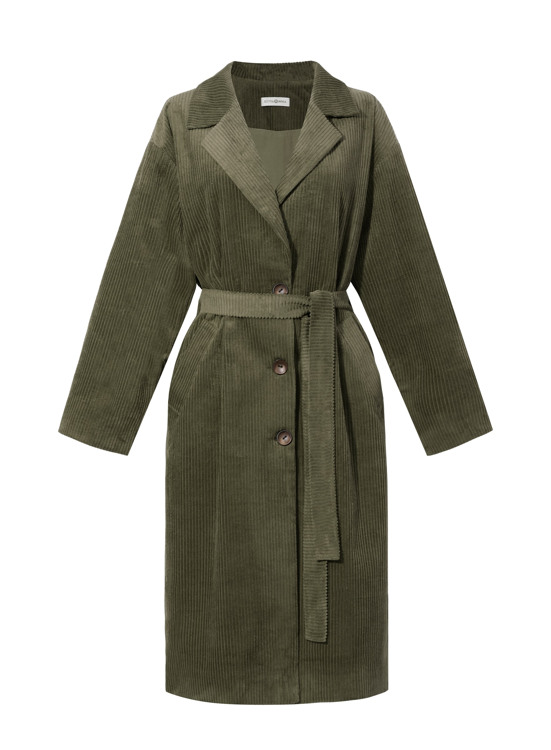 Od dawna marzył nam się sztruksowy płaszcz o kroju oversize. I oto jest! Klasyczny krój obowiązkowo z kieszeniami. Pod spodem miła wiskozowa podszewka. Dostępny w trzech, pięknie mieniących się kolorach.