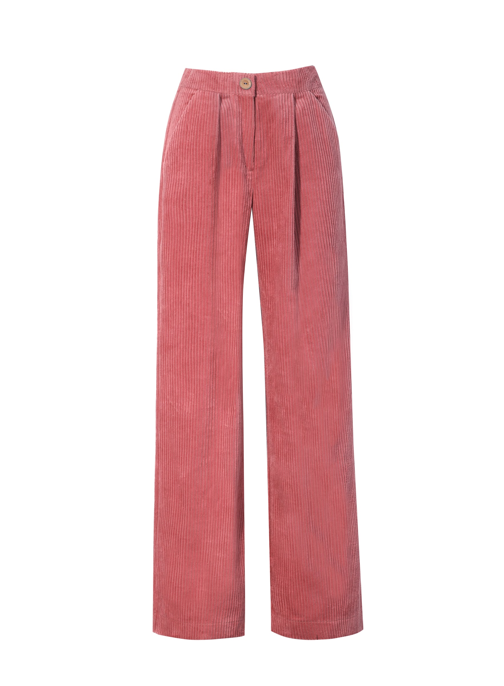 Sztruksowe spodnie z kieszeniami, uszyte do kompletu z marynarką (do kupienia osobno). Dzięki wszytej z tyłu gumce można je delikatnie regulować w pasie. Kolor: stary róż.