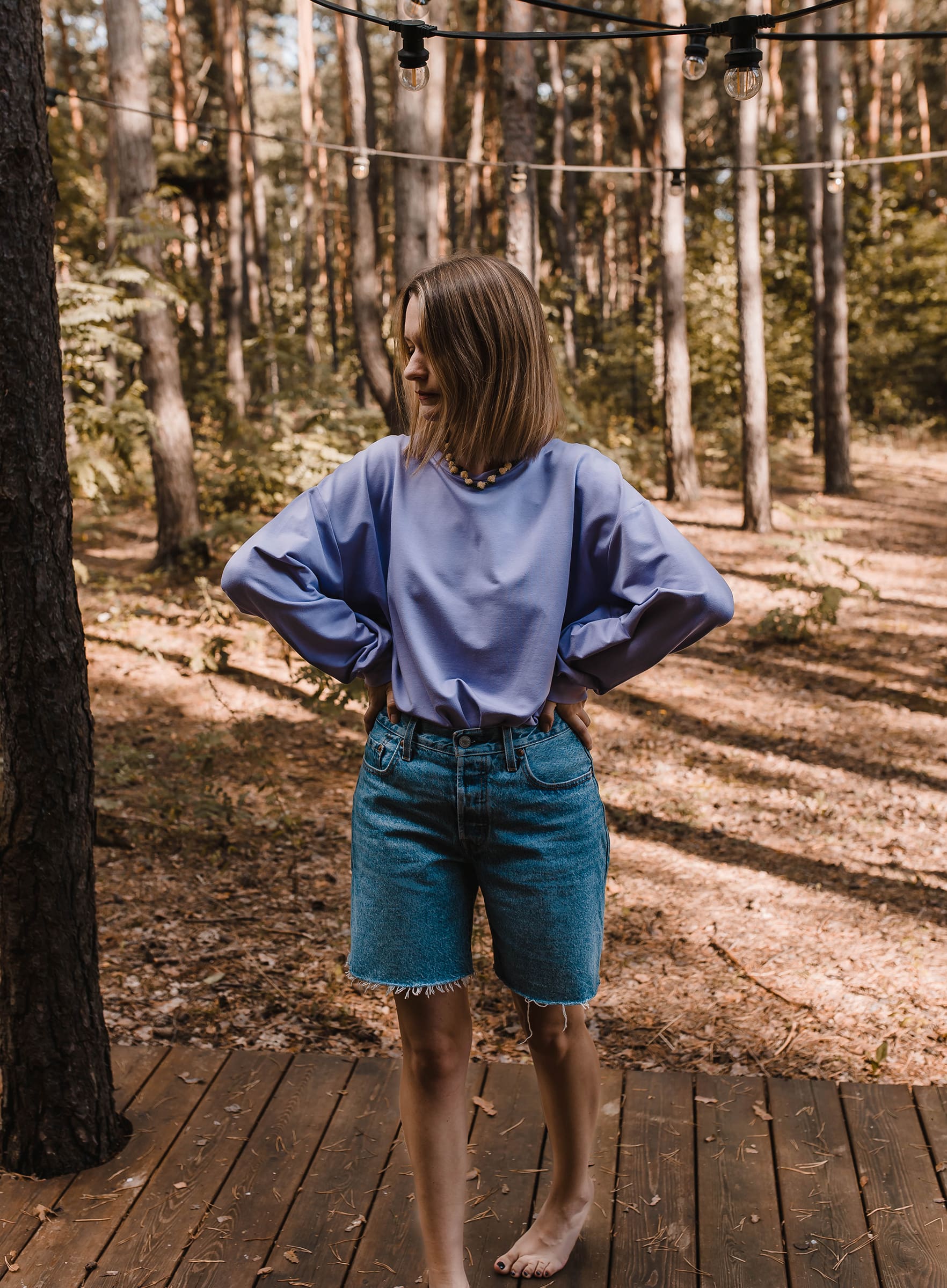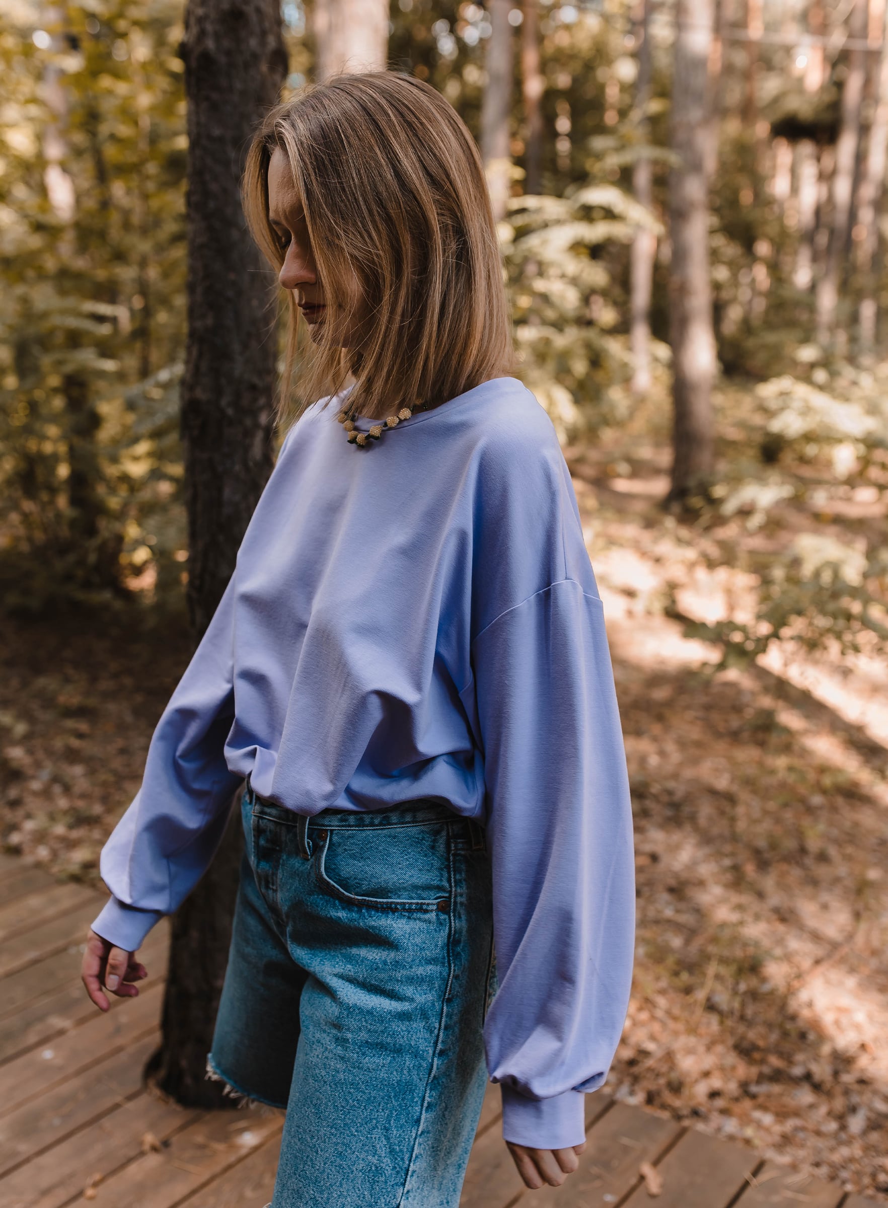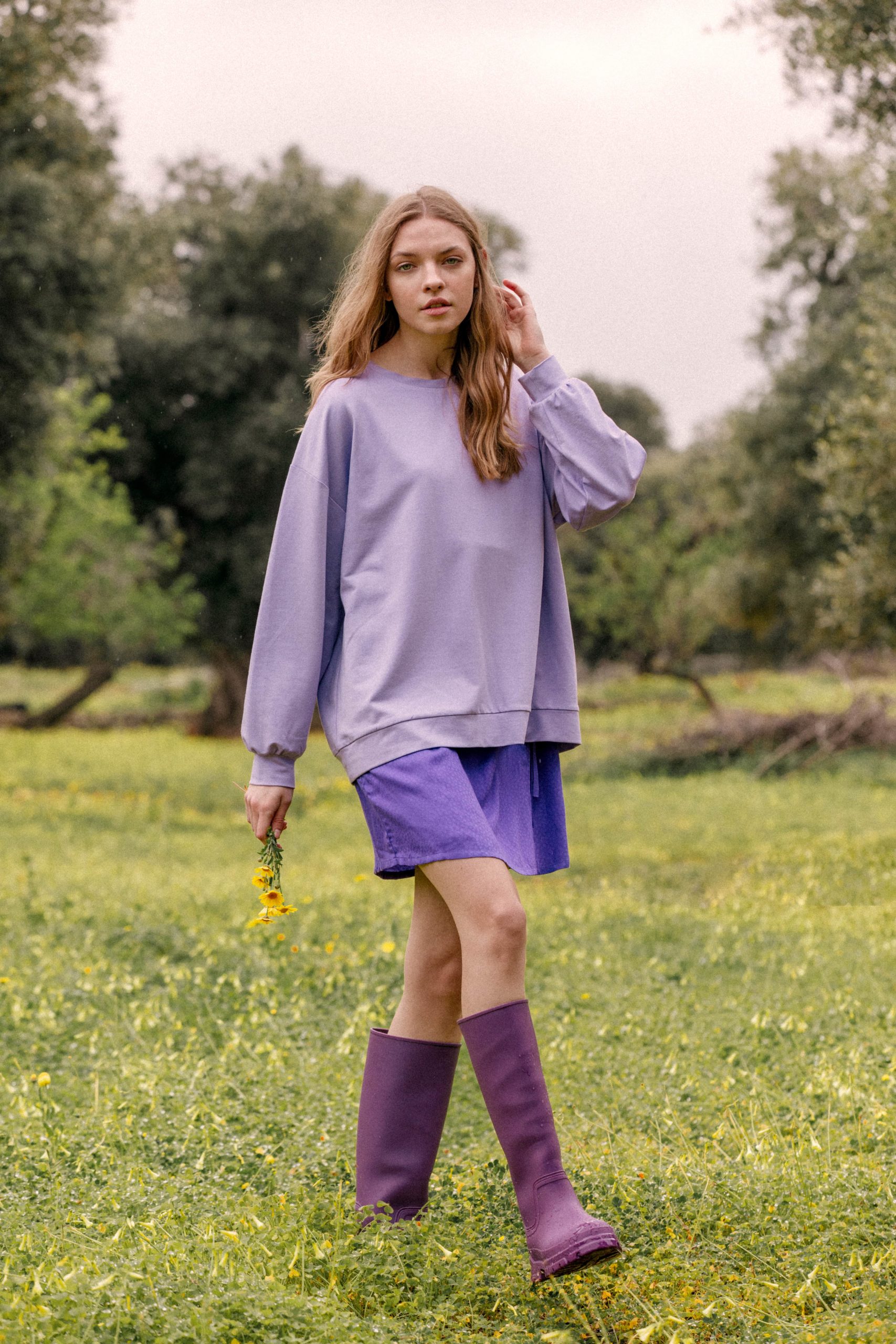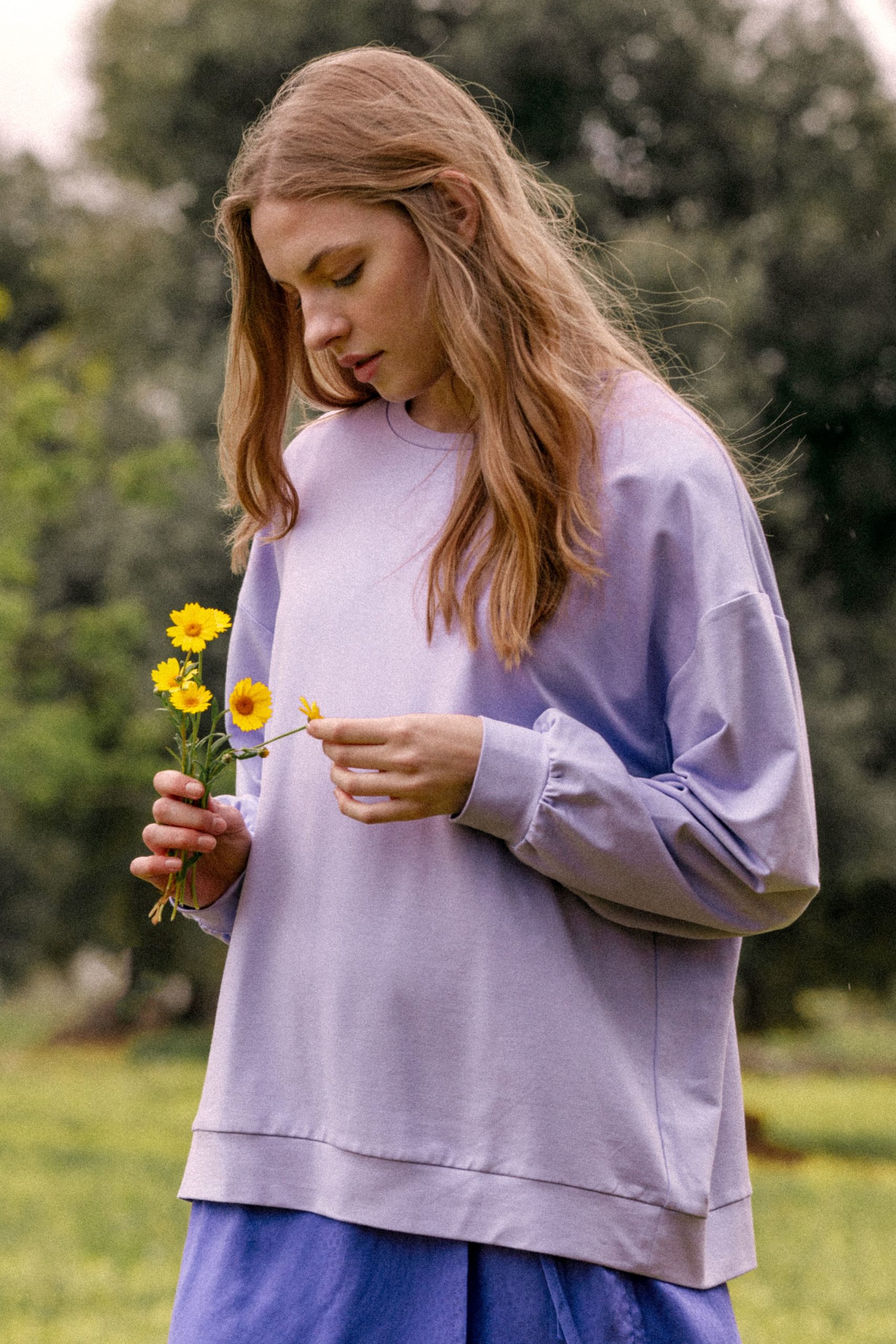 Bluza w kolorze wiosny, a dokładnie – kwitnących krokusów. Z konkretów- dekolt pod szyję i dłuższa forma, która nie odsłania nerek. Spróbuj w zestawie z sukienką Bacio.