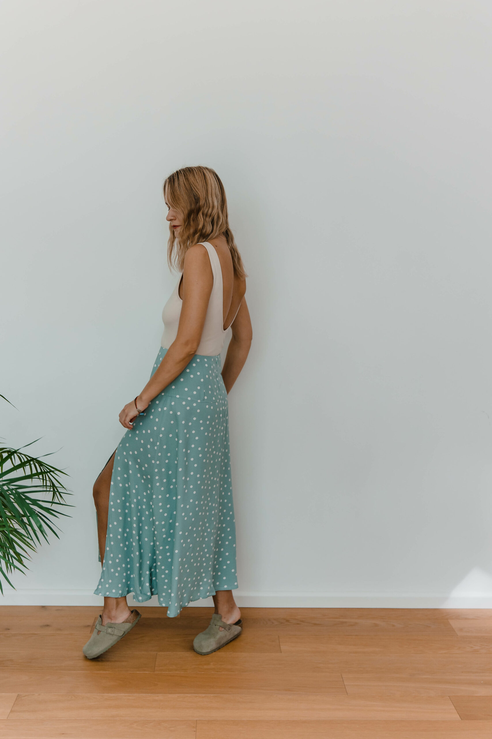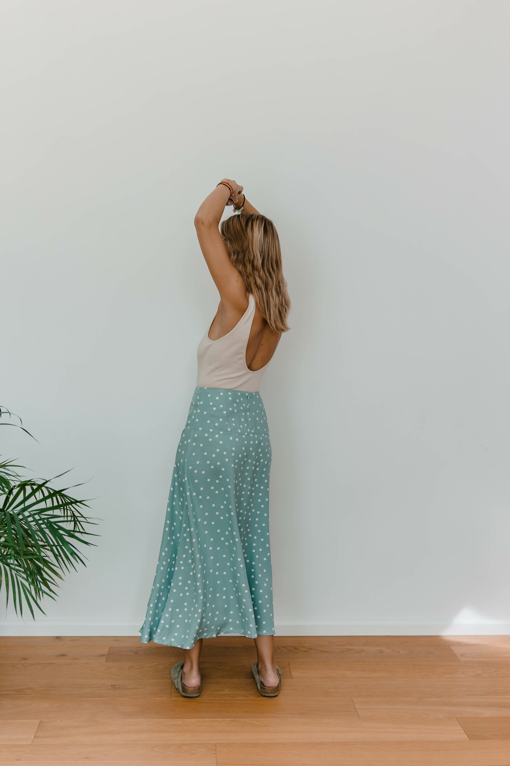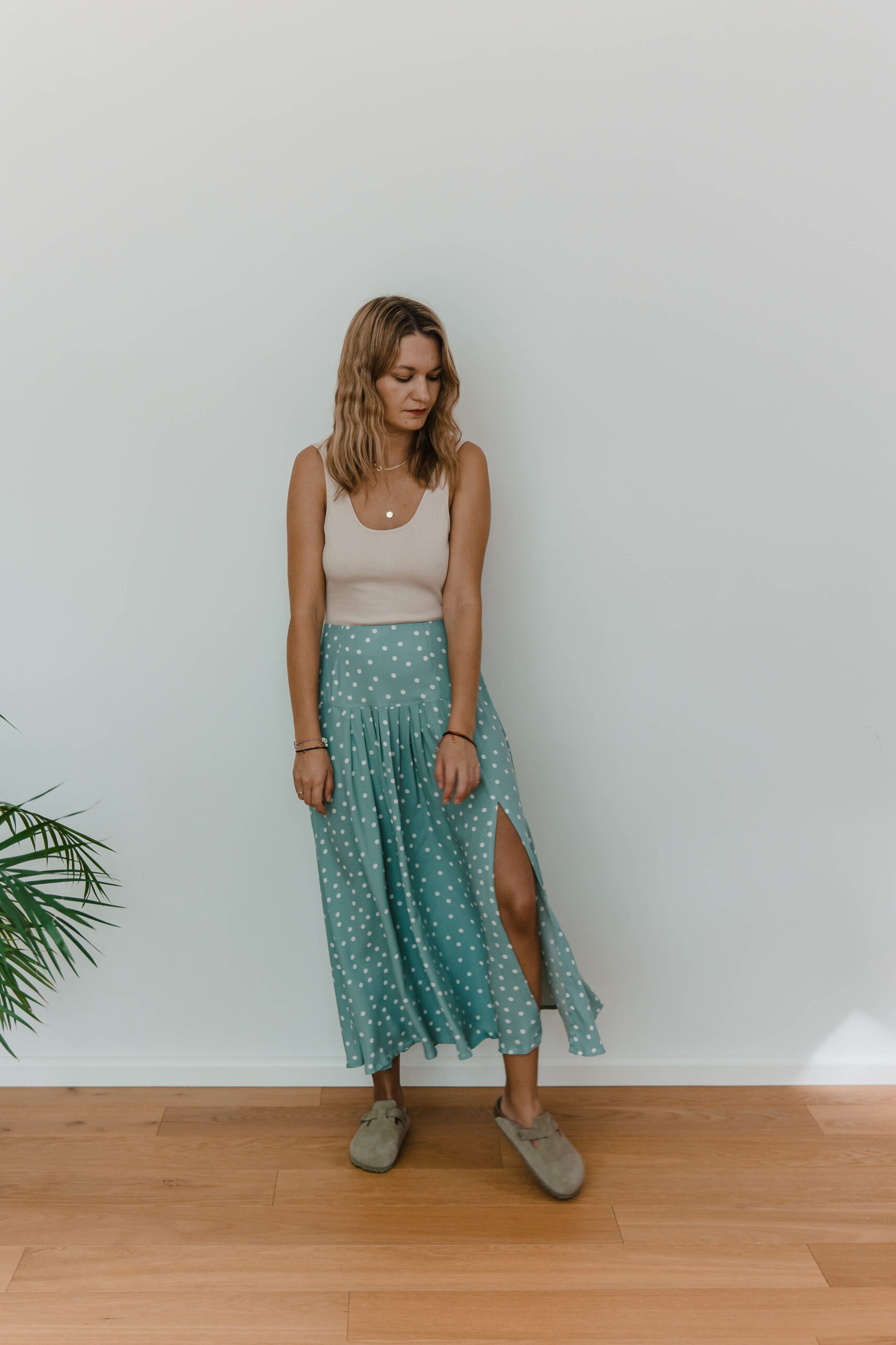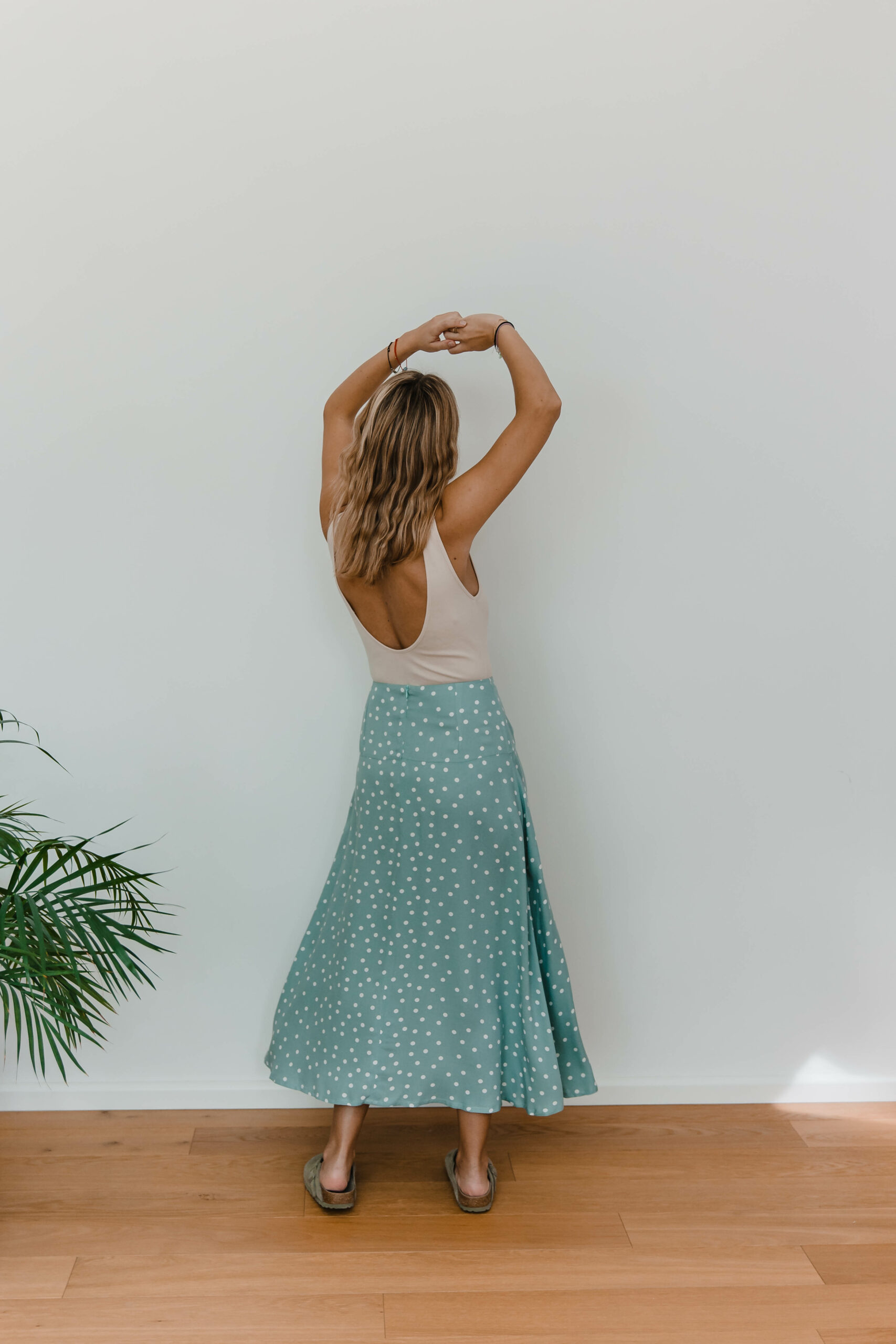 Dots Skirt to idealne połączenie uroku retro i nowoczesnego stylu. Zakładki z przodu dodają niepowtarzalnego charakteru, podczas gdy rozcięcie na nodze nadaje subtelnej zmysłowości.