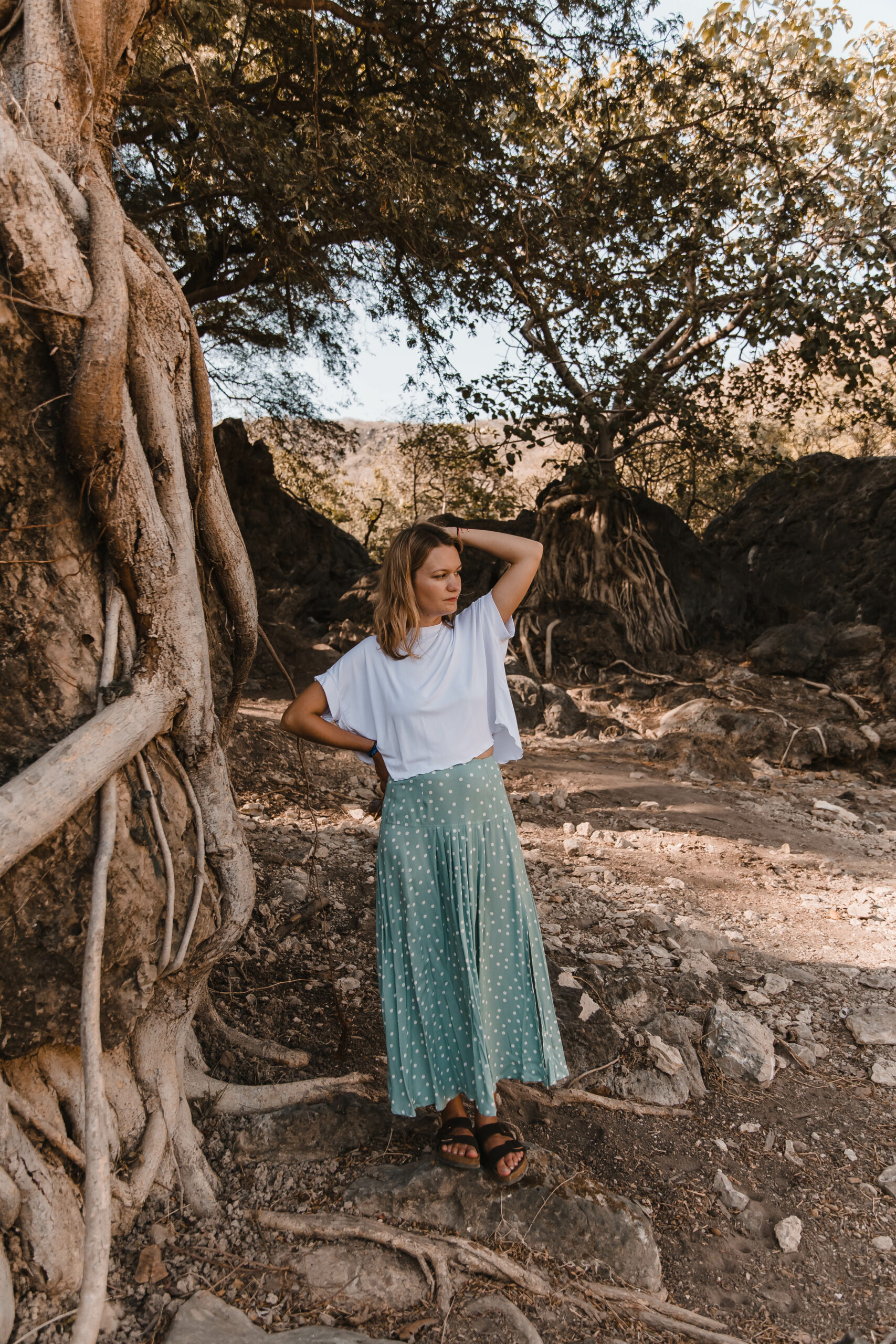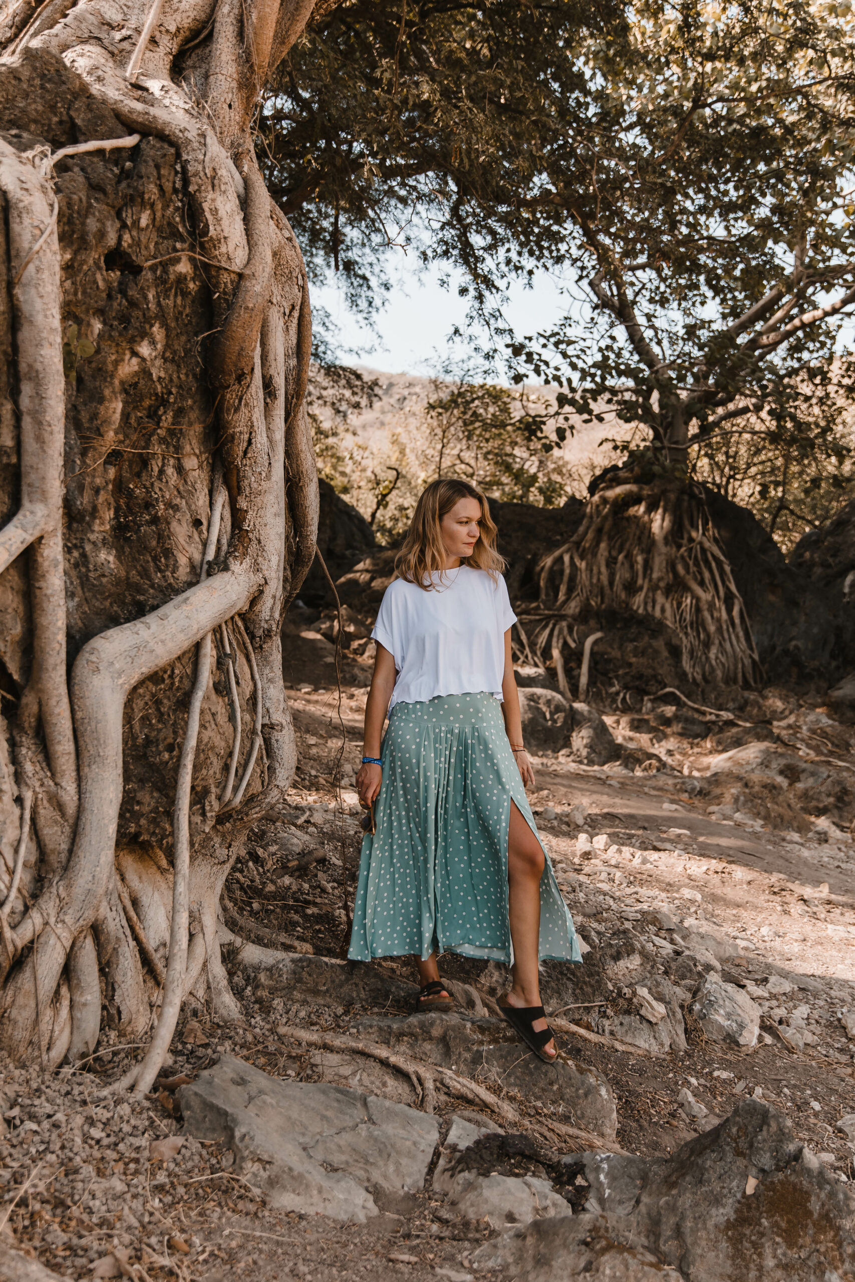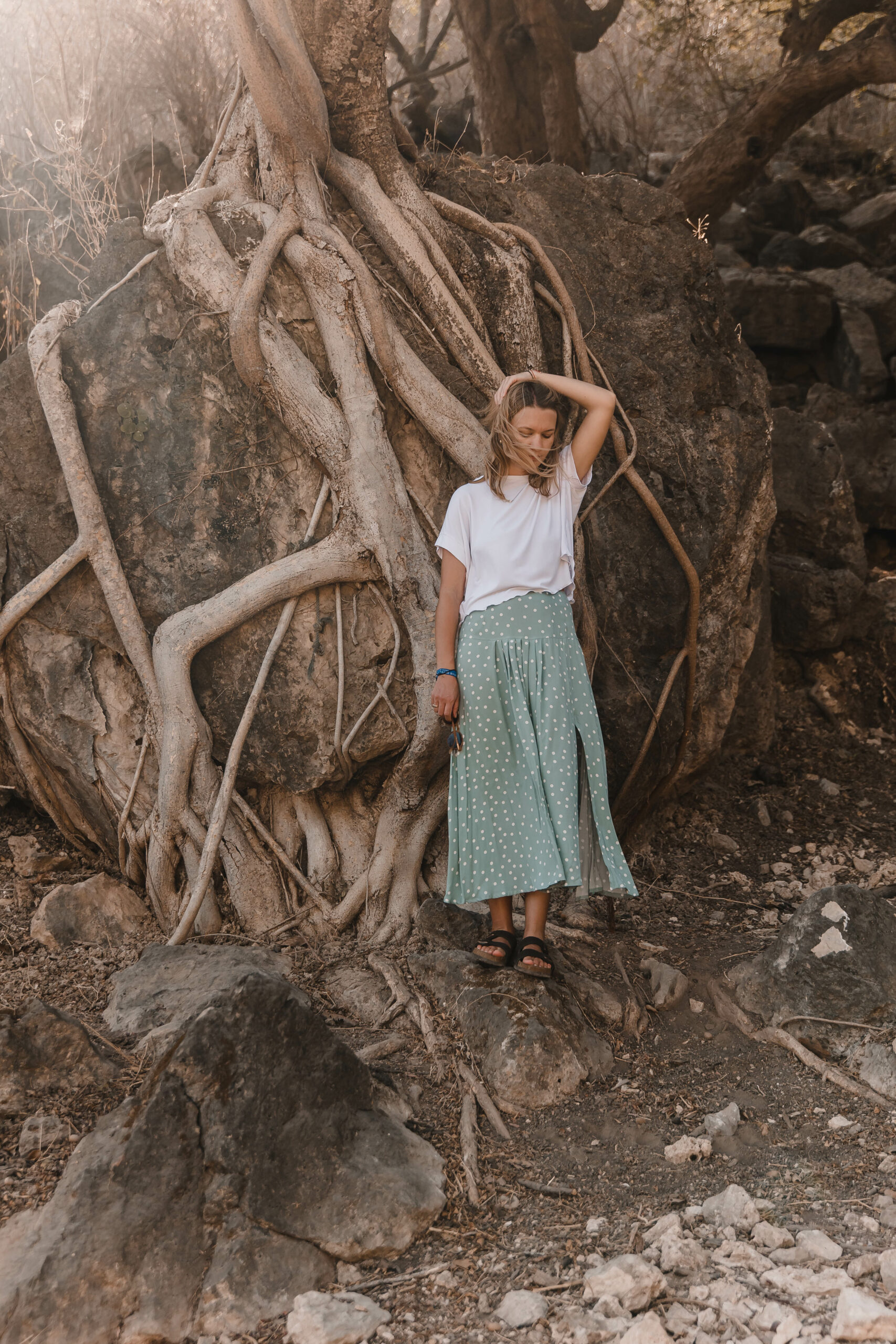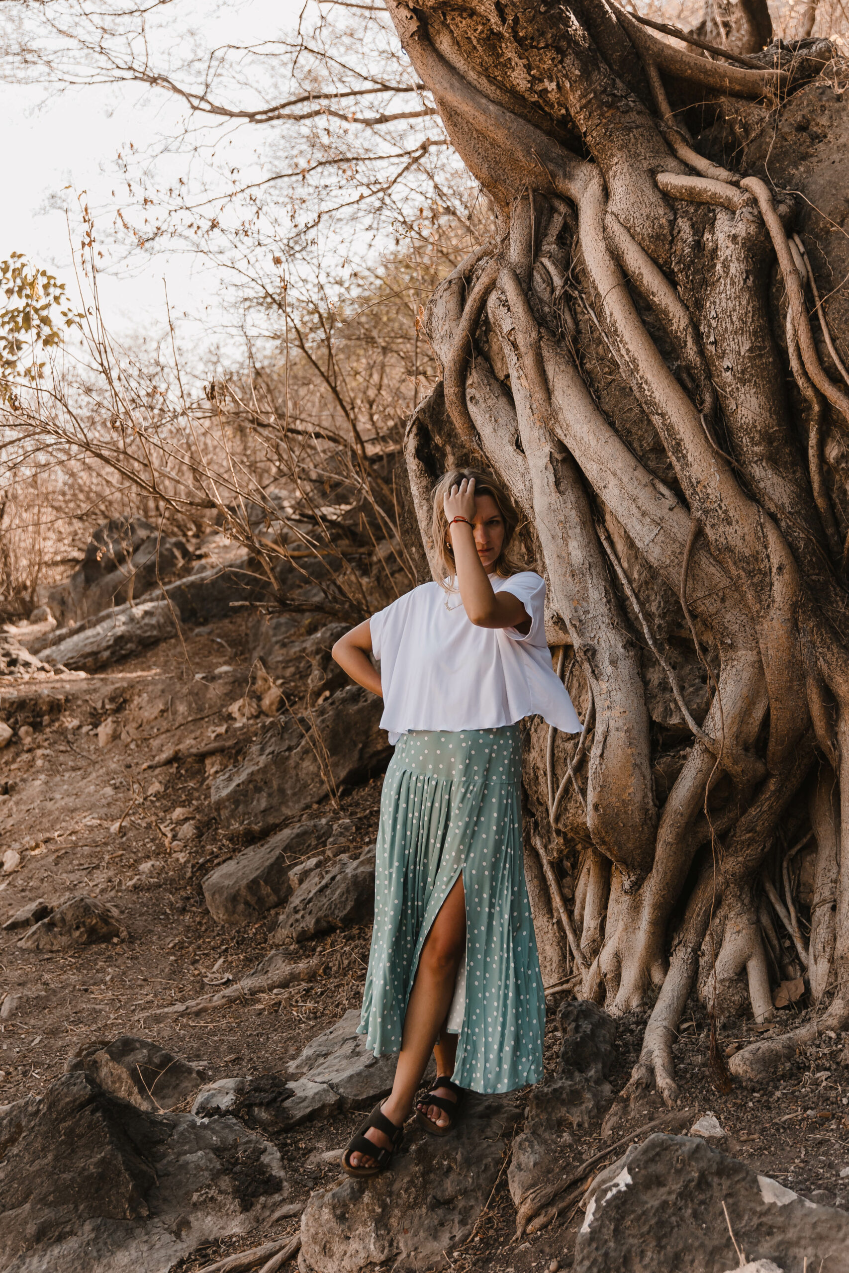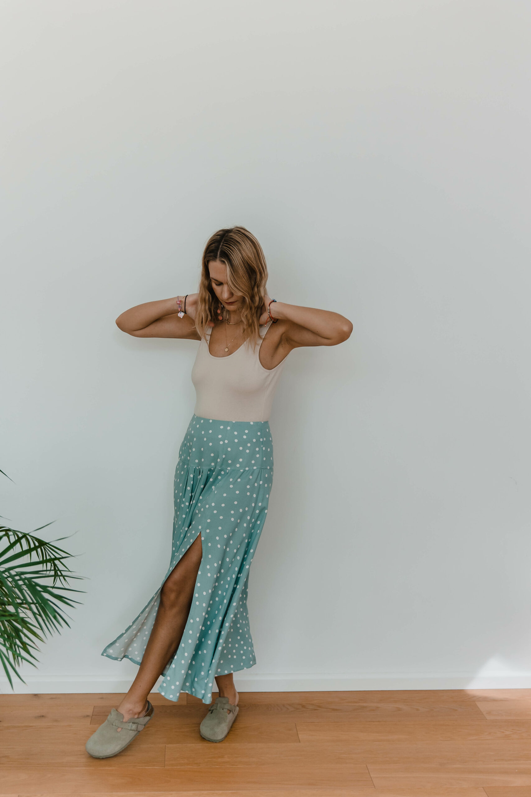 Dots Skirt to idealne połączenie uroku retro i nowoczesnego stylu. Zakładki z przodu dodają niepowtarzalnego charakteru, podczas gdy rozcięcie na nodze nadaje subtelnej zmysłowości.
