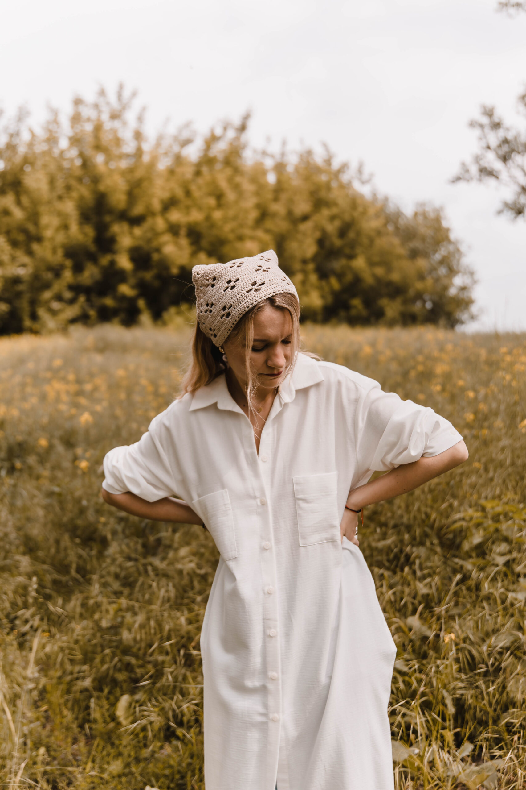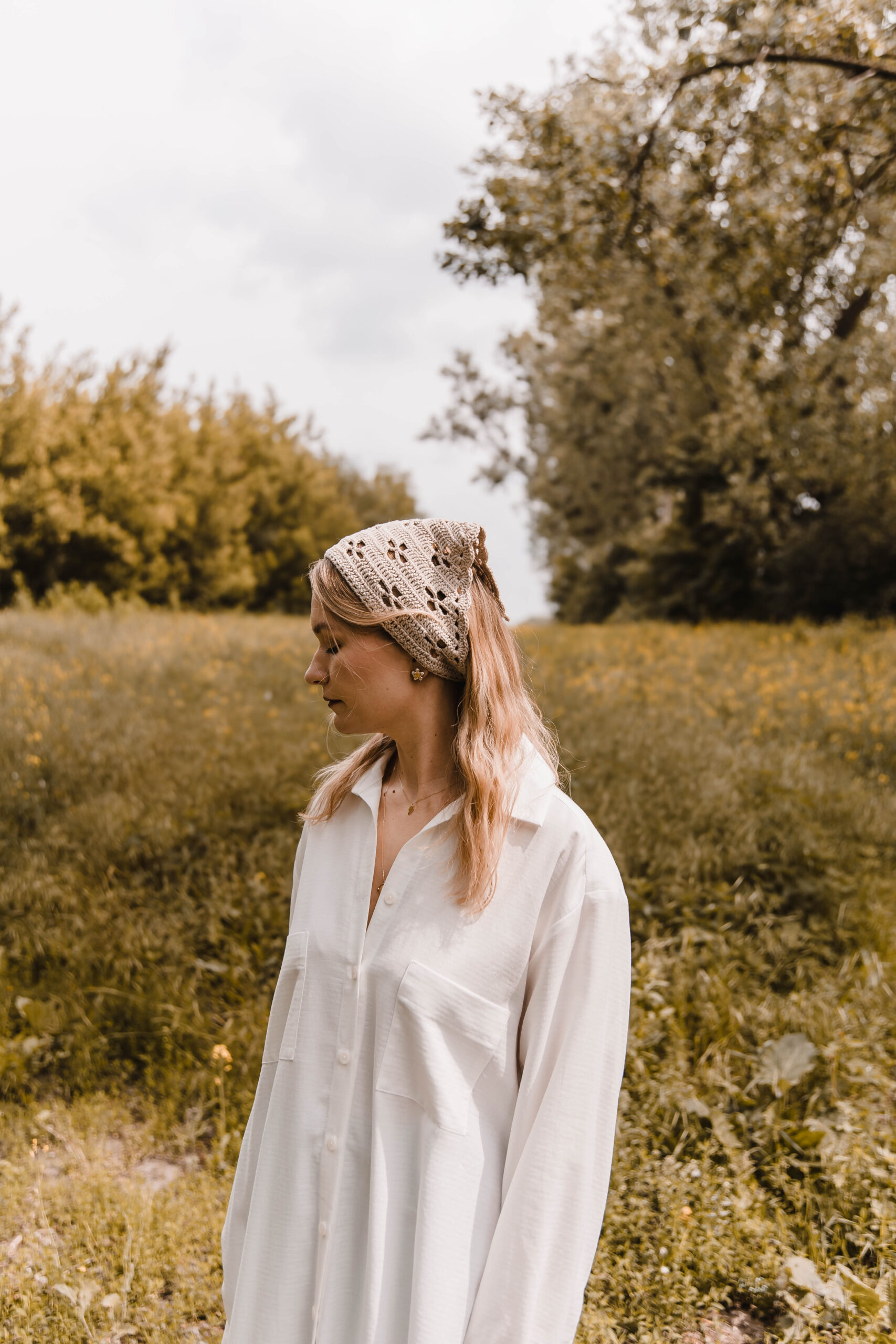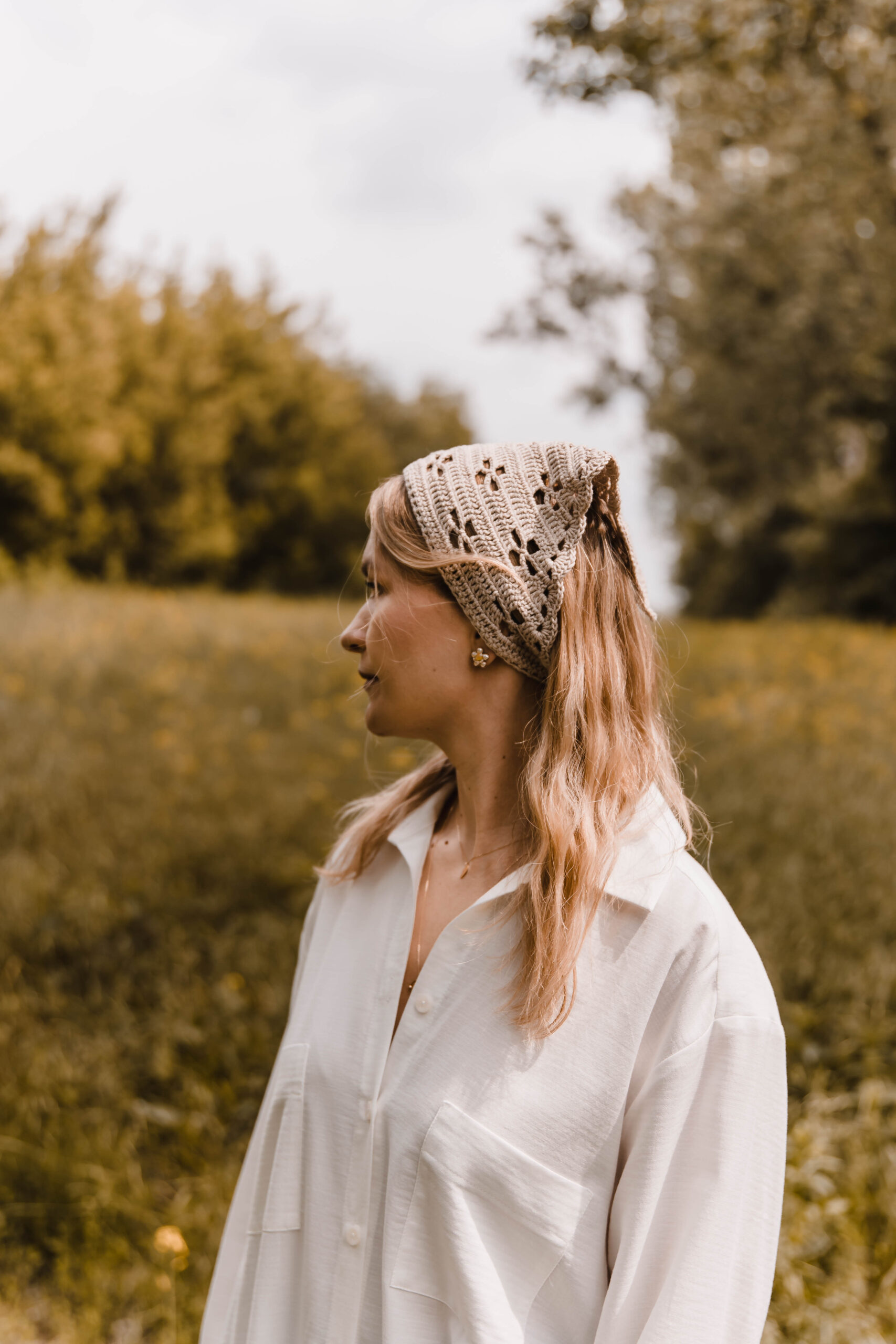 Złap wiatr we włosy i słońce na skórze z tą chustką, która wygląda, jakby przywędrowała prosto z pustynnego festiwalu. Ażurowy wzór i naturalna przędza sprawiają, że to idealny dodatek do plażowych sukienek, dżinsów z wysokim stanem i wiklinowych toreb. Dziewczyńska, zadziorna i totalnie stylowa.