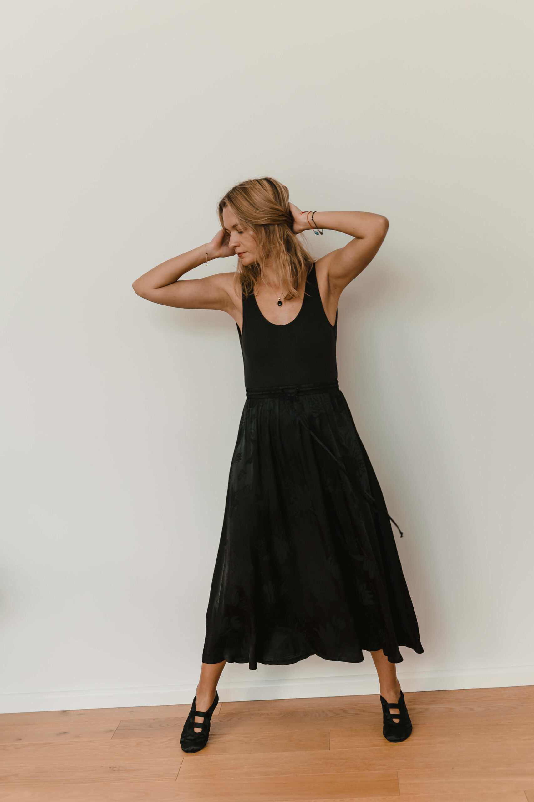 Floral Skirt- spódnica midi żakardowa ciemna