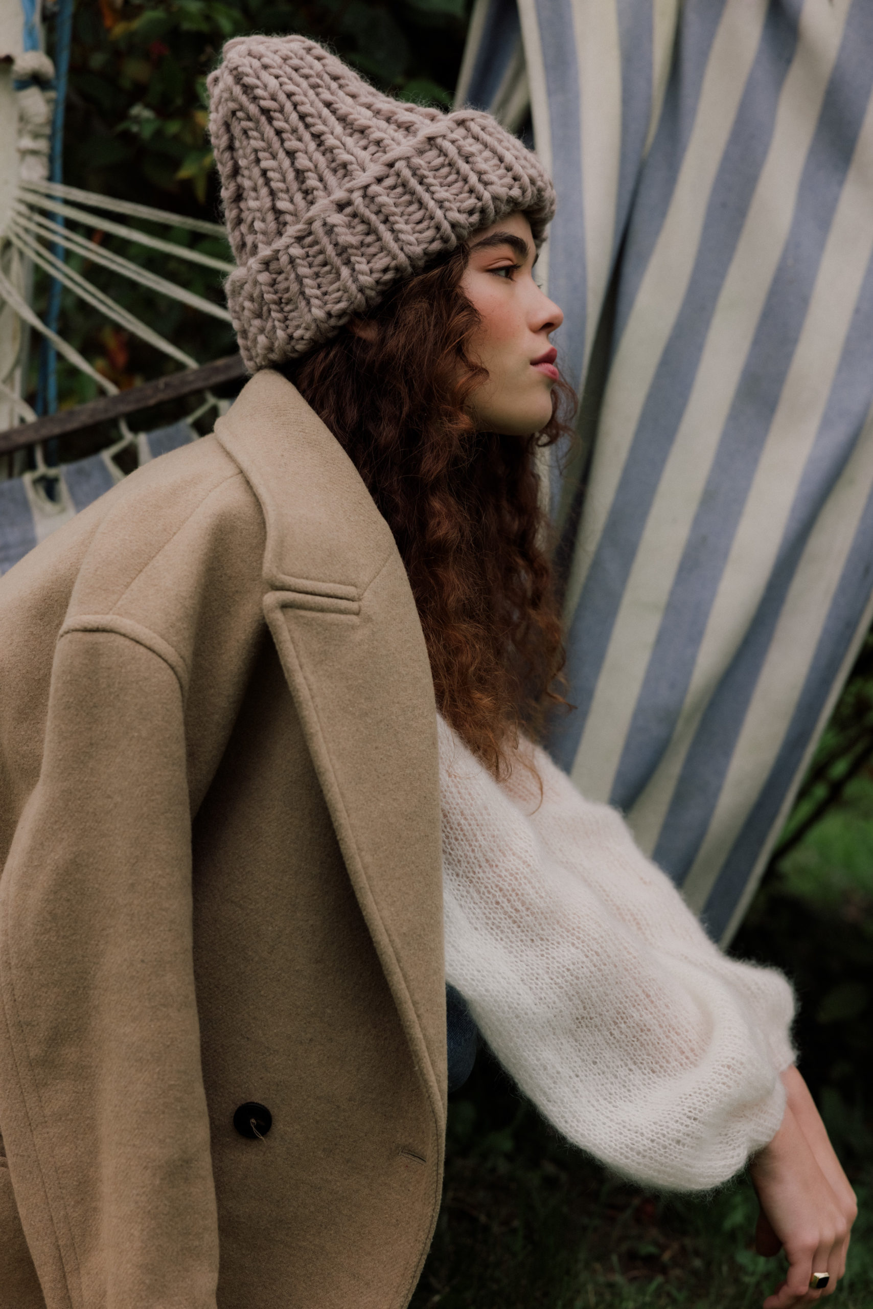 Pielęgnacja: pierz ręcznie w delikatnych płynach, susz na leżąco, nie prasuj. Zaprojektowano i wykonano całkowicie ręcznie w Polsce.