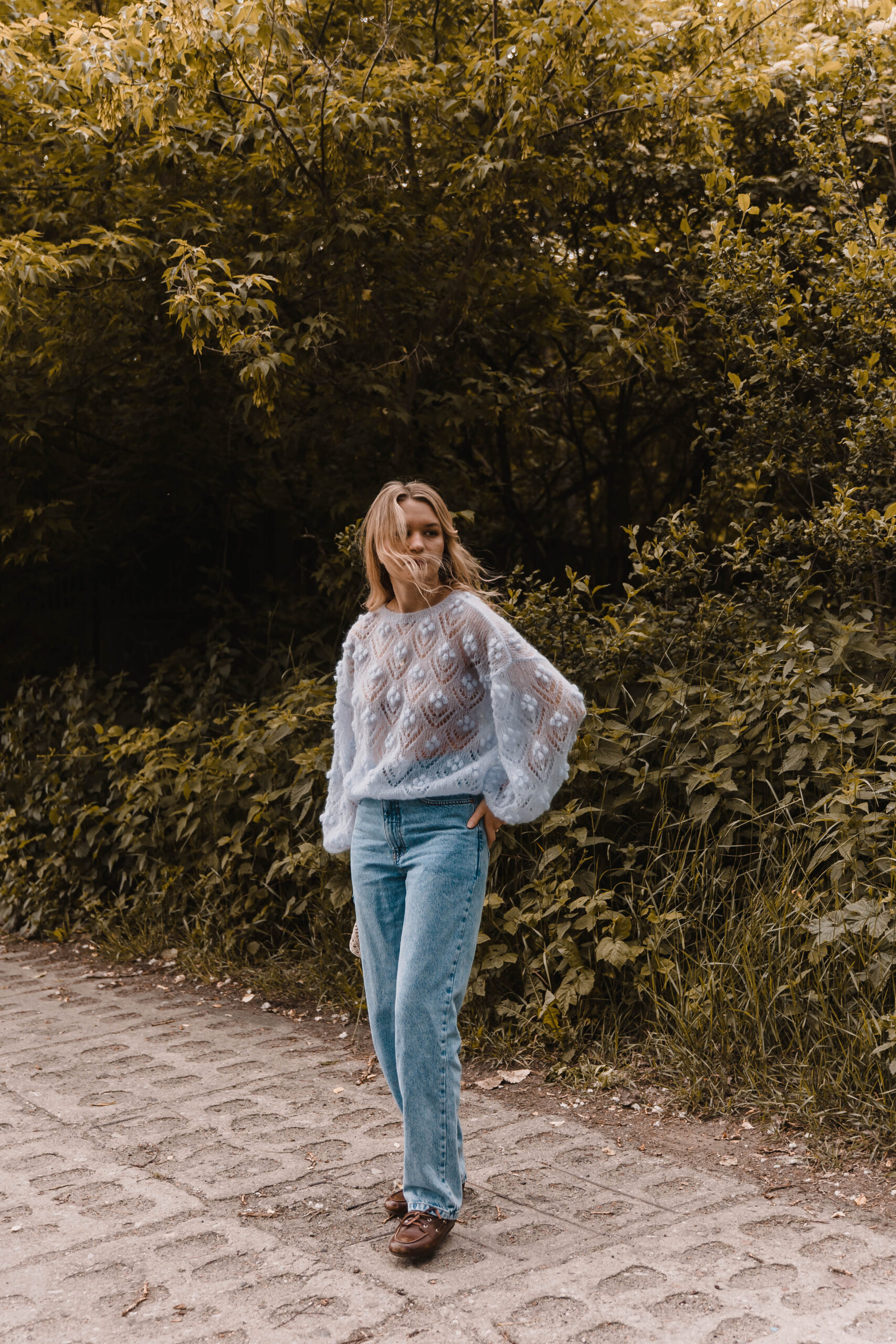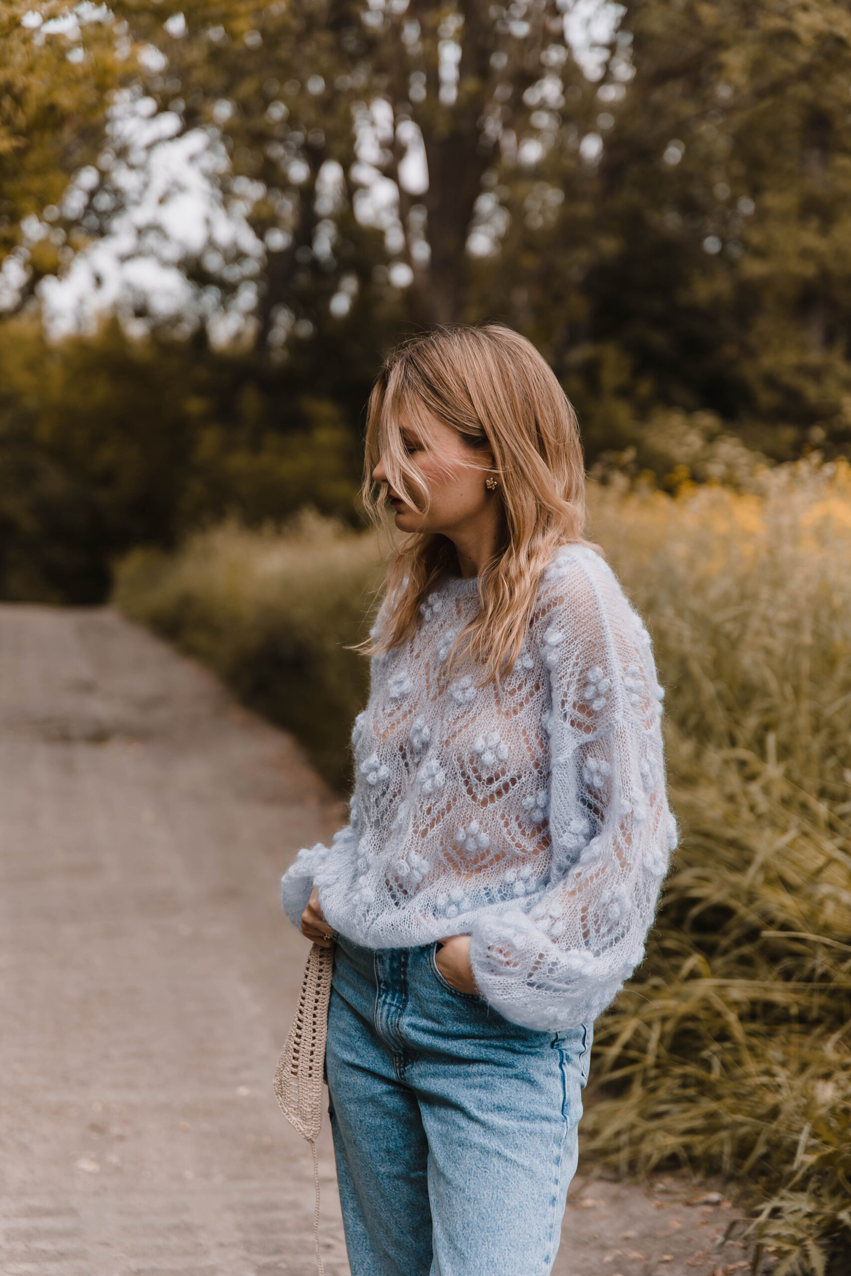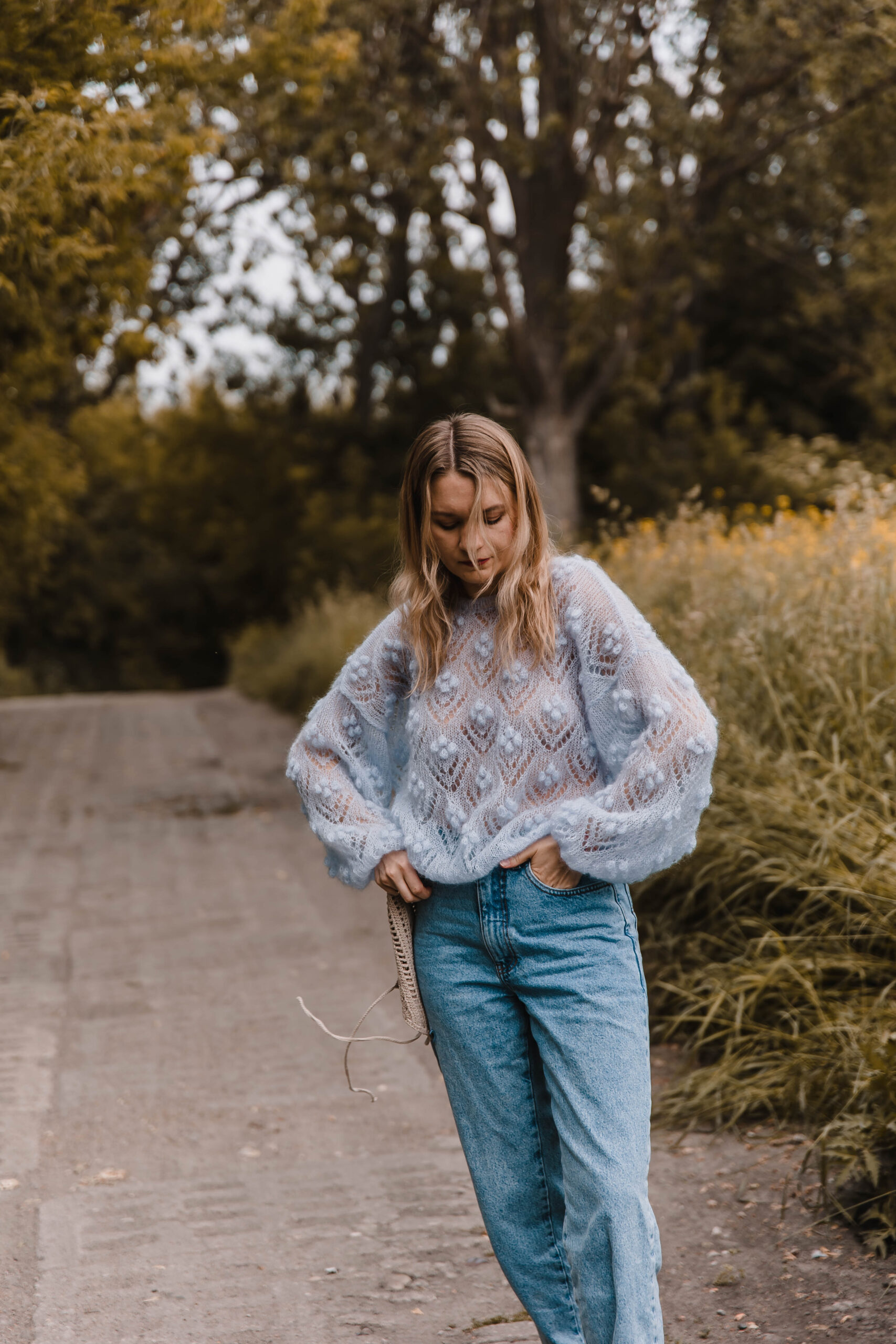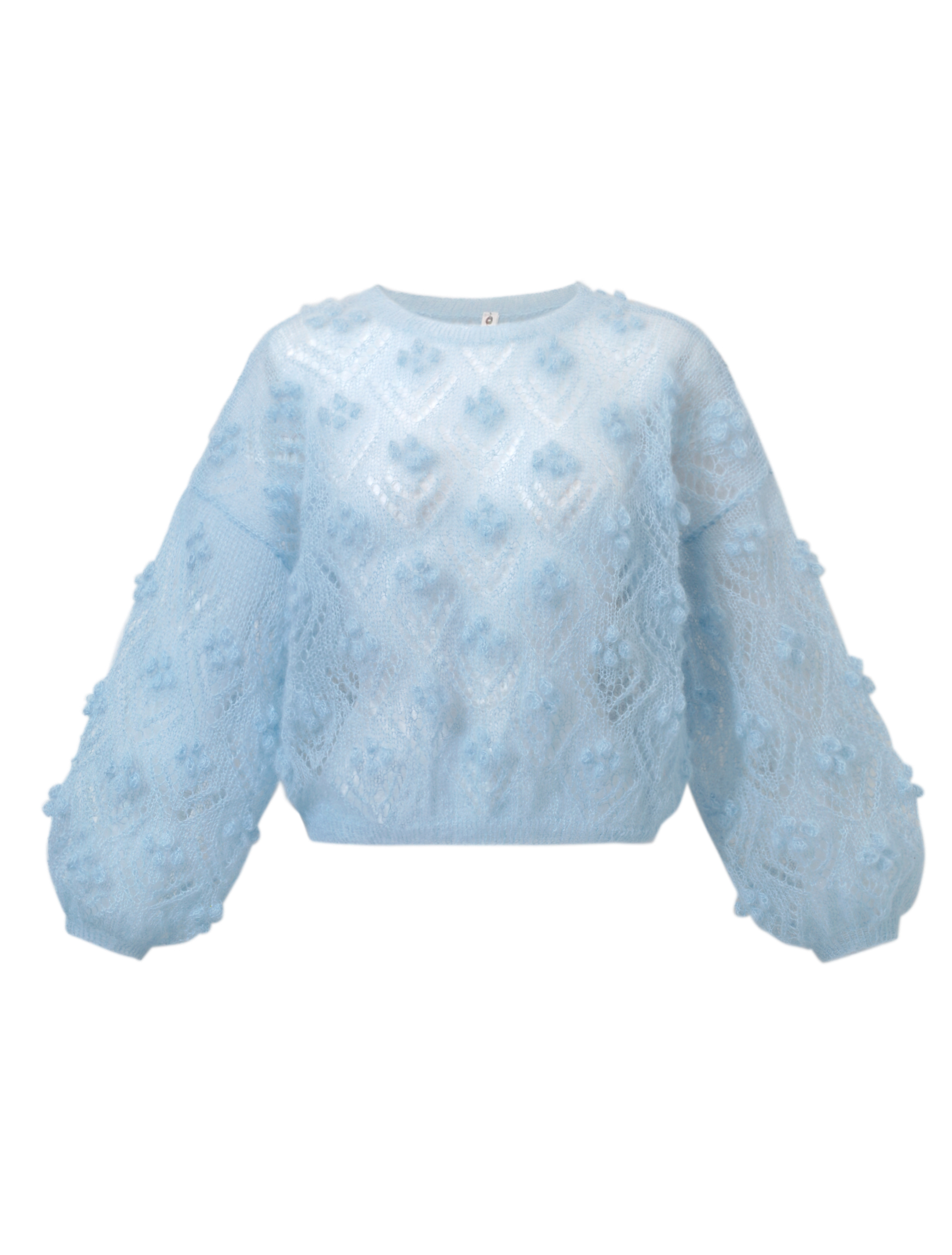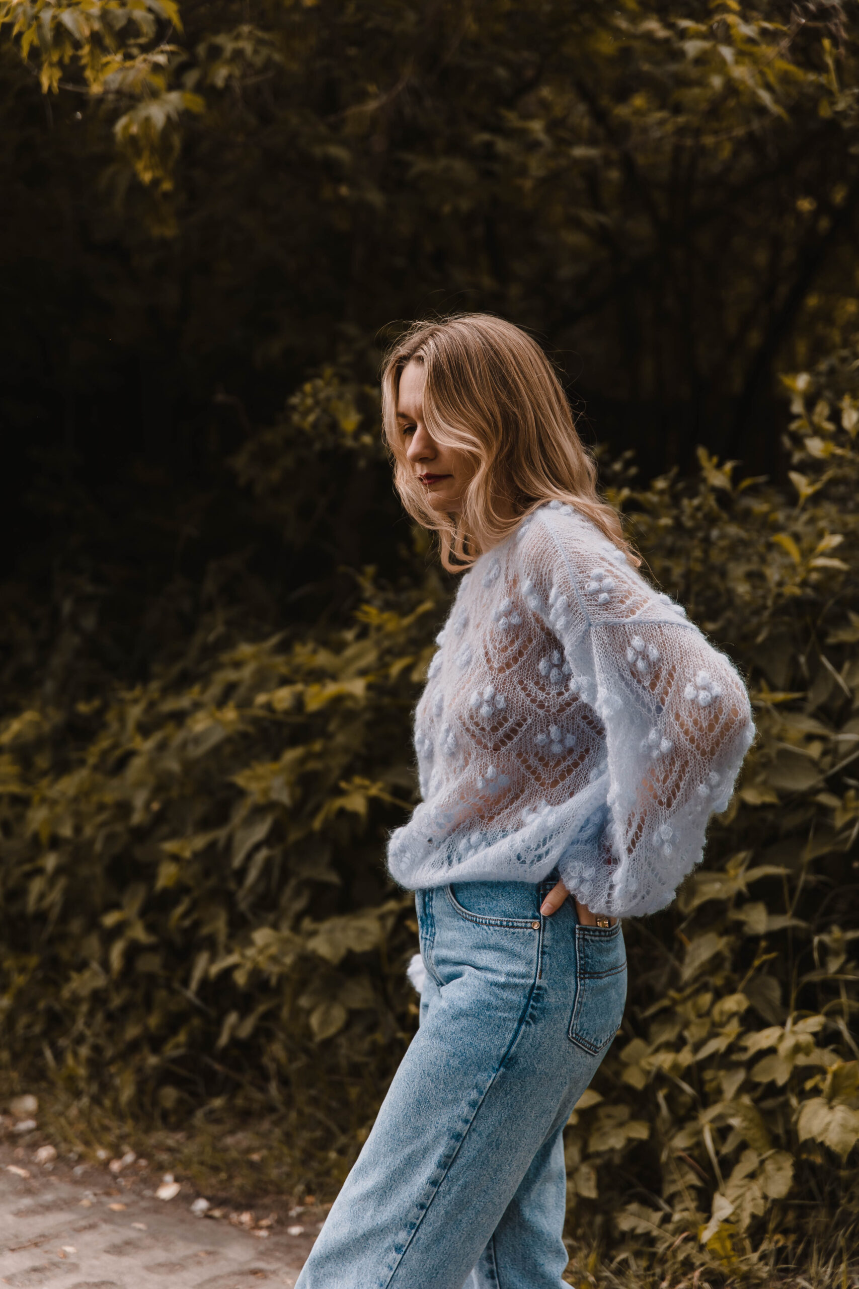 Zanurz się w miękkości lodowego błękitu. Ten sweter to prawdziwa perełka wśród dzianin — delikatny jak poranna mgła, a zarazem wyrazisty dzięki trójwymiarowym zdobieniom przypominającym kwiatowe pąki. Ręcznie wykonane detale i lekko bufiasty rękaw tworzą subtelną grę światła i cienia, dodając całej stylizacji lekkości i finezji. Noś go wtedy, gdy chcesz, by komfort szedł w parze z niebanalnym stylem. Lżejsza wersja swetra Ice Cloud Heavy 🙂