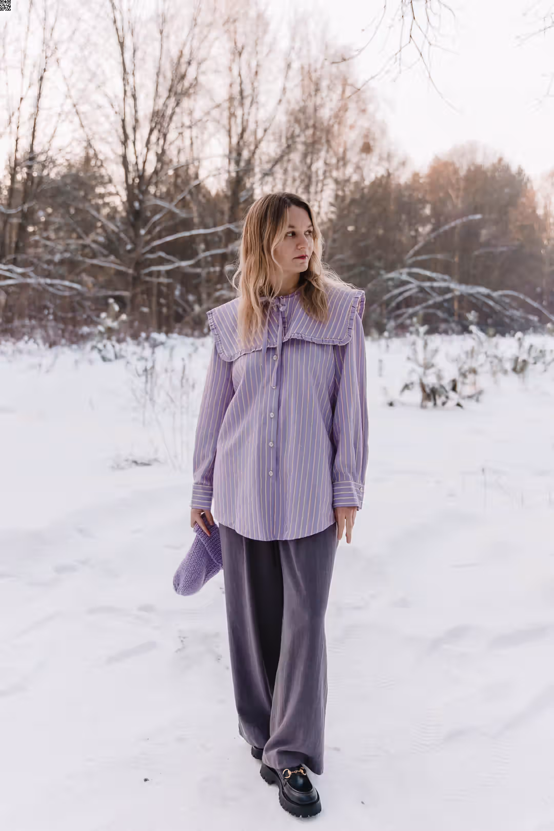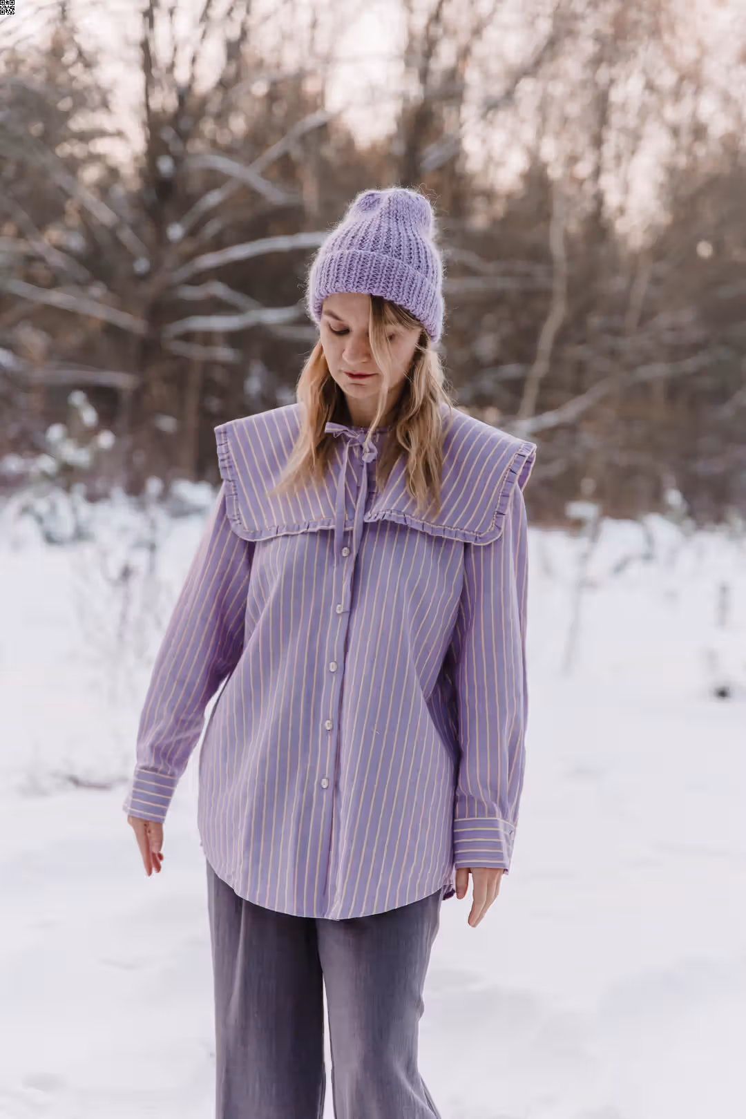 Iris Shirt- fioletowa koszula z ozdobnym kołnierzykiem