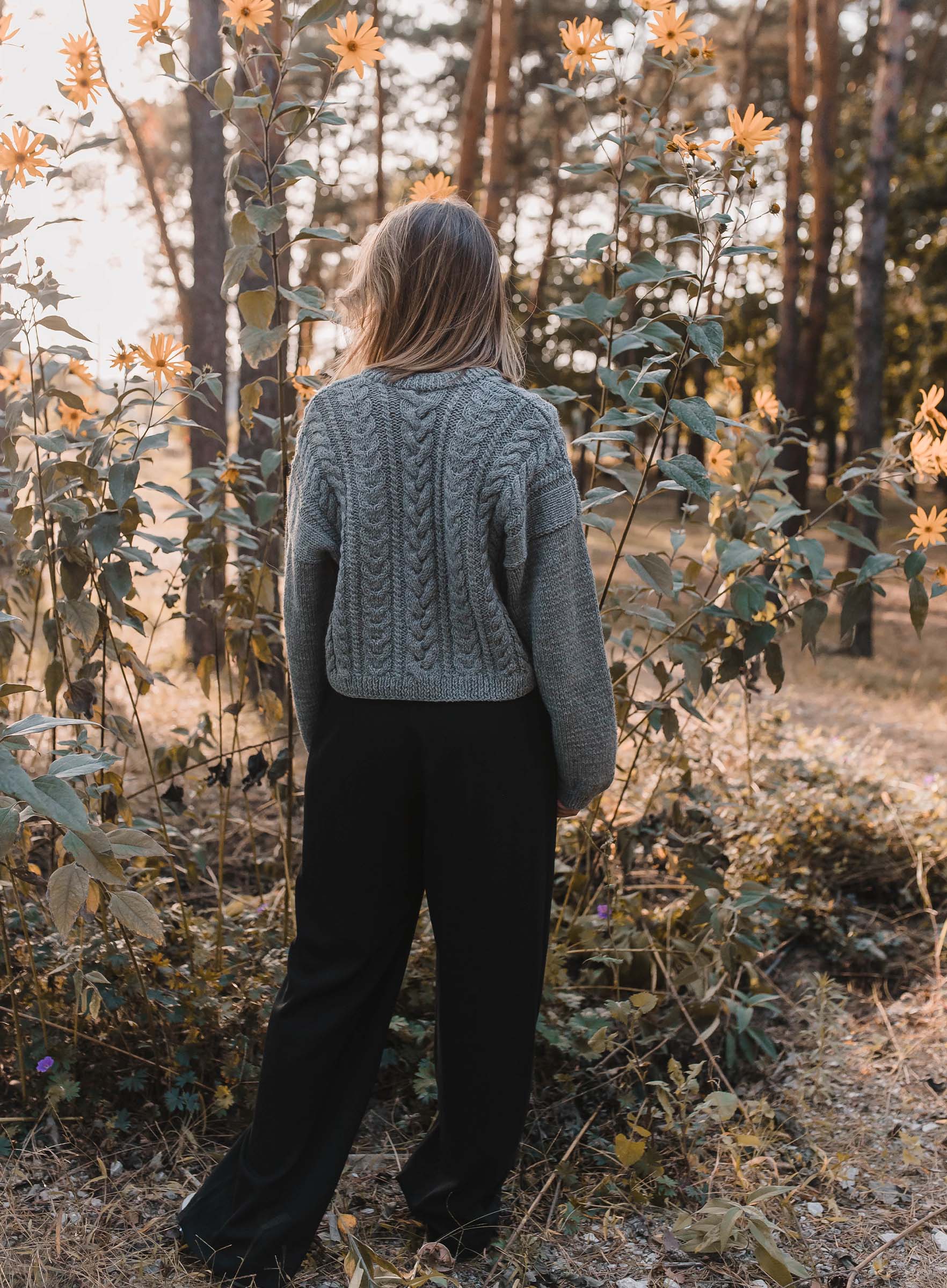 Każdy sweter wykonywany jest ręcznie, dlatego podane wymiary są orientacyjne i mogą się nieznacznie różnić. Należy przyjąć margines +- 3 cm.