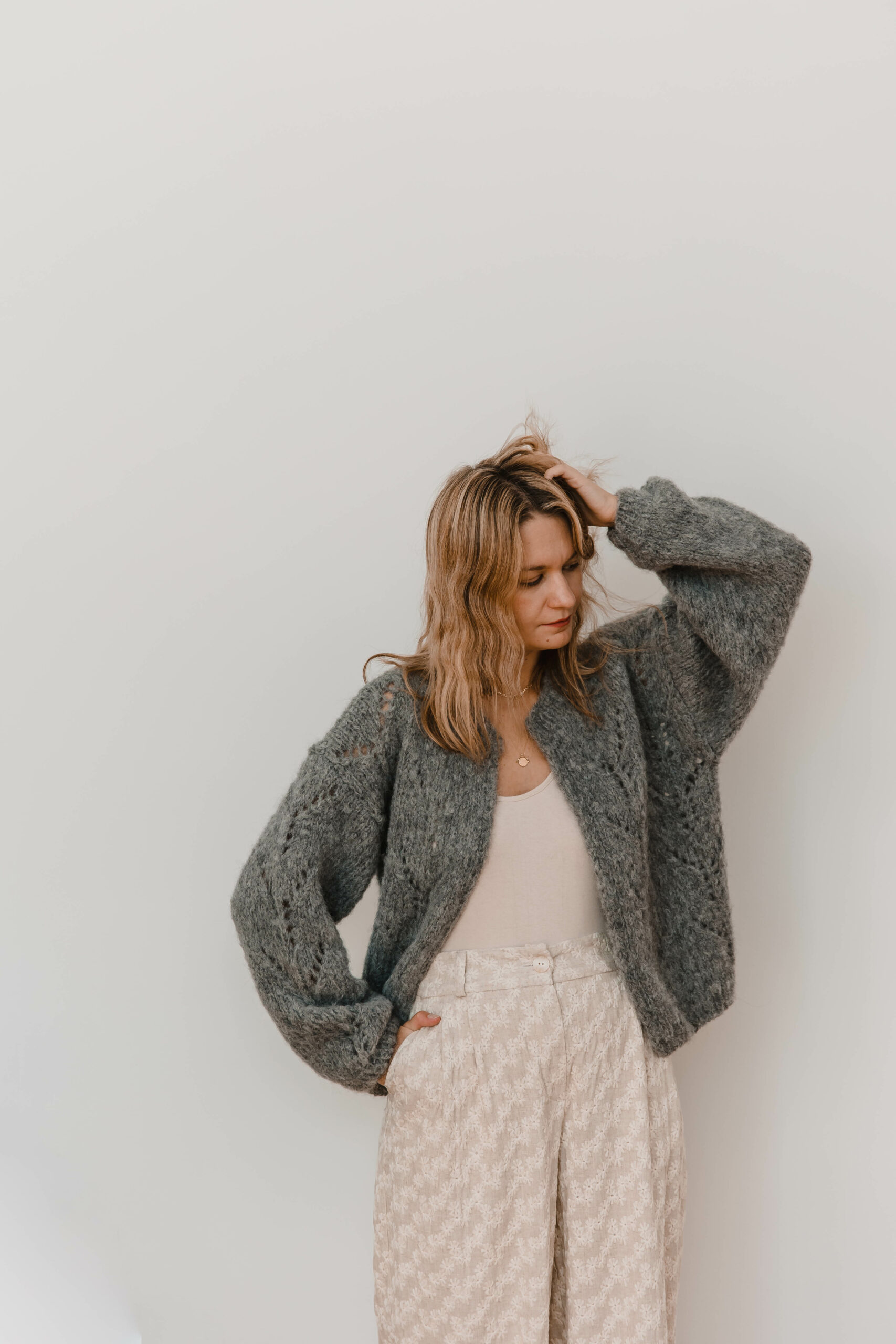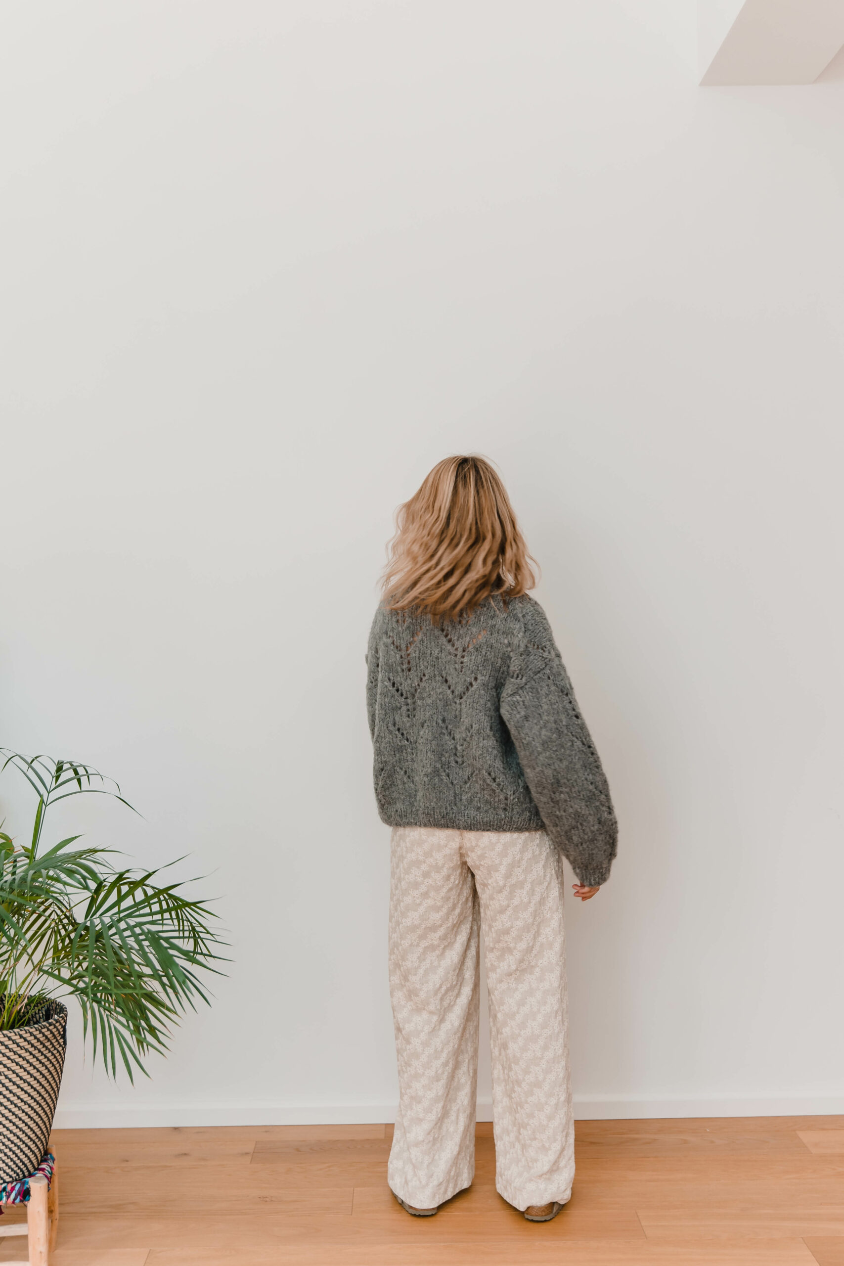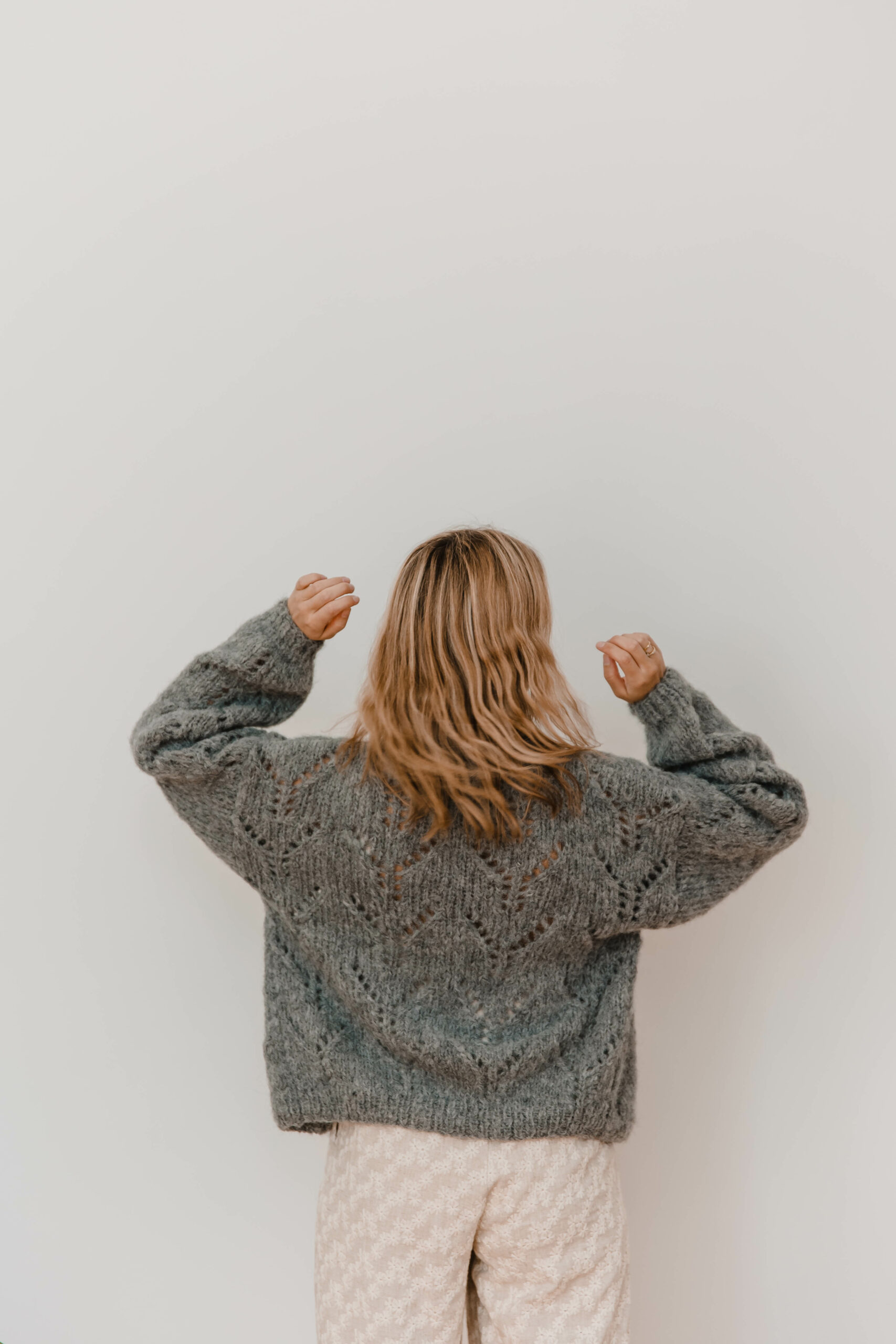 Miękki i lekki jak chmurka, idealny na każdą okazję. Delikatny ażurowy wzór zdobiący cały sweter dodaje uroku, a szary kolor pasuje do wszystkiego. Czy Ty też uważasz, że szarość jest absolutnie uniwersalna?