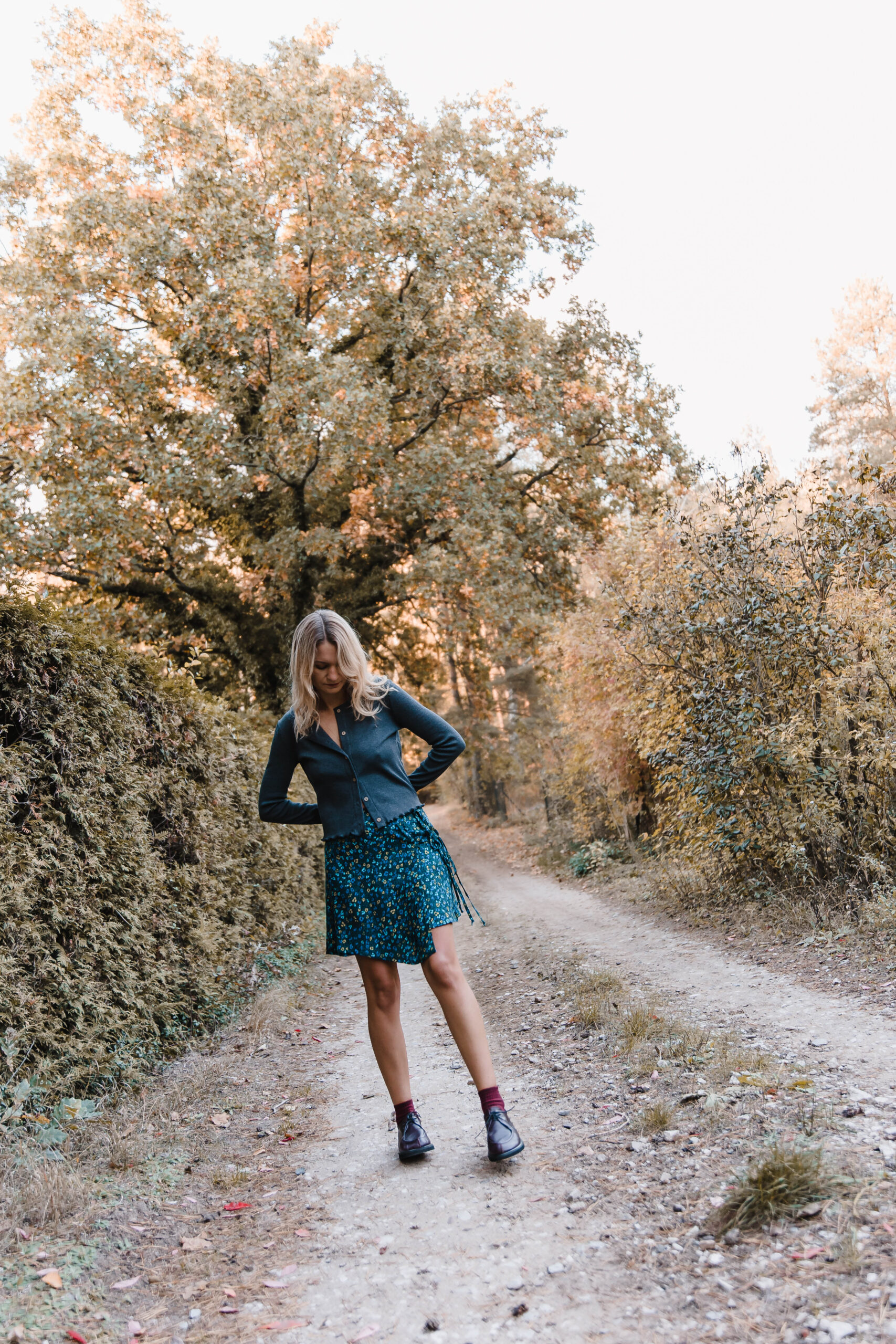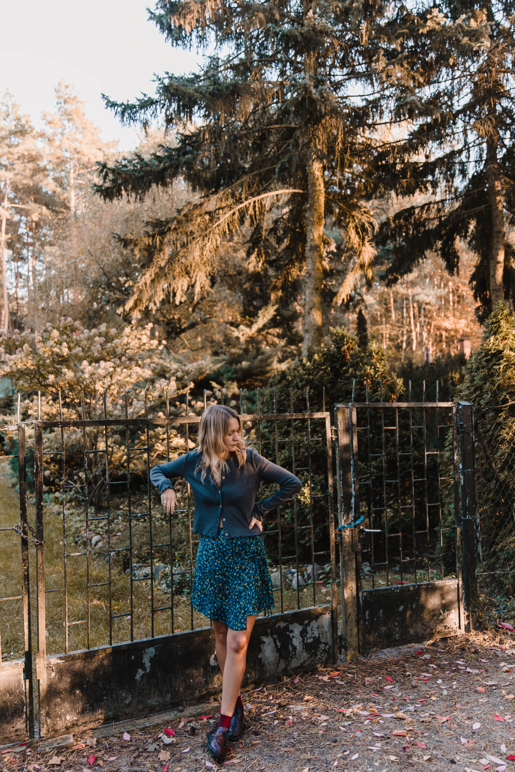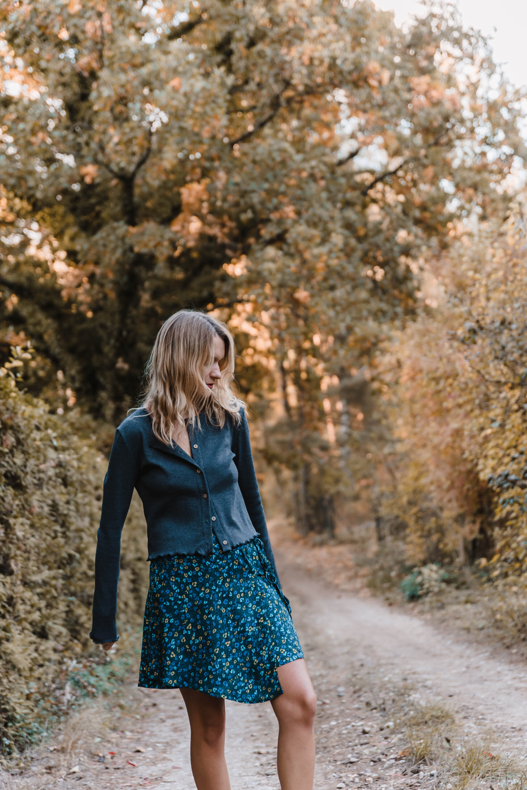Ta spódnica zachwyca delikatnością i subtelnym wdziękiem, idealnie wpisując się w styl romantyczno-casualowy. Wykonana z lekkiego materiału, zdobiona drobnym kwiatowym wzorem na ciemnym tle, przyciąga wzrok swoją wyjątkowością. Jej asymetryczny krój nadaje całości dynamiki i lekkości, subtelnie eksponując nogi. Spódnica posiada fantazyjne wiązanie z boku, które dodaje jej charakteru i stanowi niebanalny detal. Dzięki bocznemu zapięciu na suwak, jest łatwa do zakładania i wygodna w noszeniu. Świetnie komponuje się z prostymi bluzkami i kardiganami.