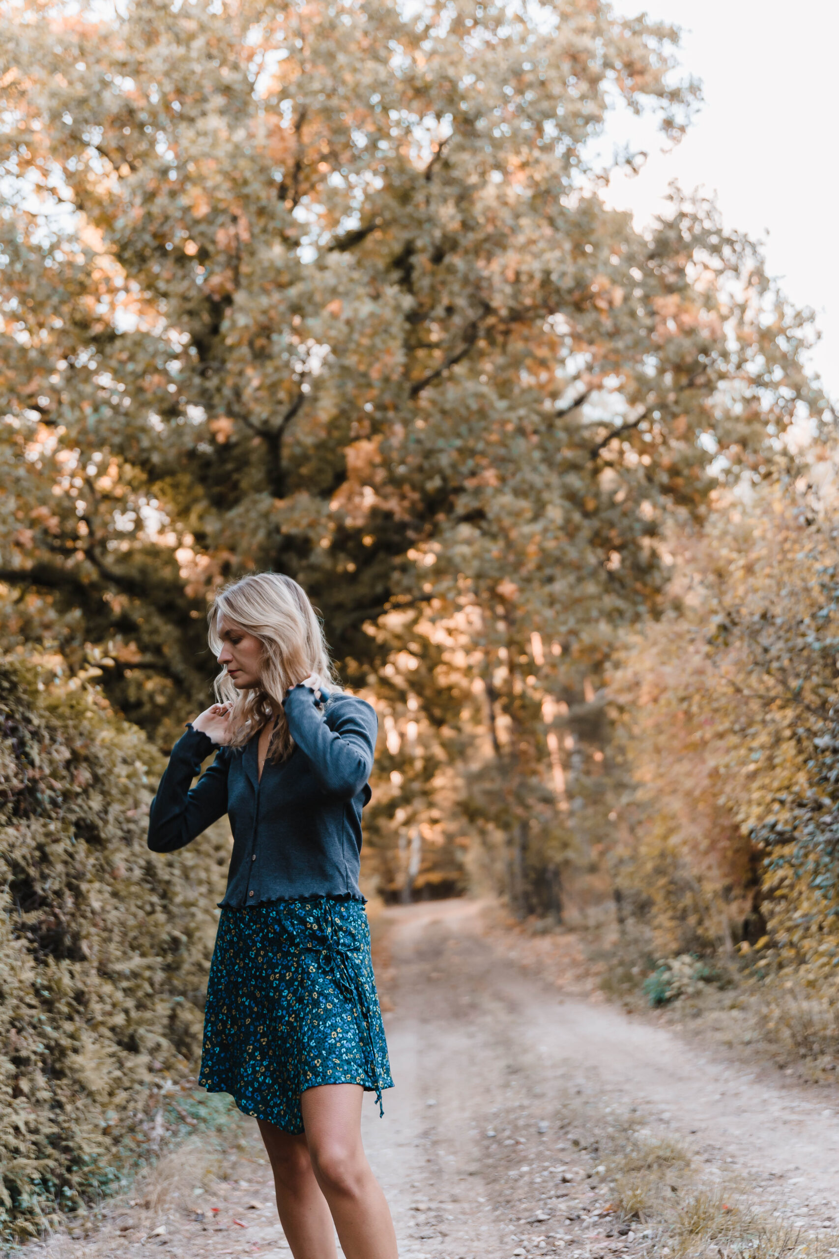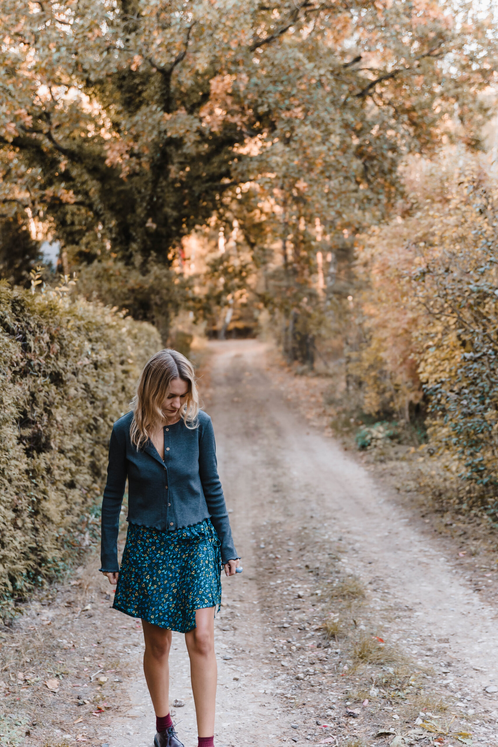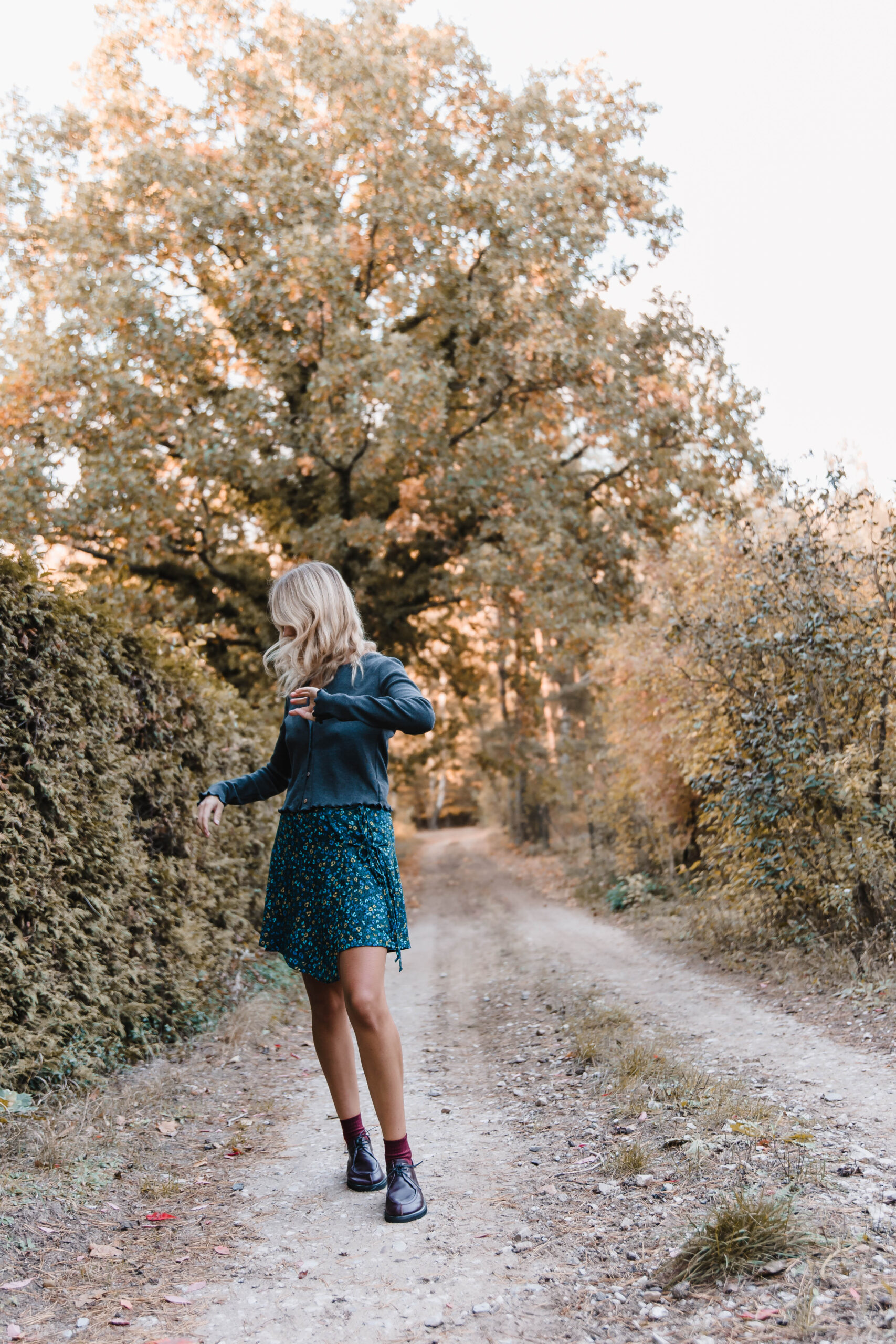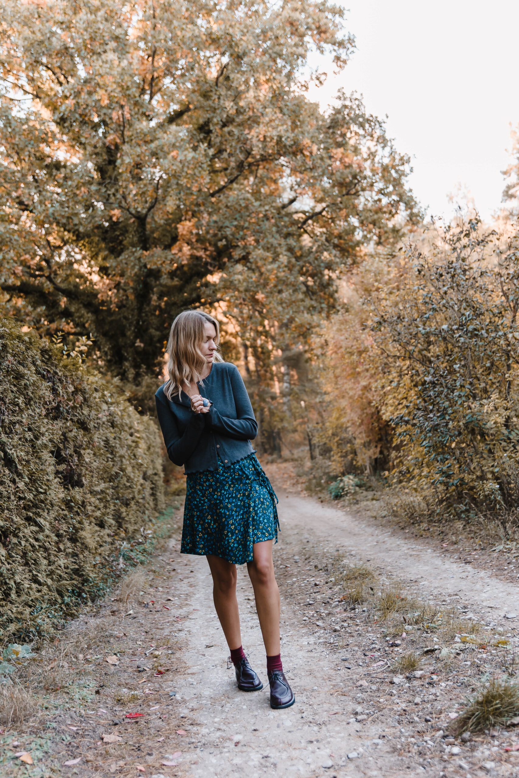 Ta spódnica zachwyca delikatnością i subtelnym wdziękiem, idealnie wpisując się w styl romantyczno-casualowy. Wykonana z lekkiego materiału, zdobiona drobnym kwiatowym wzorem na ciemnym tle, przyciąga wzrok swoją wyjątkowością. Jej asymetryczny krój nadaje całości dynamiki i lekkości, subtelnie eksponując nogi. Spódnica posiada fantazyjne wiązanie z boku, które dodaje jej charakteru i stanowi niebanalny detal. Dzięki bocznemu zapięciu na suwak, jest łatwa do zakładania i wygodna w noszeniu. Świetnie komponuje się z prostymi bluzkami i kardiganami.