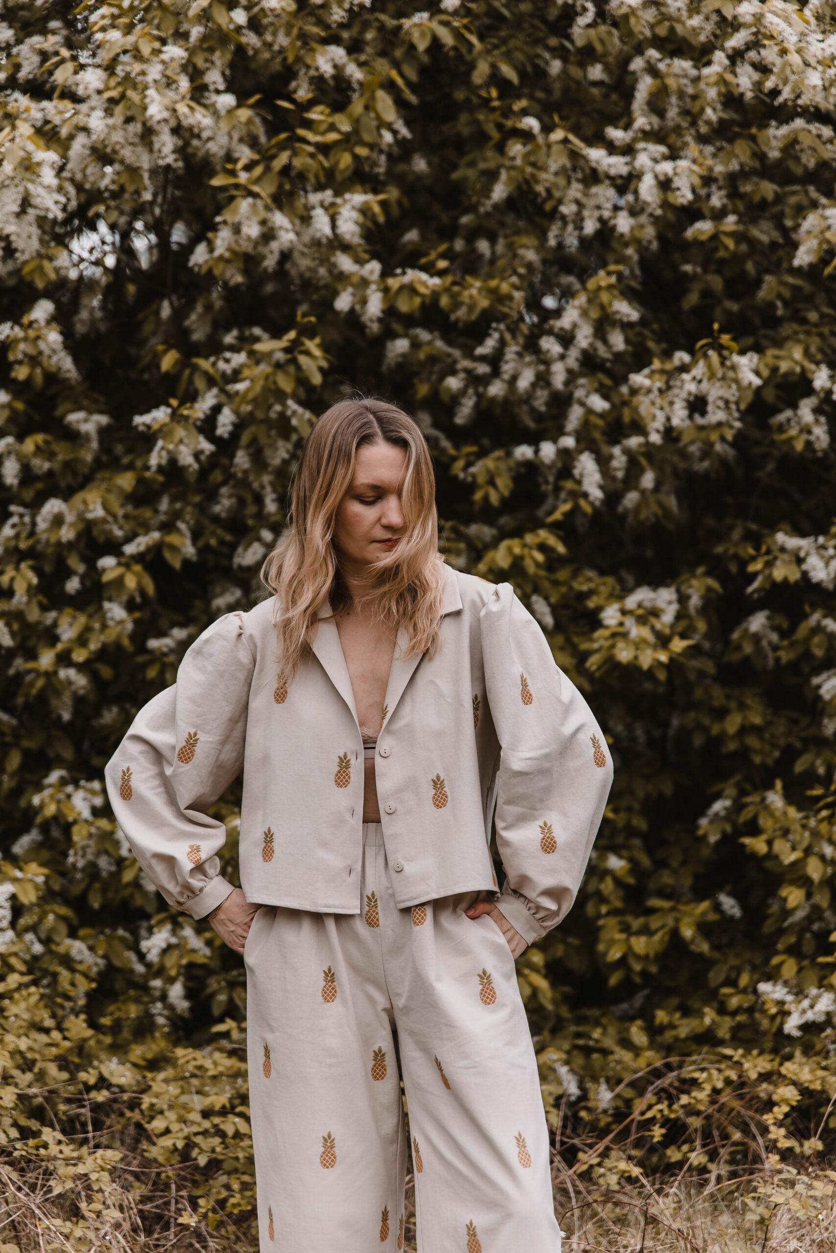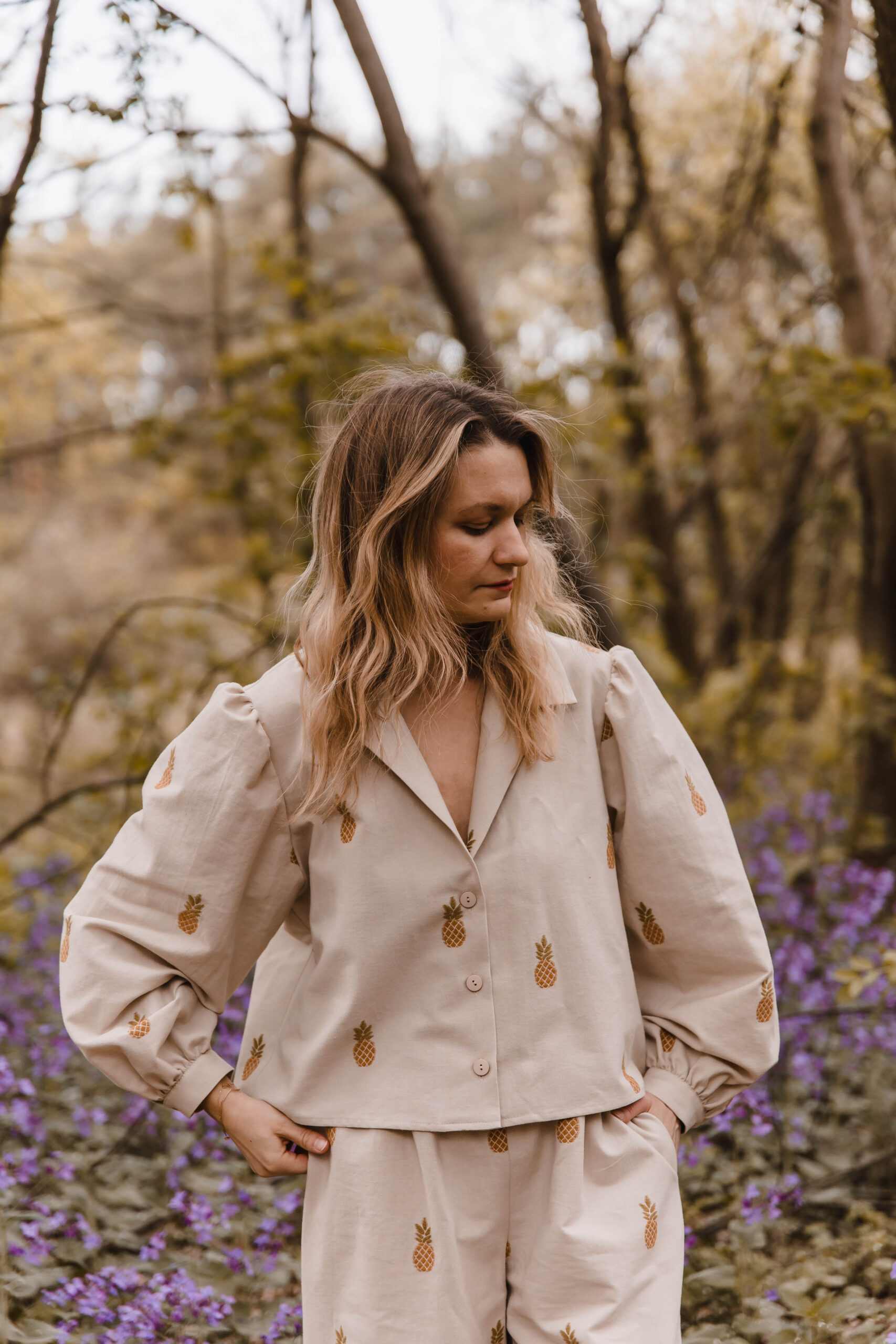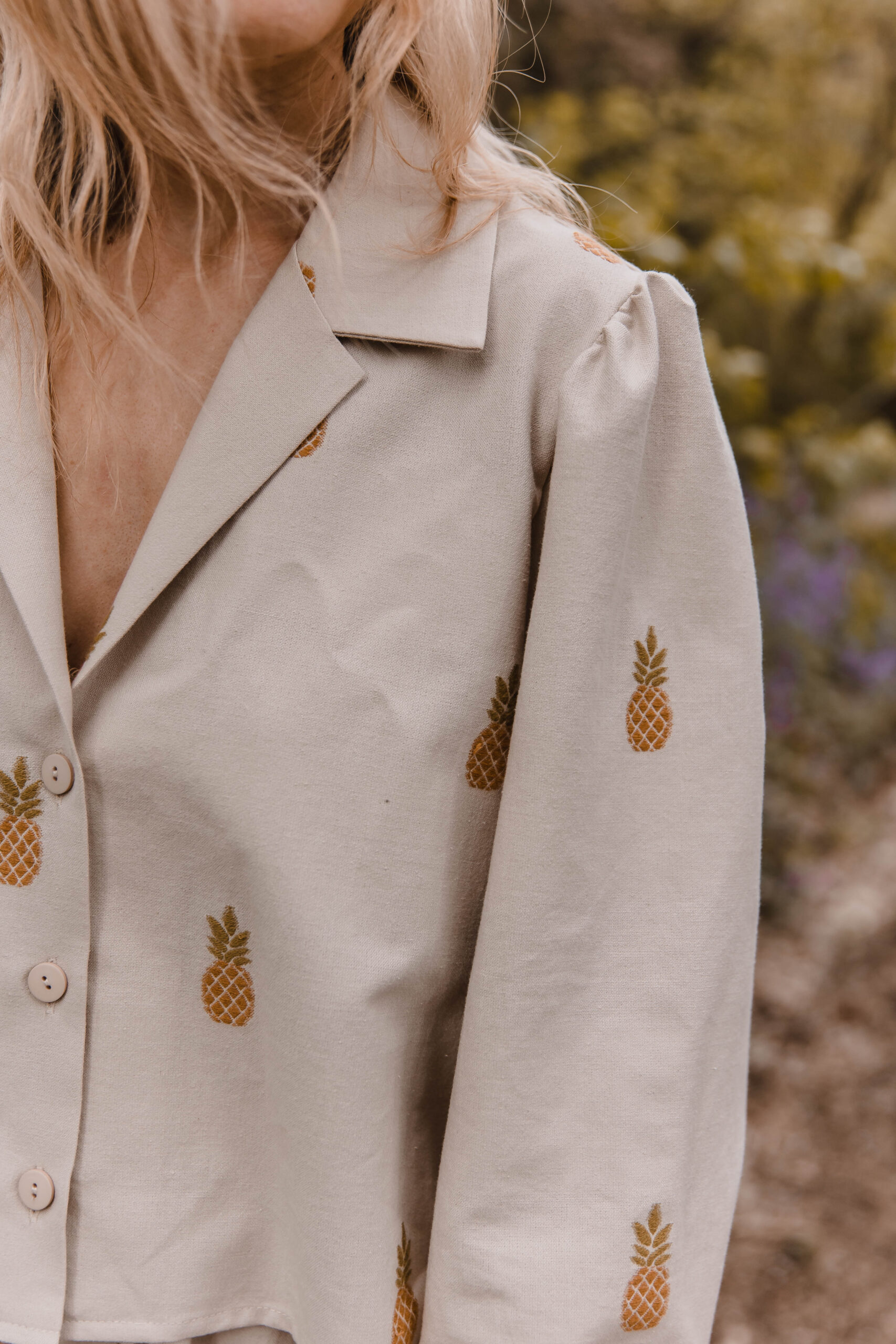 Owocowy akcent, który robi różnicę. Koszula z klasycznym kołnierzykiem i haftowanymi ananasami to idealne połączenie luzu i wygody. Uszyta z miękkiej tkaniny – świetnie sprawdzi się zarówno w codziennych, jak i letnich stylizacjach. Hafty dodają jej niebanalnego charakteru, a wygodny krój zapewnia swobodę ruchów.Dla pełnego efektu – połącz ją ze spodniami z falbanką od kompletu i stwórz zestaw, który przyciąga spojrzenia, ale nie traci na wygodzie 🍍