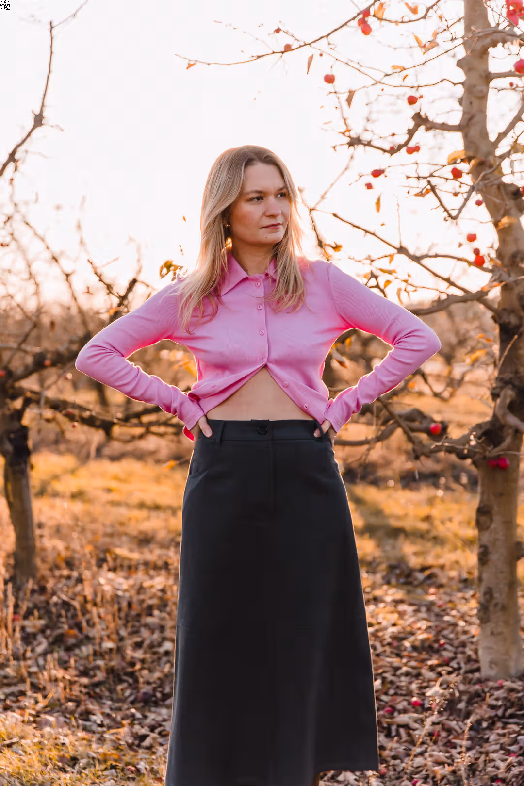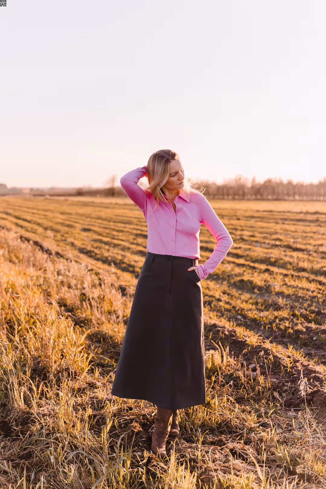 Spódnica dzielona na cztery części, zaprojektowana tak, by podkreślać linię sylwetki i zapewnić pełen komfort noszenia. Dzięki szlufkom na pasek i praktycznym kieszeniom jest wyjątkowo funkcjonalna. Świetnie sprawdza się na co dzień — ale bez problemu założysz ją też na bardziej eleganckie okazje.