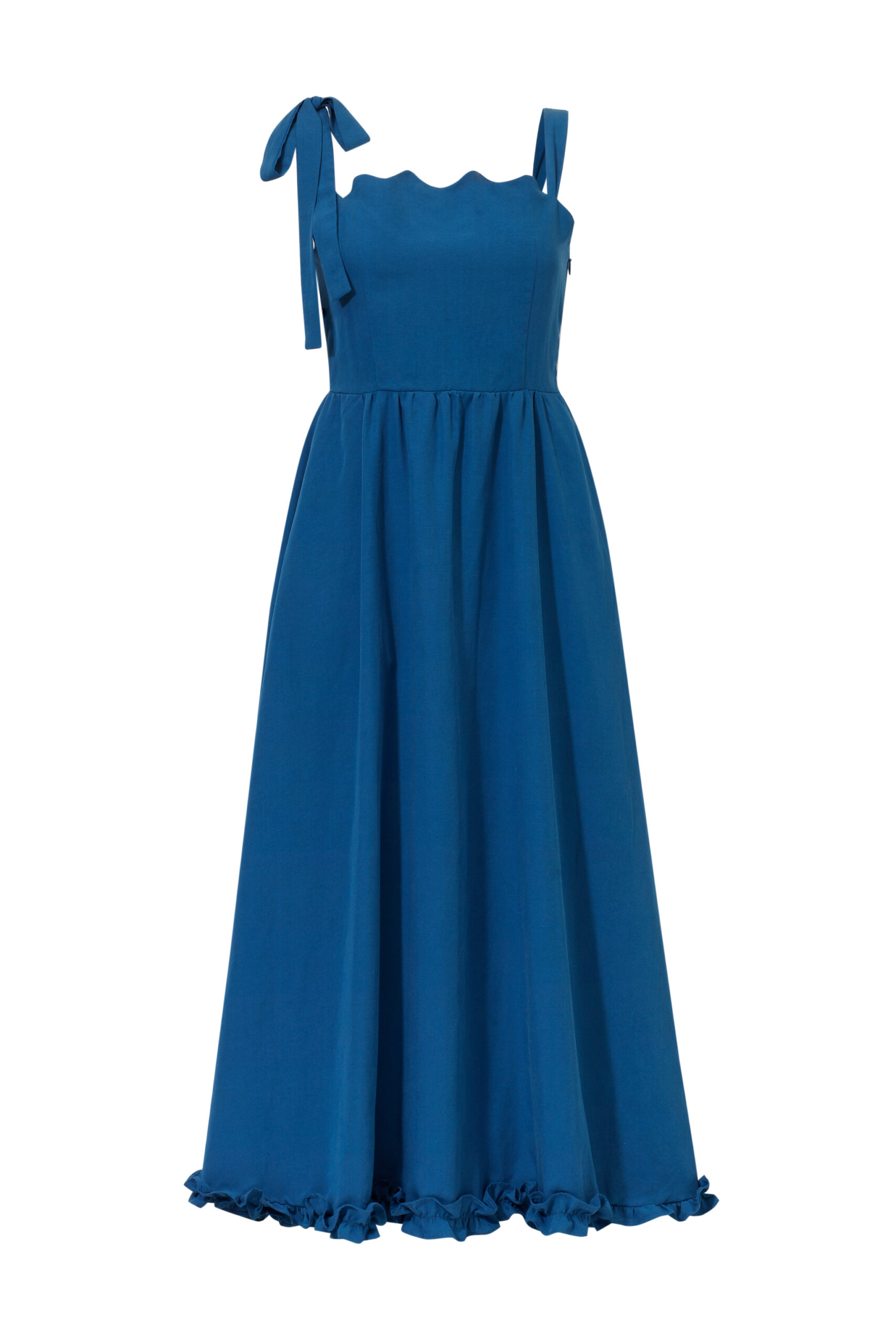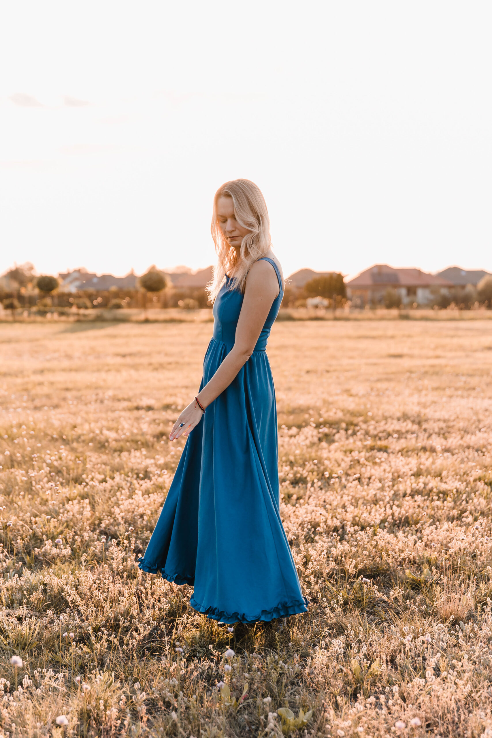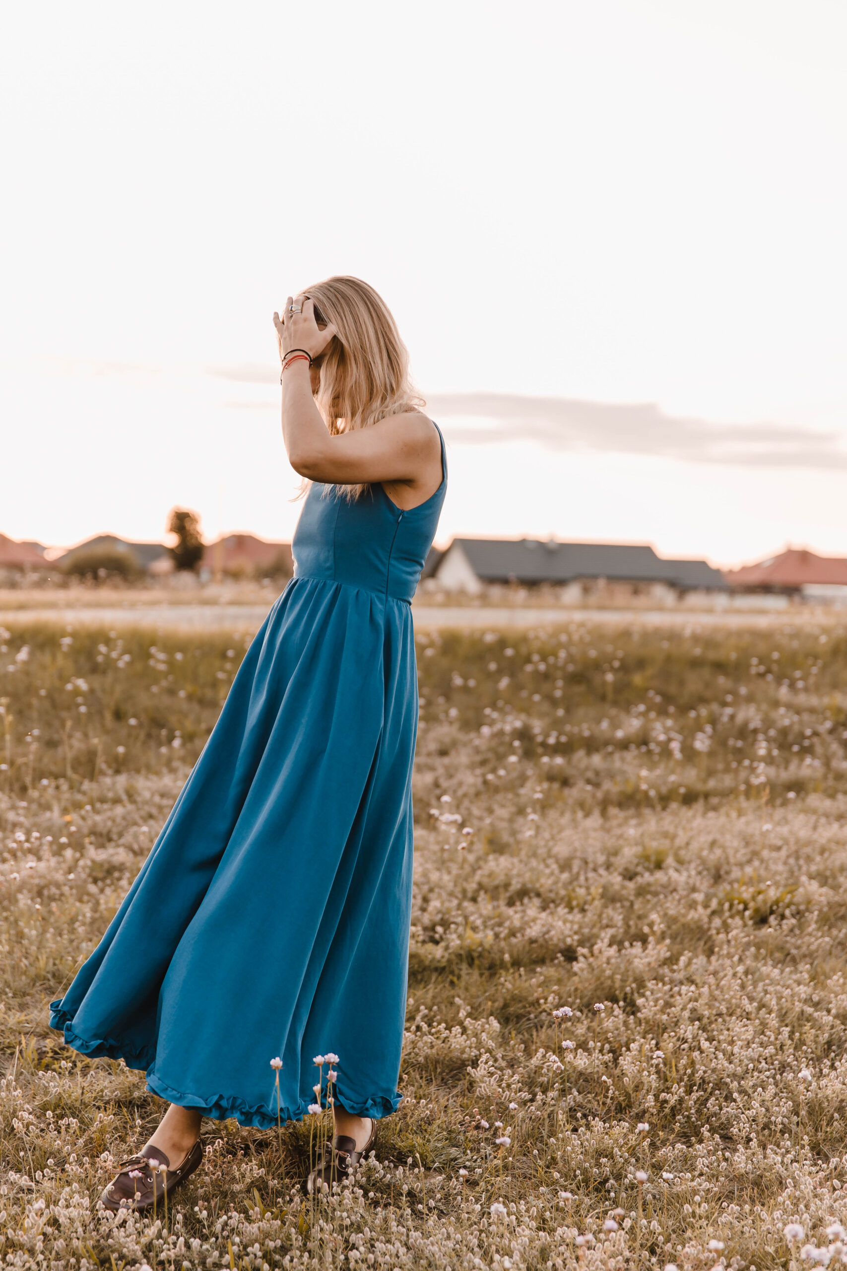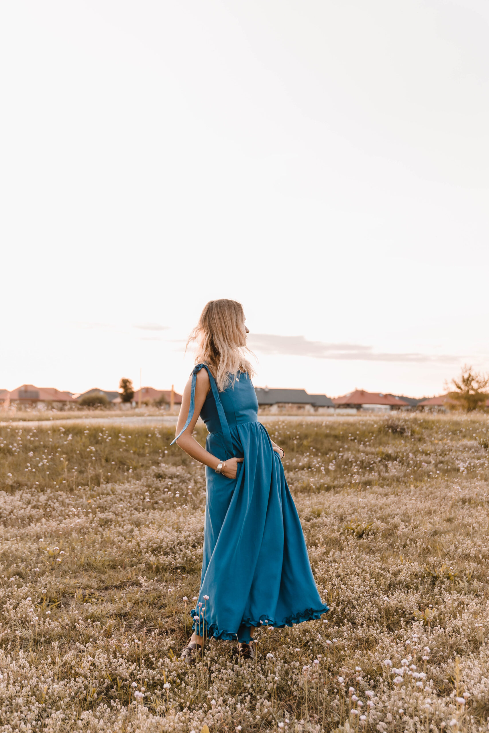 Sukienka, która żyje w rytmie lata. Miękko otula sylwetkę, a falbanka u dołu wiruje przy każdym kroku. Dekolt zdobi delikatna fala, nadając jej romantyczny ton. Jedno ramiączko z ozdobnym wiązaniem dodaje dziewczęcego uroku, drugie – klasyczne – trzyma fason. A w ukrytych kieszeniach zmieścisz wszystko, co chcesz mieć pod ręką. Idealna na nadmorskie spacery, garden party czy spontaniczne letnie wieczory, kiedy liczy się swoboda, wygoda i efekt „wow”.