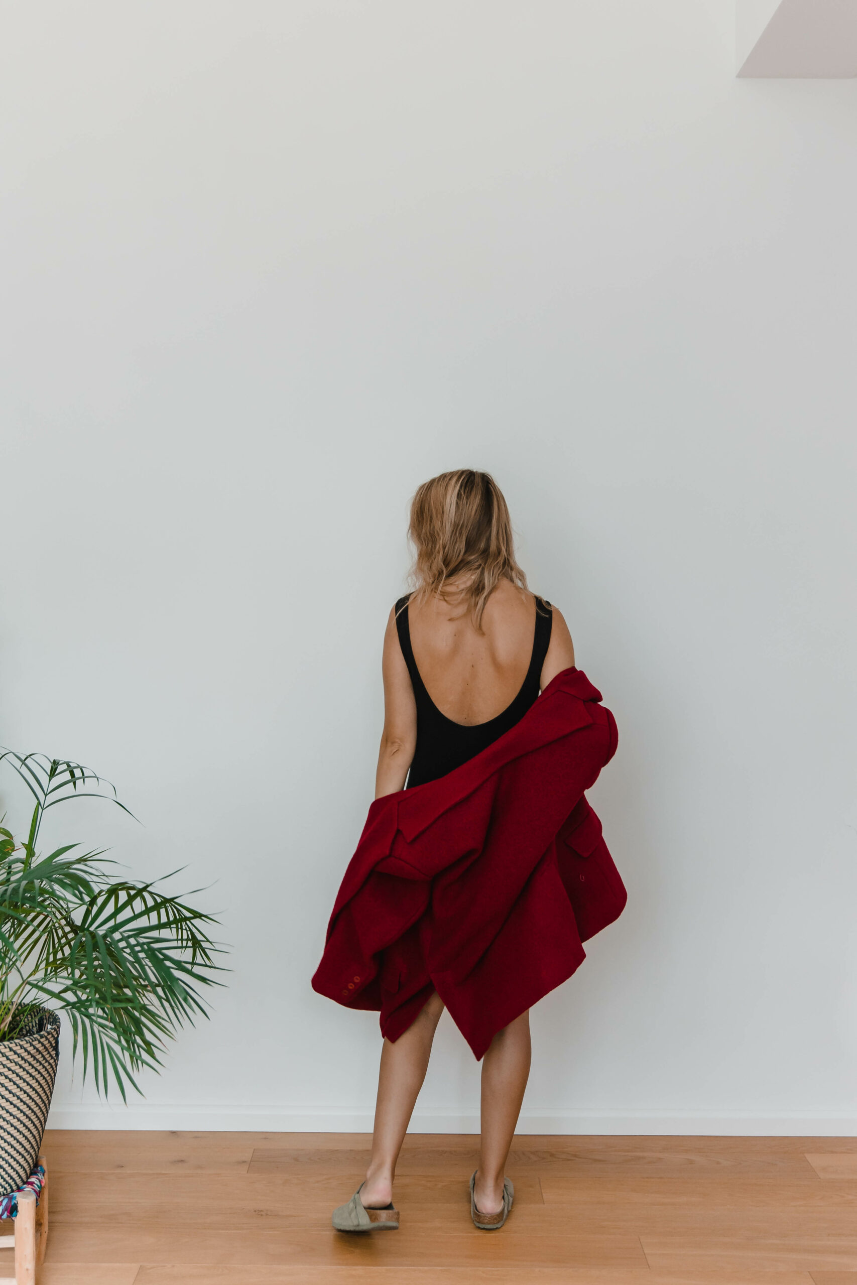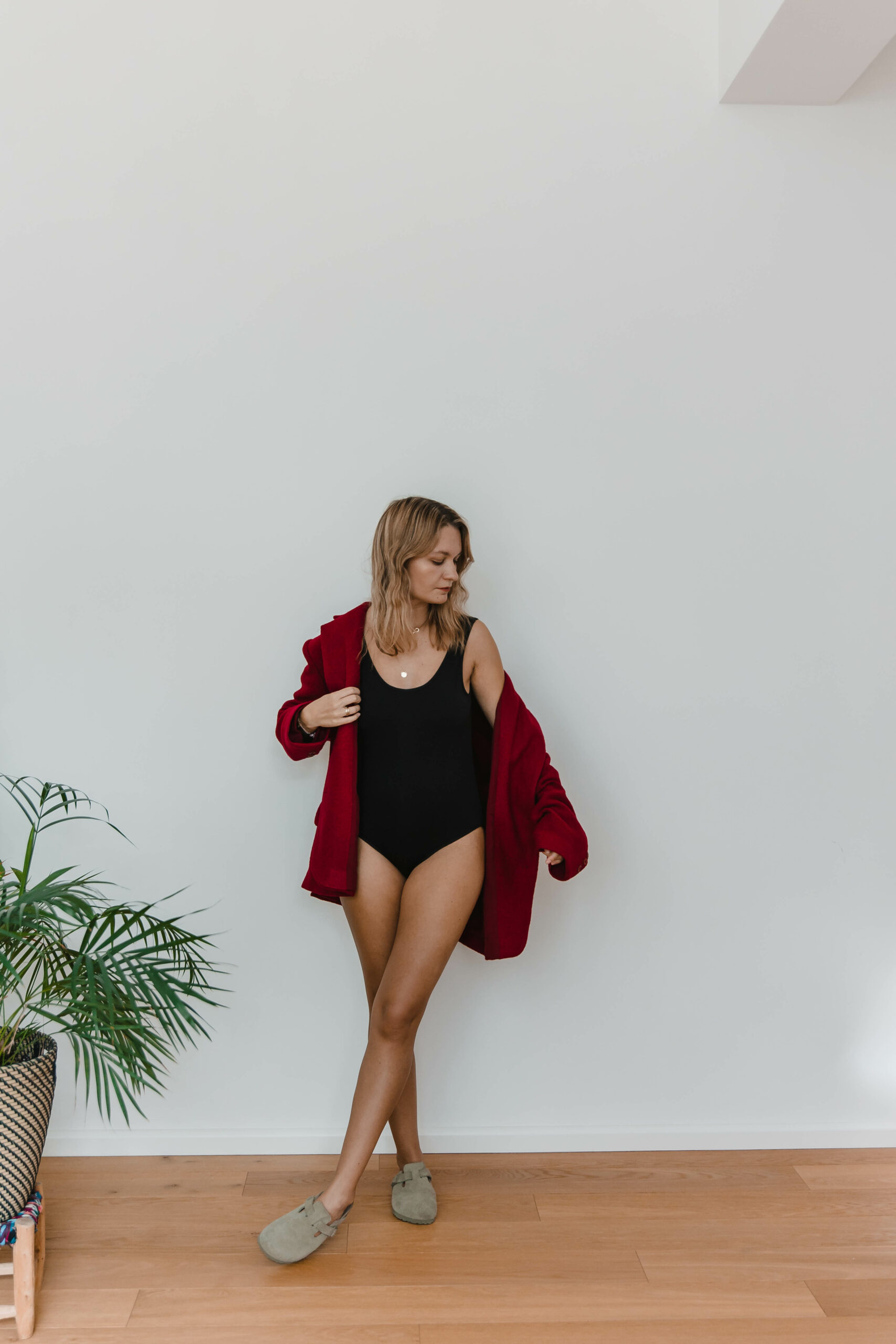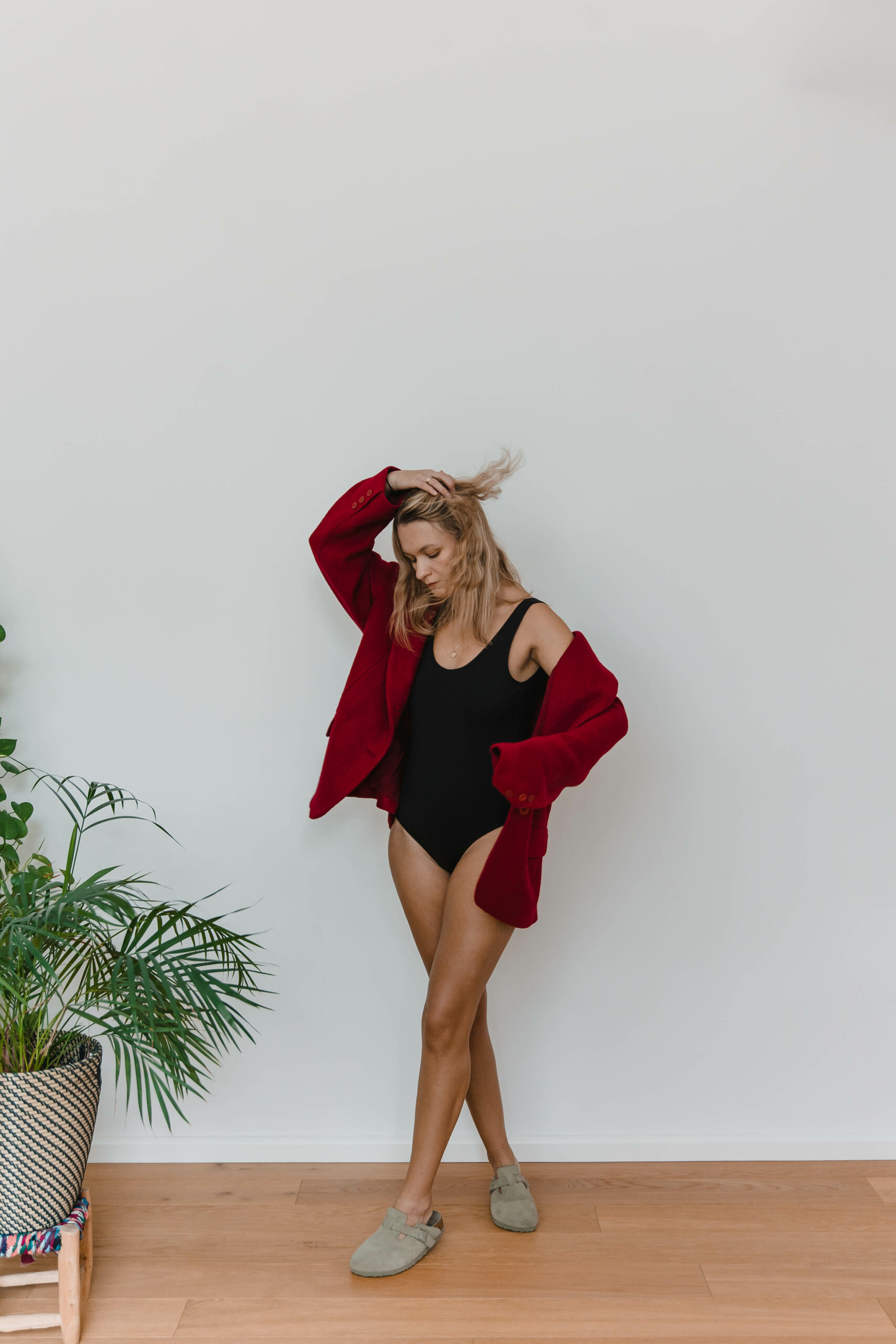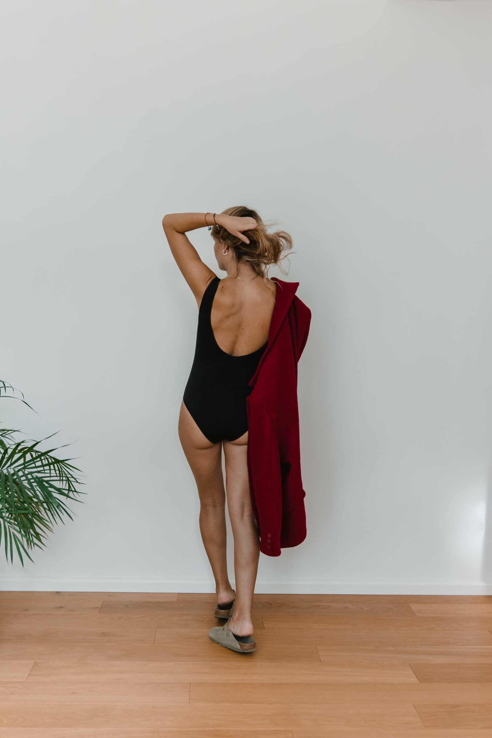 Wykonane z miękkiej tkaniny body doskonale dopasowuje się do sylwetki podkreślając jej atuty. Głęboki dekolt na plecach dodaje odważnego i seksownego charakteru. Noś je z ulubionymi spódnicami lub dżinsami.