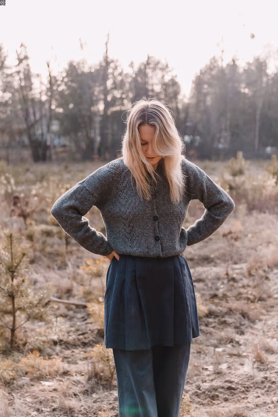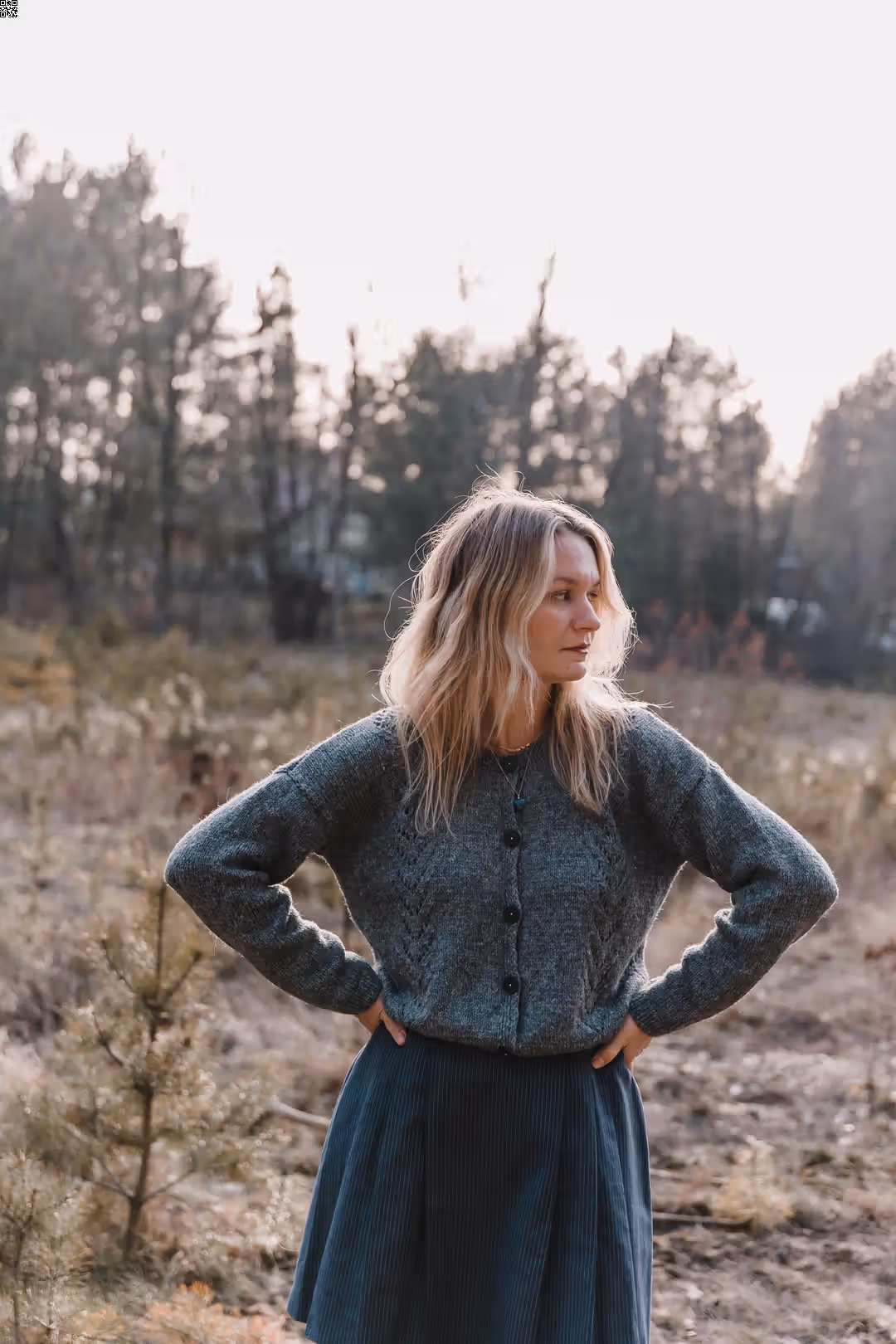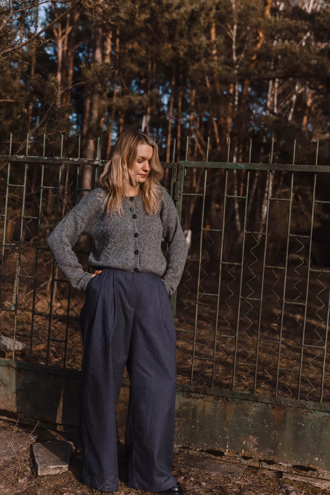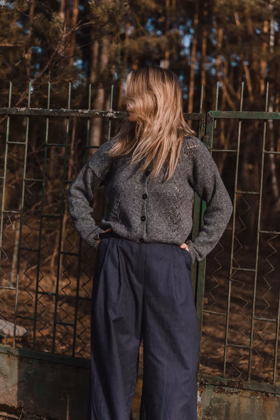 Miękki, spokojny w formie, z subtelnym detalem, który przyciąga uwagę. Ażurowe zdobienia z przodu nadają mu lekkości i delikatnej struktury, tworząc grę światła i cienia. Zapinany na guziki, sprawdzi się zarówno jako sweter noszony solo, jak i jako warstwa narzucona na top czy sukienkę. Swobodny krój pozwala na naturalne ułożenie na sylwetce i komfort noszenia na co dzień. To model, który nie potrzebuje wiele — prosty, ale z charakterem.