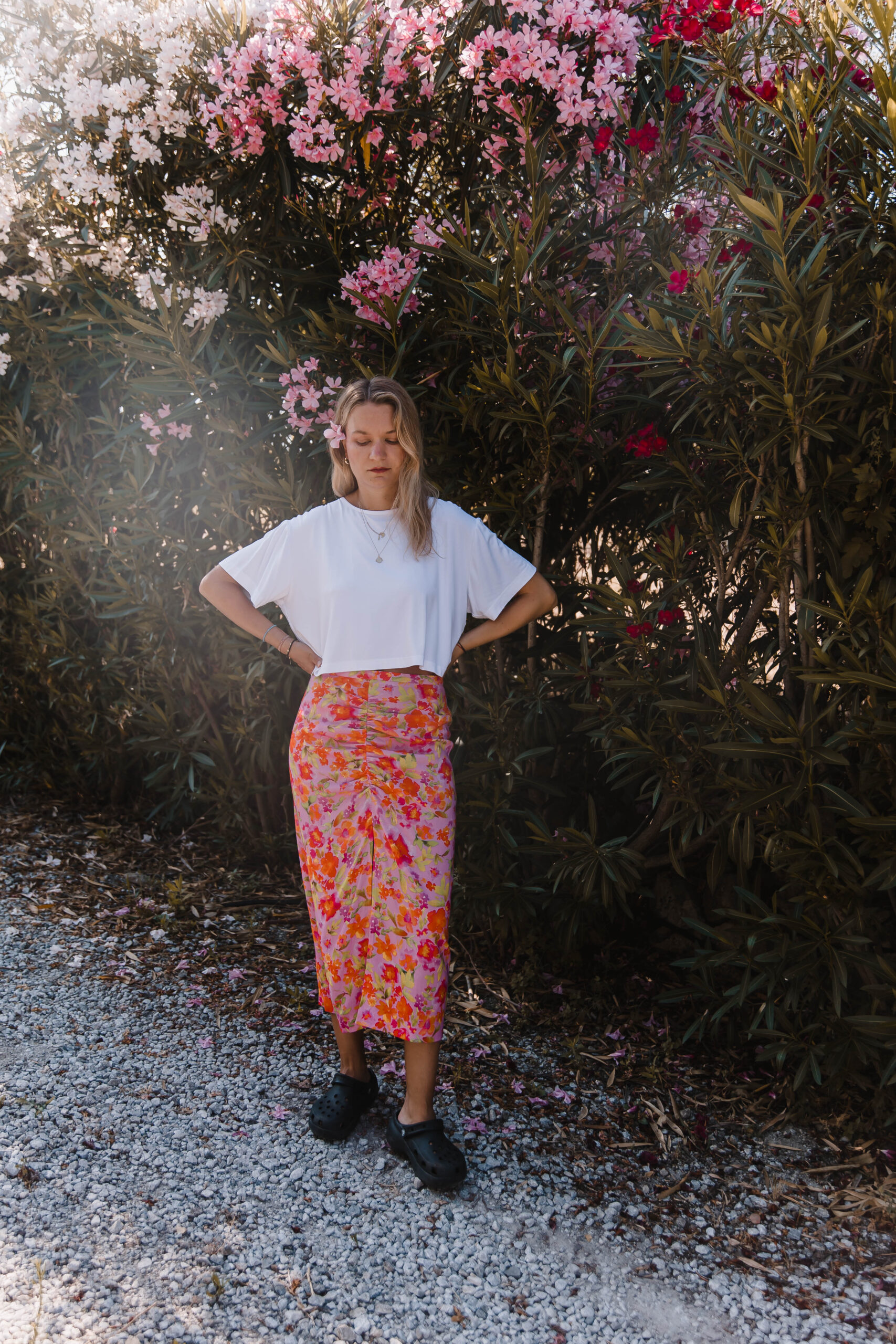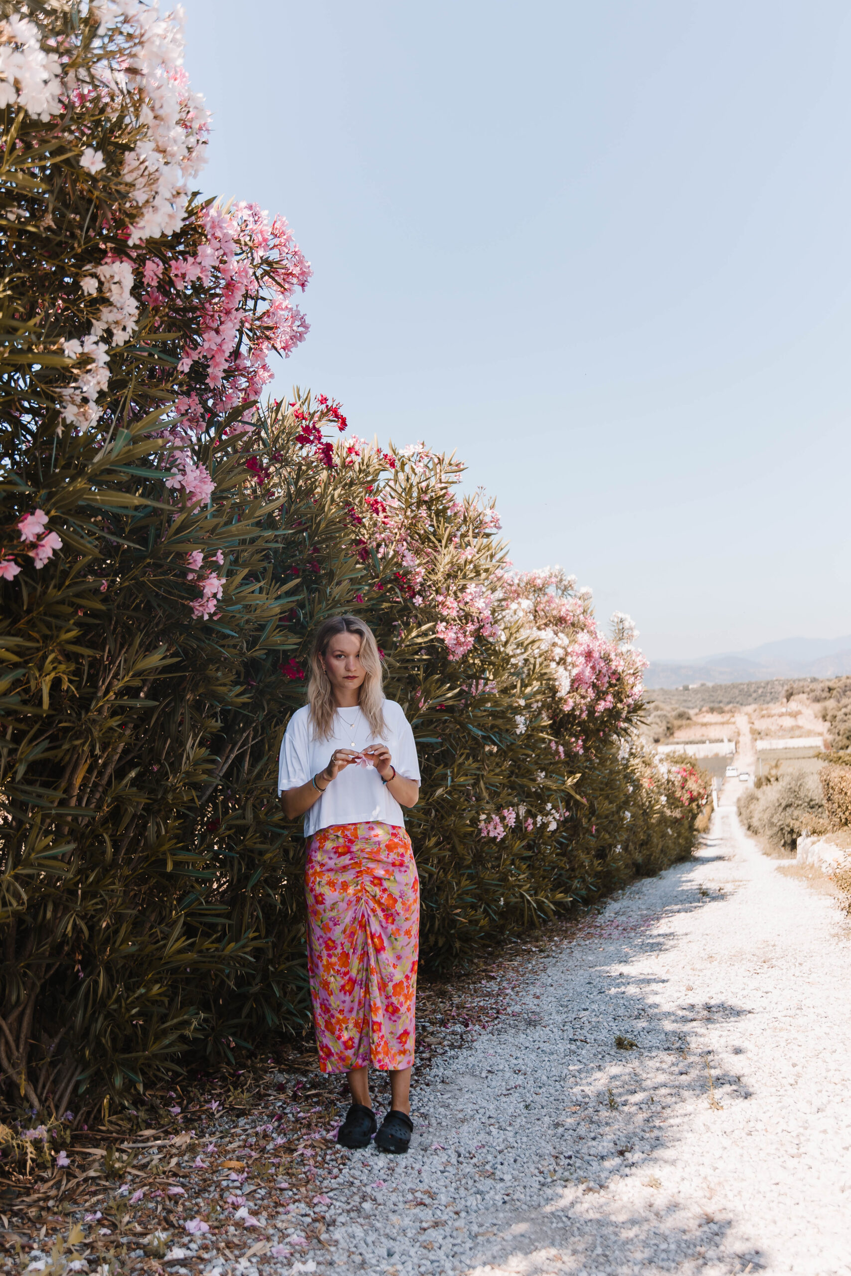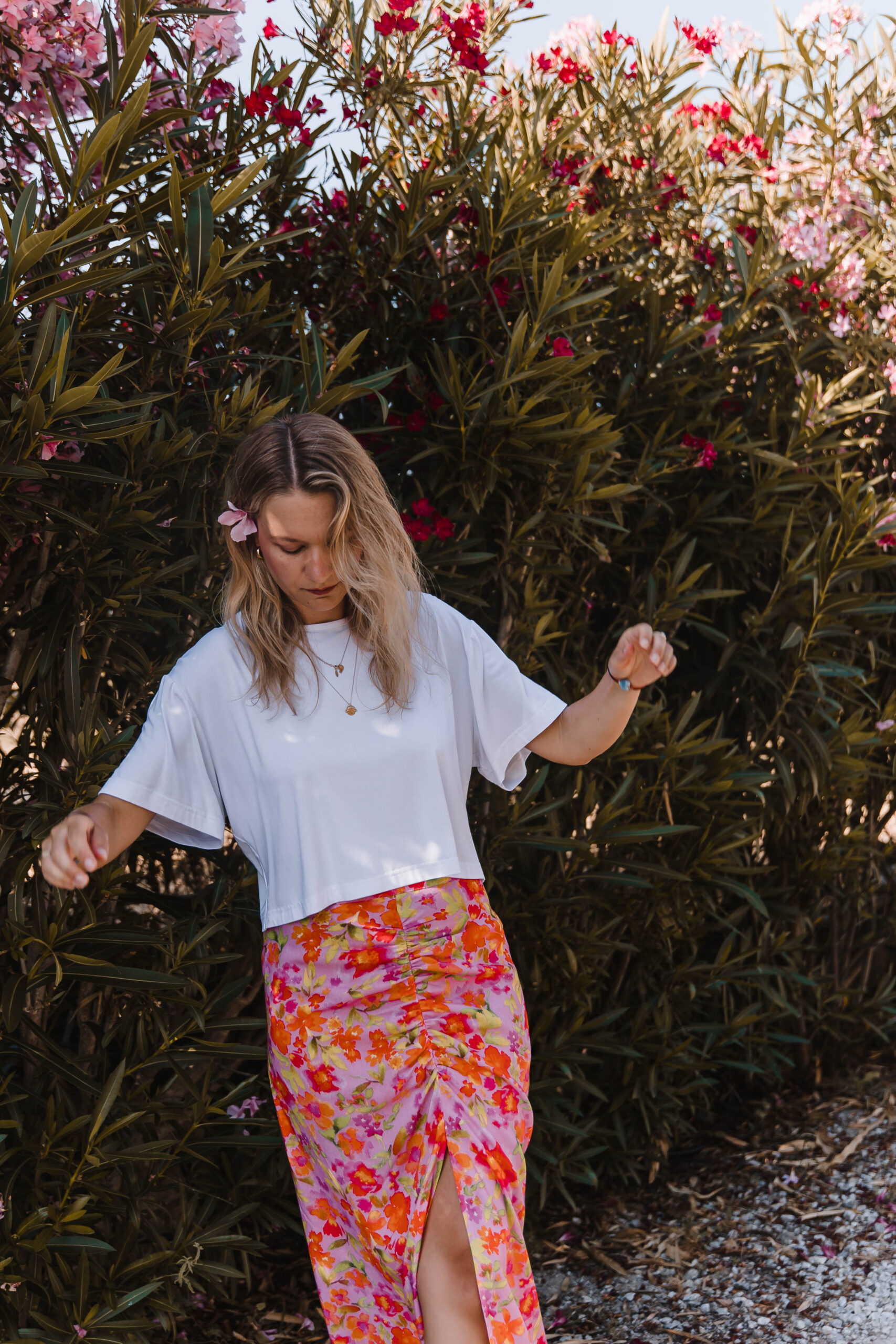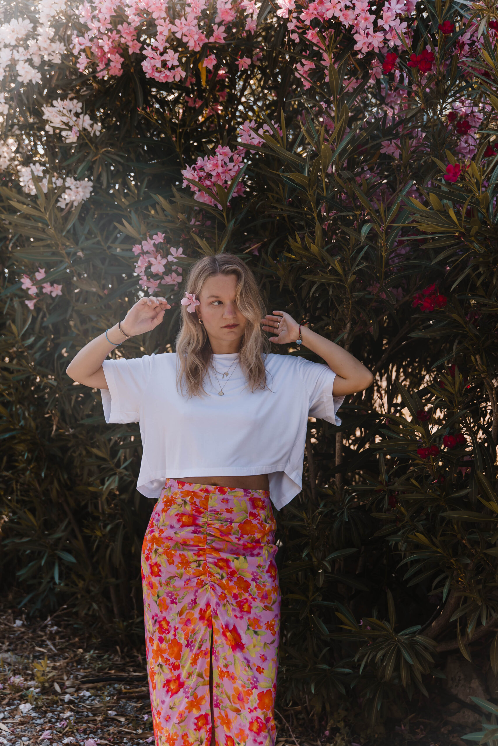 Ten top to definicja letniej beztroski – lekki, przewiewny i z charakterem. Prosty z przodu, zmysłowy z tyłu – dzięki podwójnemu wiązaniu tworzy subtelne wycięcie, które odsłania dokładnie tyle, ile trzeba. Luźny, pudełkowy krój zapewnia pełną swobodę, a delikatna tkanina miękko układa się na ciele, nie przytłaczając sylwetki. Idealny do spódnic, szortów, lnianych spodni – albo zarzucany na kostium kąpielowy po dniu na plaży. To top, który wygląda na niepozorny – ale robi świetne wrażenie, zwłaszcza gdy się odwrócisz.