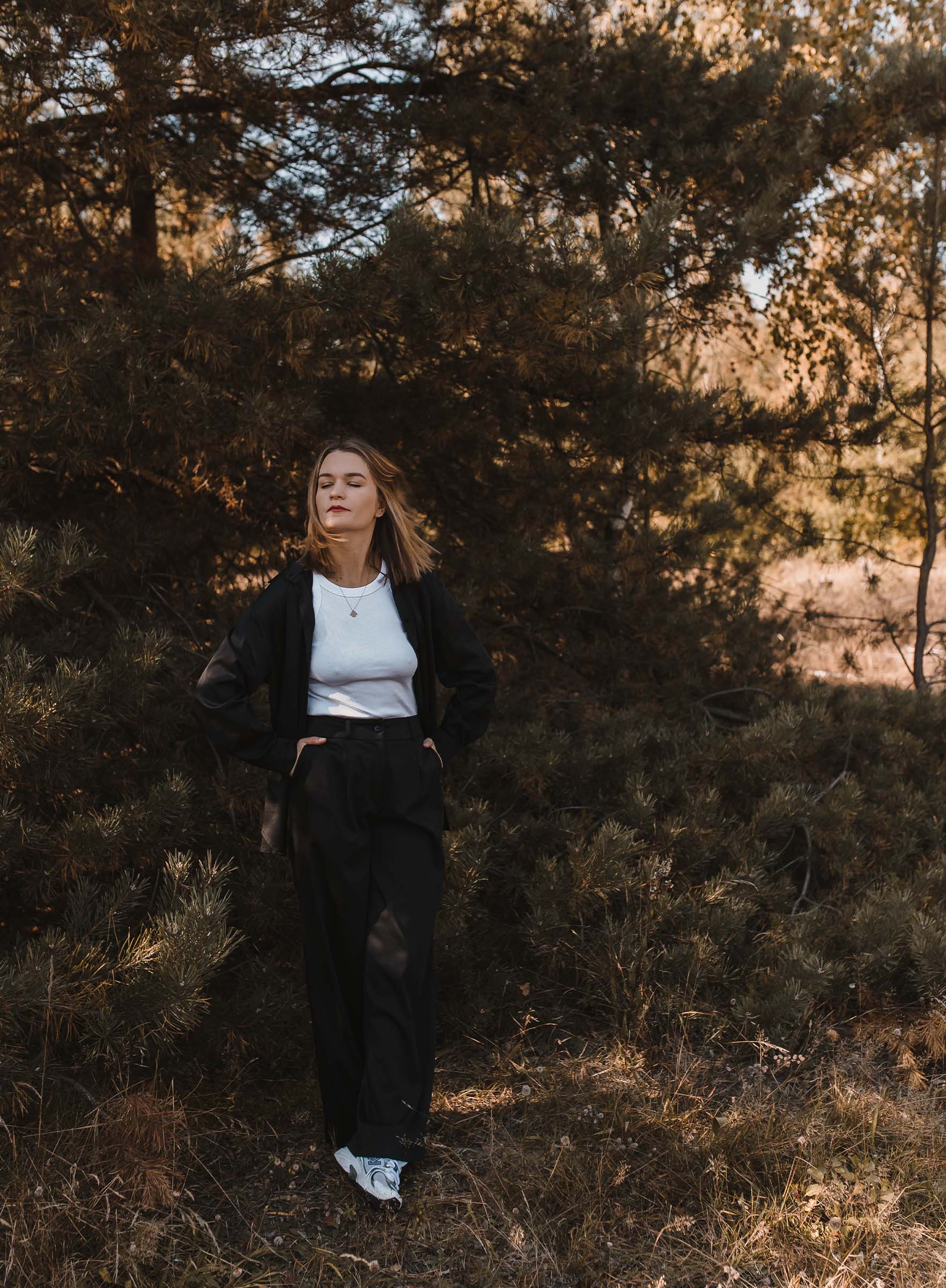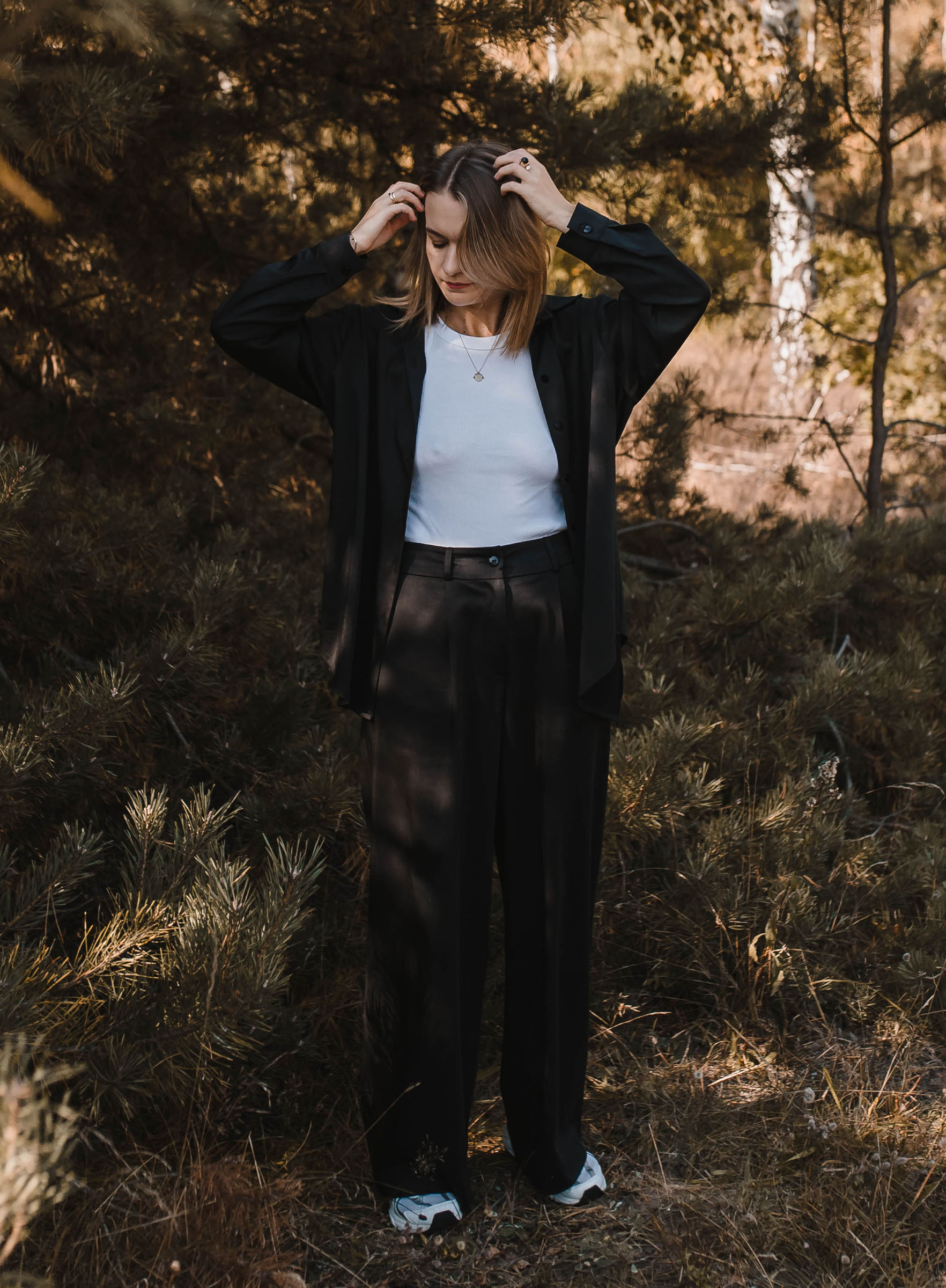 Spodnie typu palazzo, które pięknie balansują na granicy spodni i spódnicy. Trzymają luz w nogawkach, ale ładnie podkreślają biodra. Możecie potraktować je jako wstęp do eleganckiego outfitu (z koszulą), albo poluzować górę i zestawić je z bluzą albo gładkim longsleevem. Zobaczcie też koszulę, którą uszyliśmy w komplecie.
