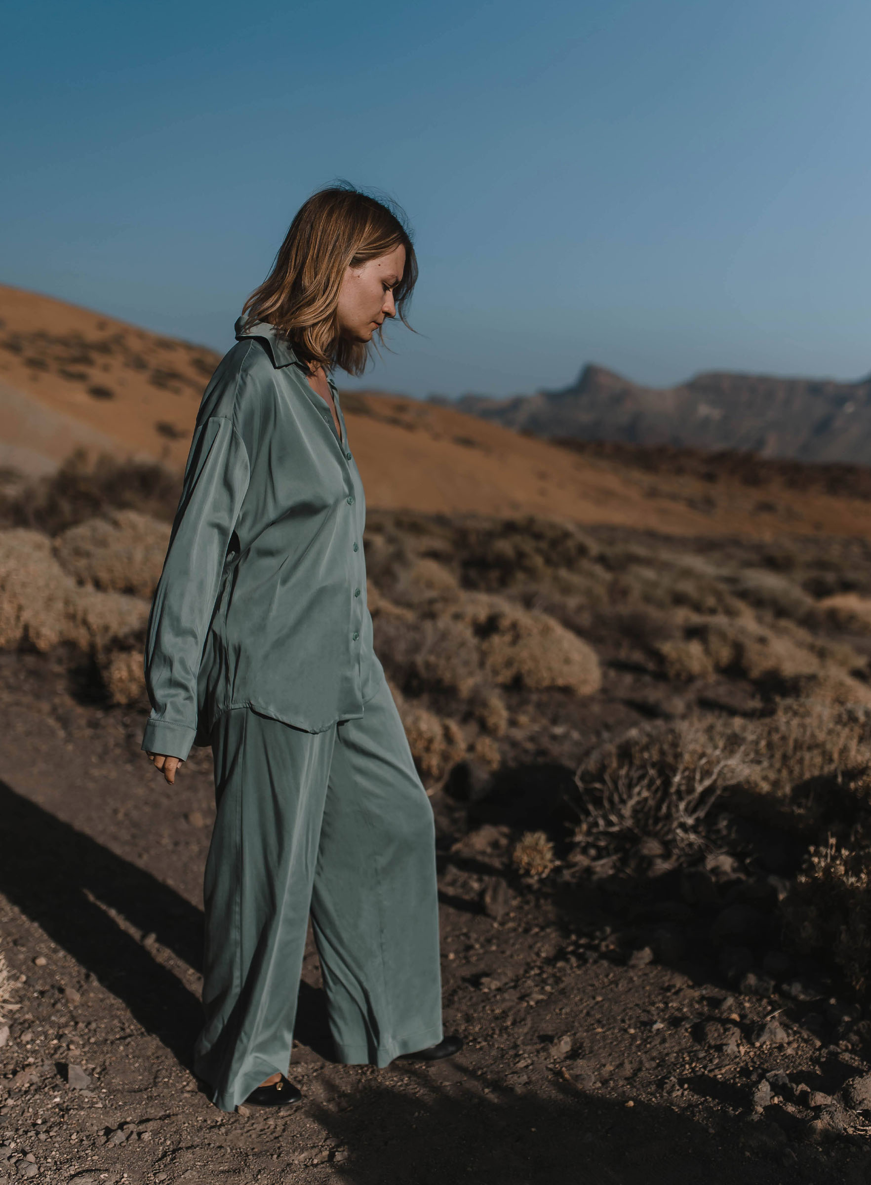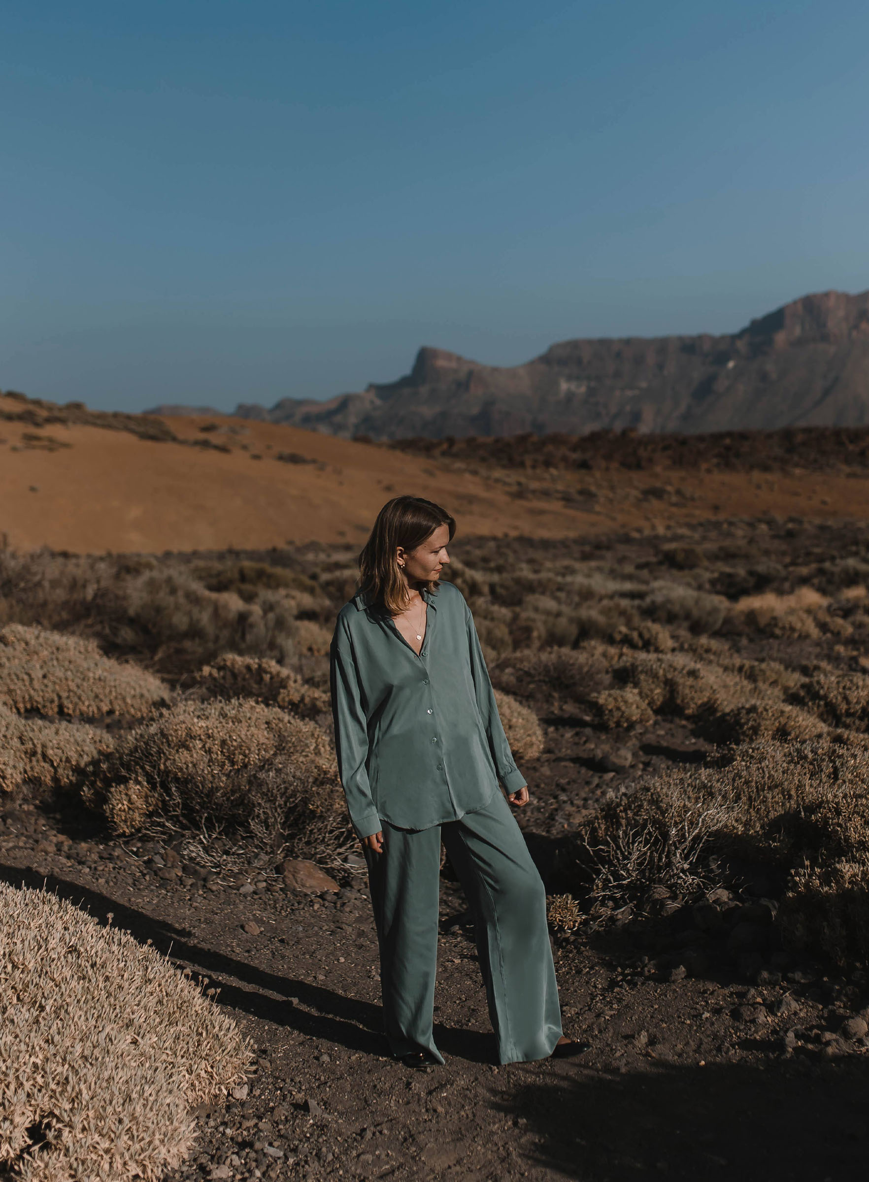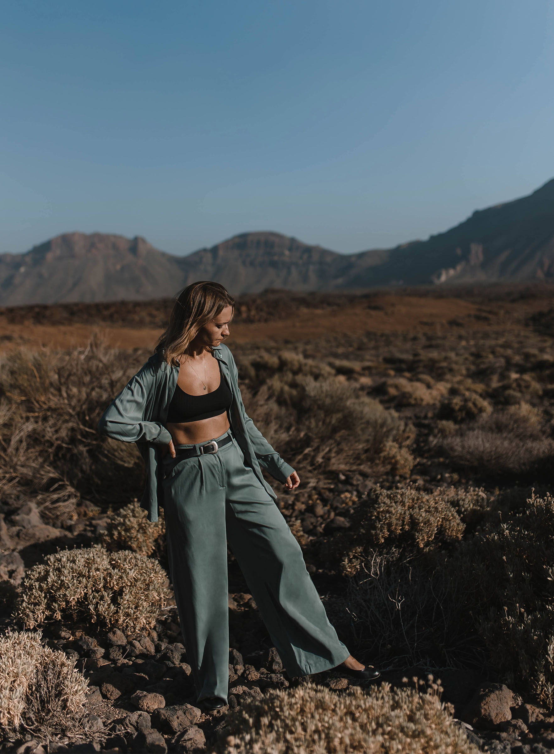 Spodnie typu palazzo, które pięknie balansują na granicy spodni i spódnicy. Trzymają luz w nogawkach, ale ładnie podkreślają biodra. Możecie potraktować je jako wstęp do eleganckiego outfitu (z koszulą), albo poluzować górę i zestawić je z bluzą albo gładkim longsleevem. Trochę szczegółów: szlufki na pasek, kieszenie, zakładki z przodu. Zobaczcie też koszulę, którą uszyliśmy w komplecie.