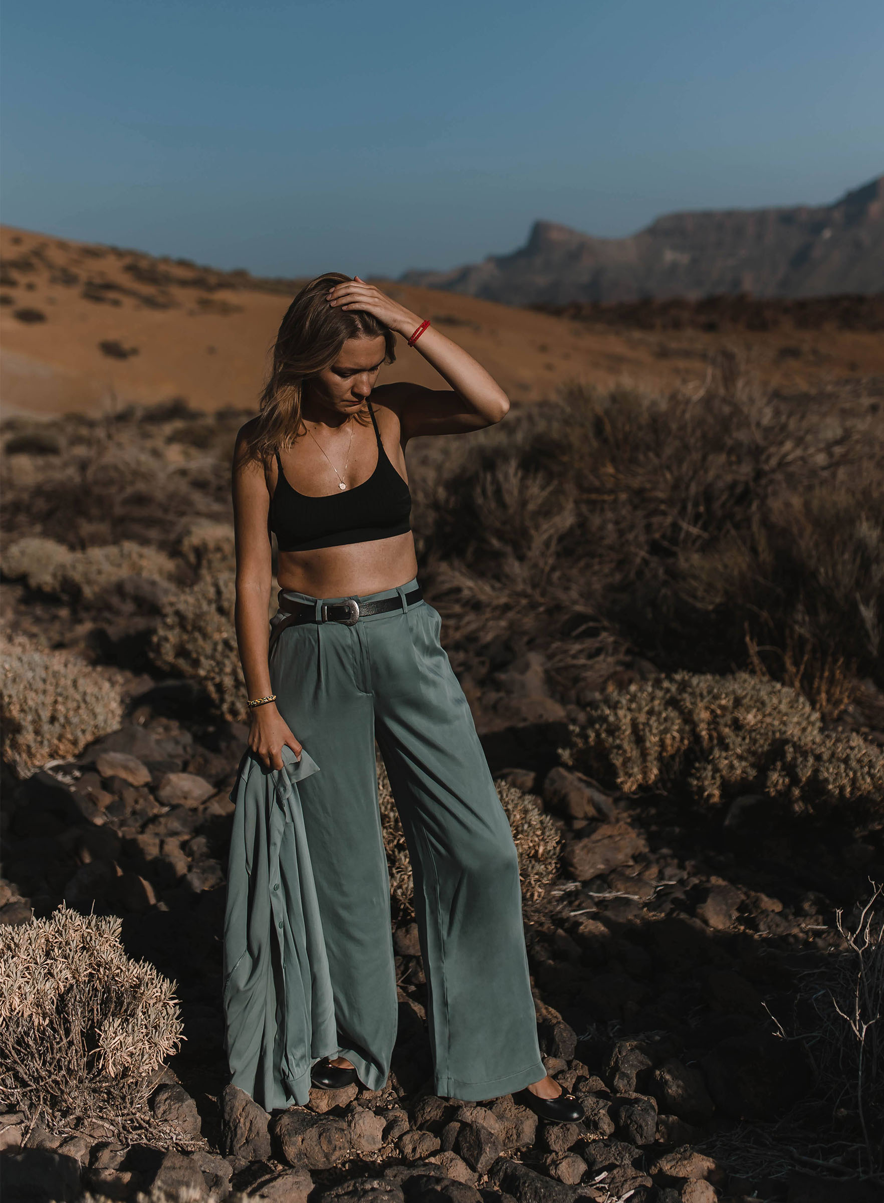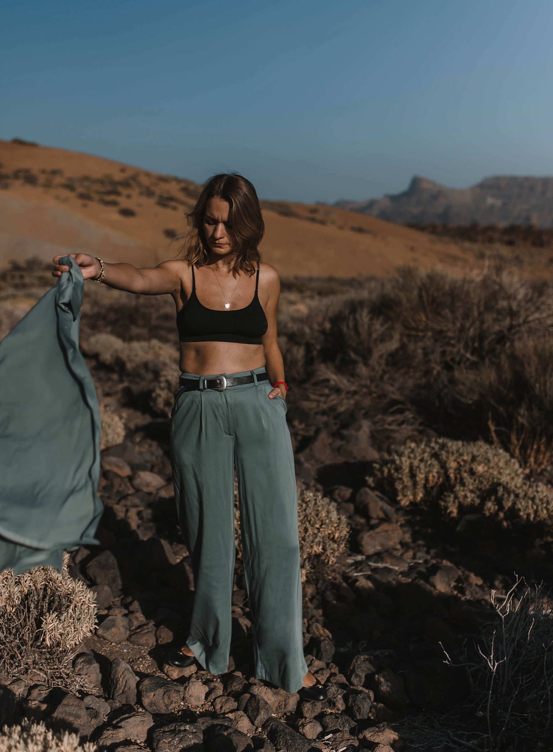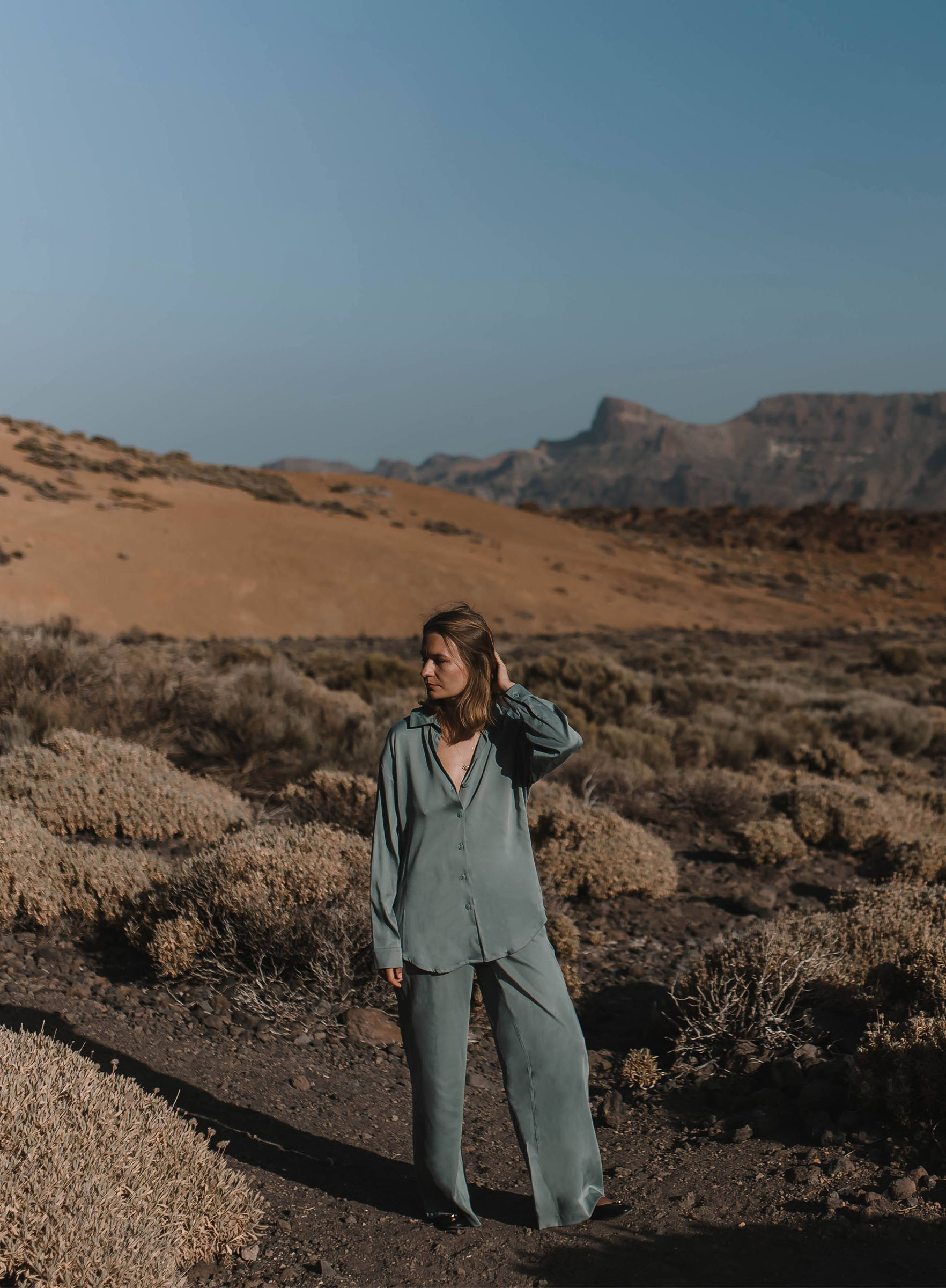 Spodnie typu palazzo, które pięknie balansują na granicy spodni i spódnicy. Trzymają luz w nogawkach, ale ładnie podkreślają biodra. Możecie potraktować je jako wstęp do eleganckiego outfitu (z koszulą), albo poluzować górę i zestawić je z bluzą albo gładkim longsleevem. Trochę szczegółów: szlufki na pasek, kieszenie, zakładki z przodu. Zobaczcie też koszulę, którą uszyliśmy w komplecie.
