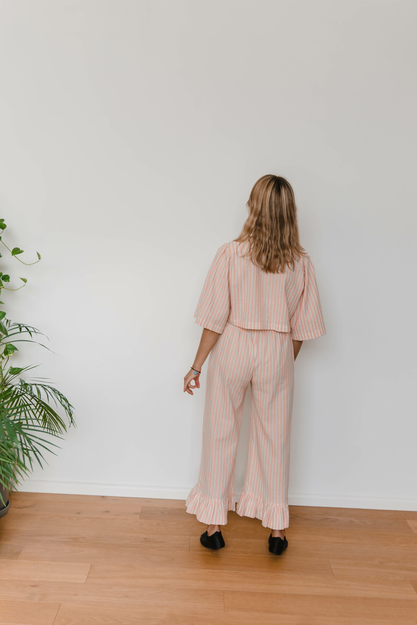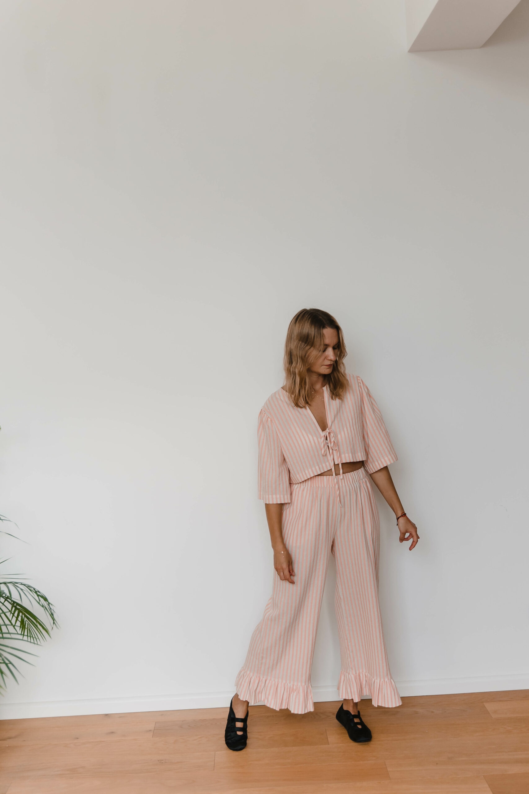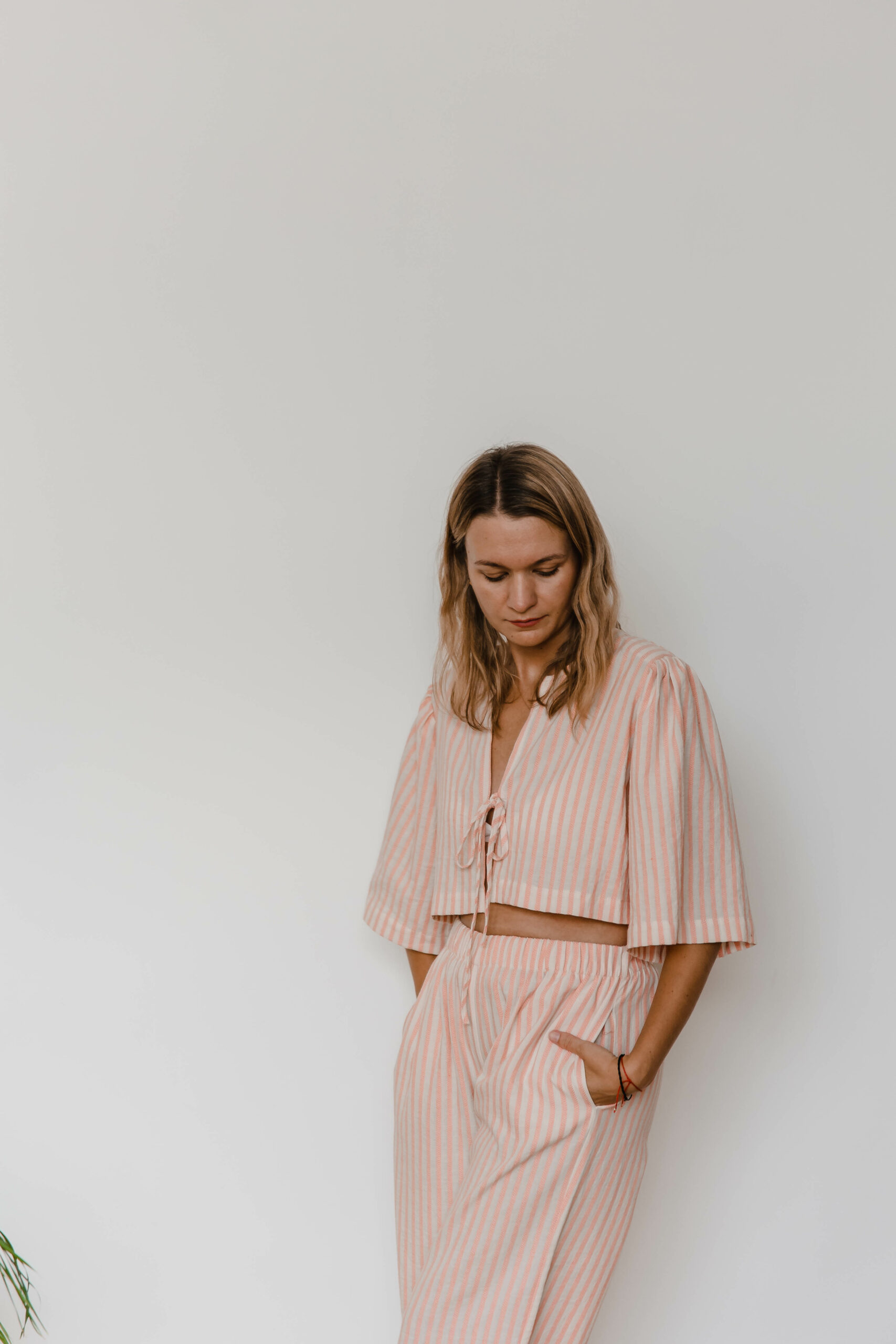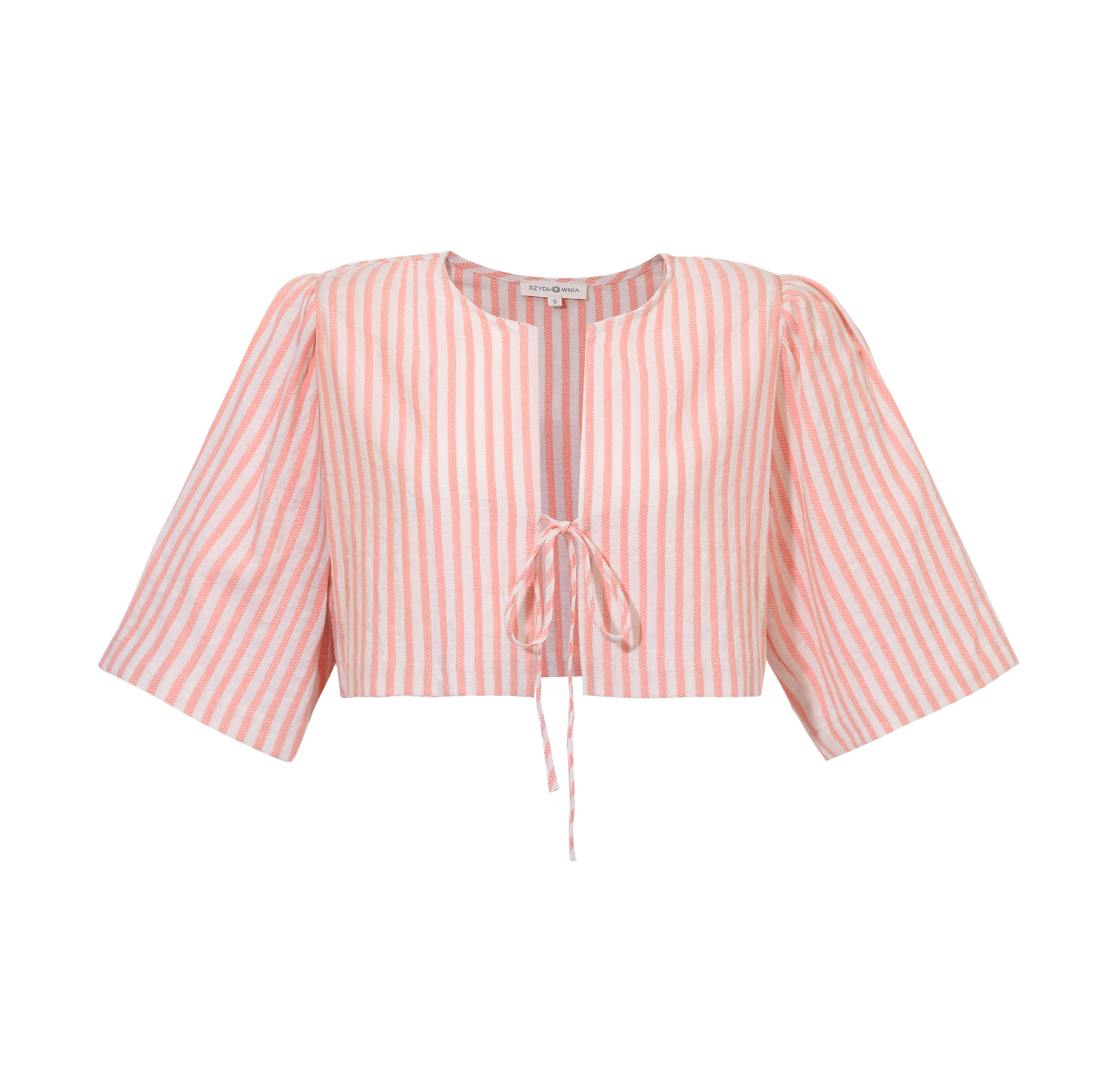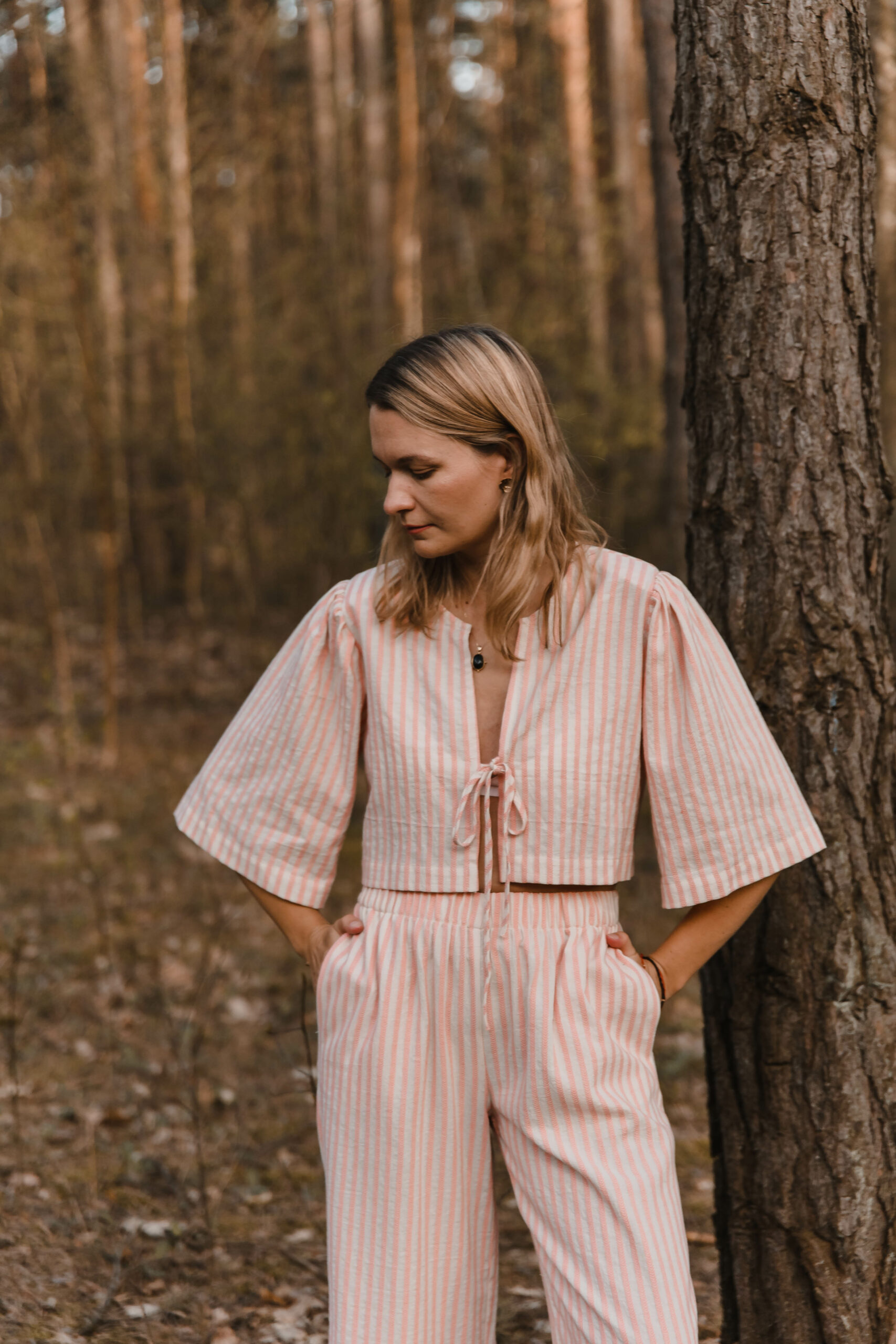 Narzutka w paski to definicja casualowego stylu. Jej prosta linia i klasyczny wzór w paski będą kropką nad i każdej stylizacji. Marszczone rękawy nadają lekkości i swobody ruchom, a wiązanie z przodu daje subtelny akcent kobiecości. Idealna na letnie wieczory. Możesz nosić ze spodniami do kompletu, dżinsami lub sukienką! Dowolność wskazana 😉