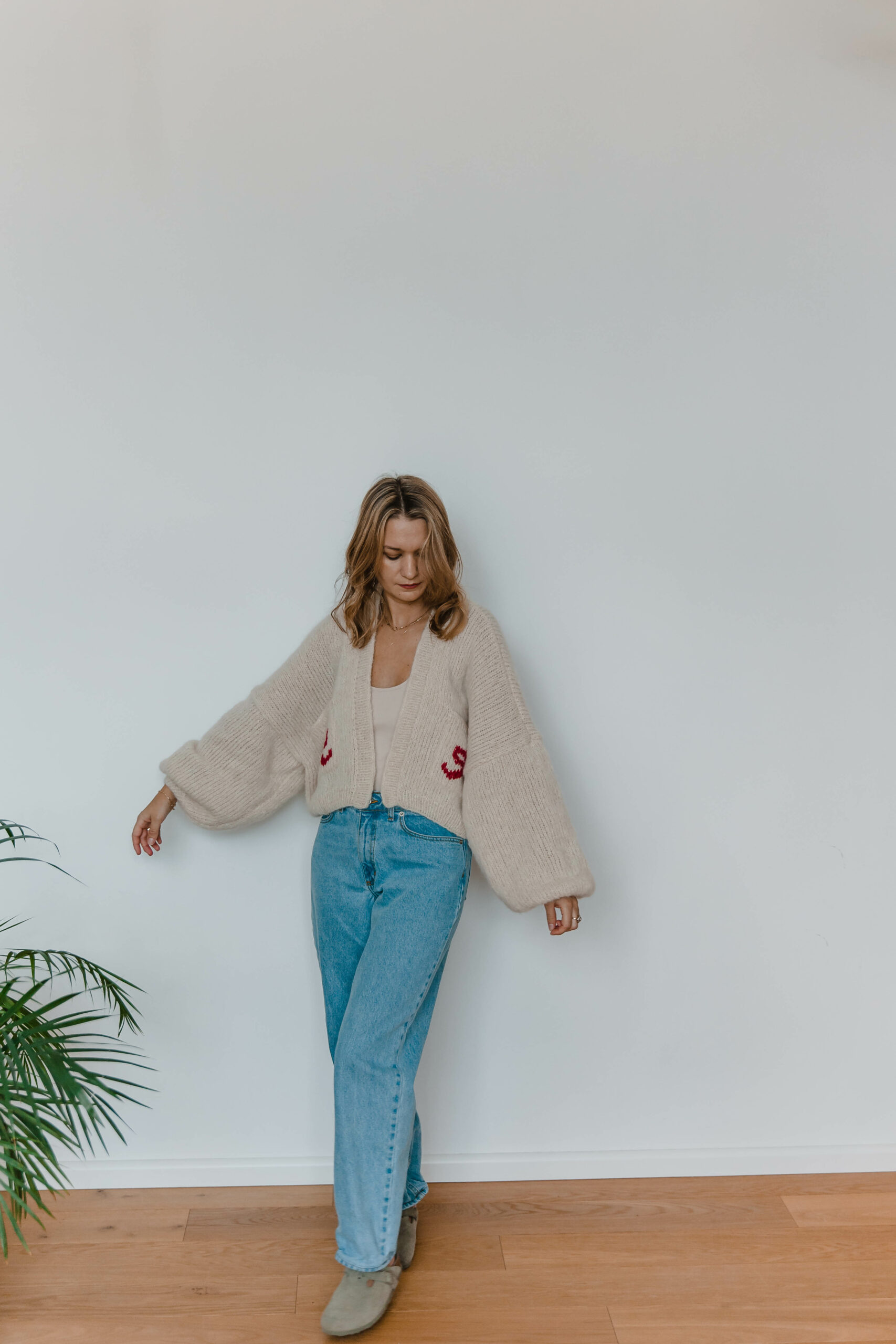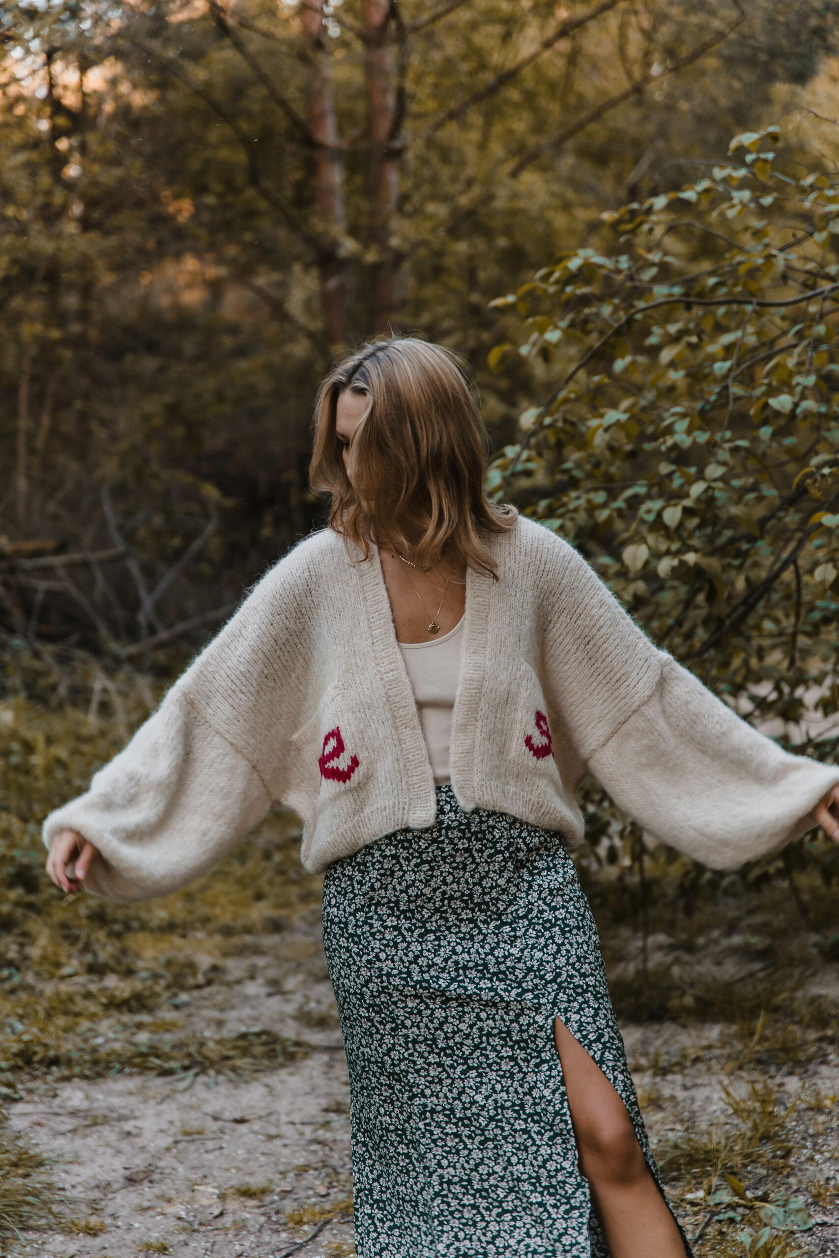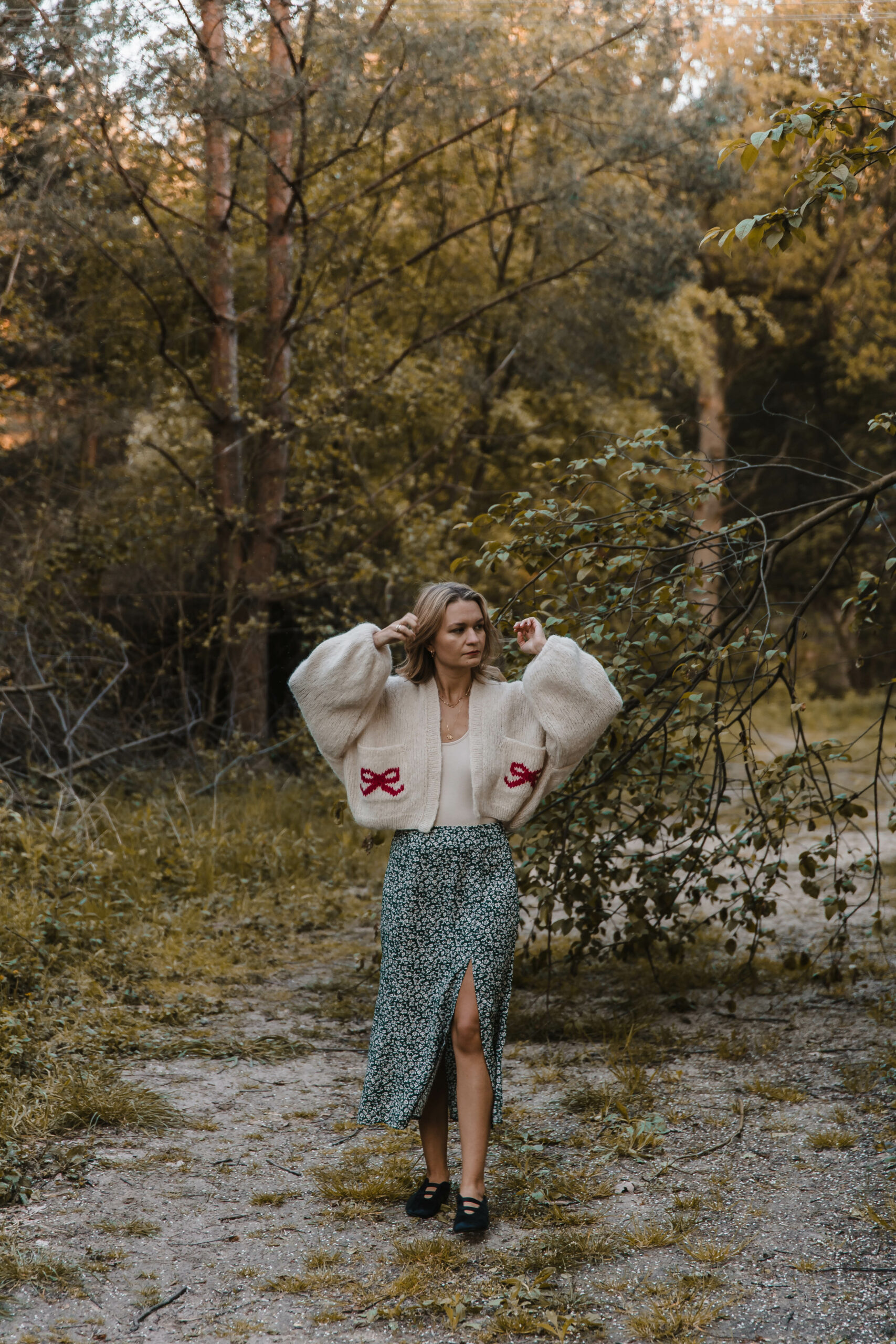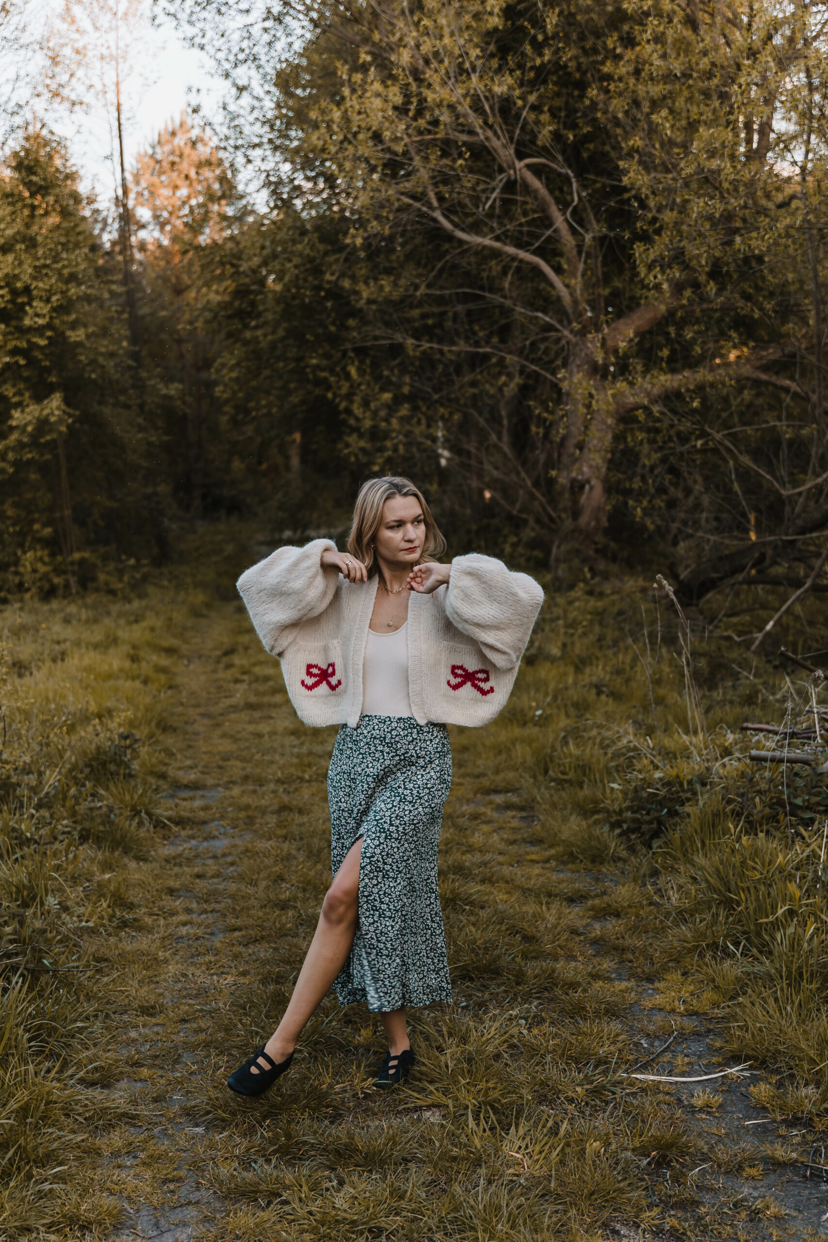 Sweet Bow Cardigan podbije serce każdej romantyczki. Dzięki połączeniu alpaki i jedwabiu uzyskujemy efekt niezwykłej delikatności. Haftowane kokardki są brakującym puzzlem tej dziewczęcej układanki.