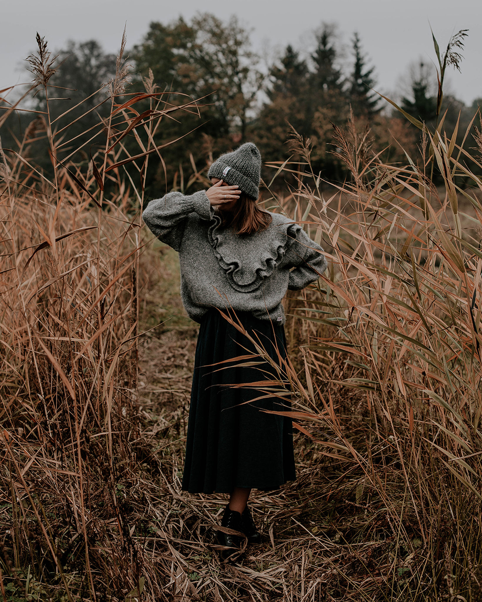 Pielęgnacja: pierz ręcznie w delikatnych płynach, susz na leżąco, nie prasuj. Zaprojektowano i wykonano całkowicie ręcznie w Polsce.