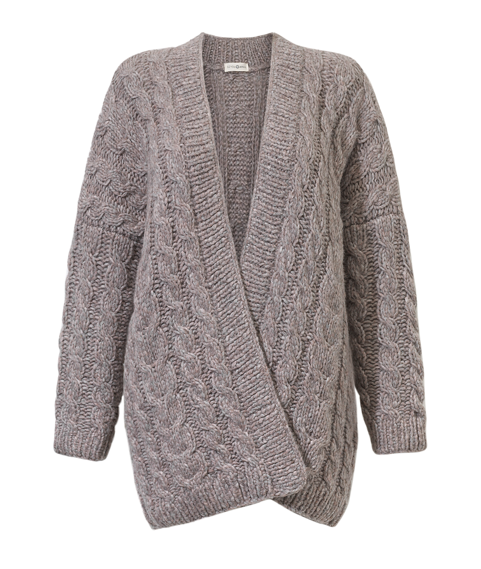 Ręcznie wykonany kardigan w fantazyjny, warkoczowy wzór. Luźna forma zakończona ściągaczem. Na zamówienie kardigan jest dostępny w innych kolorach.