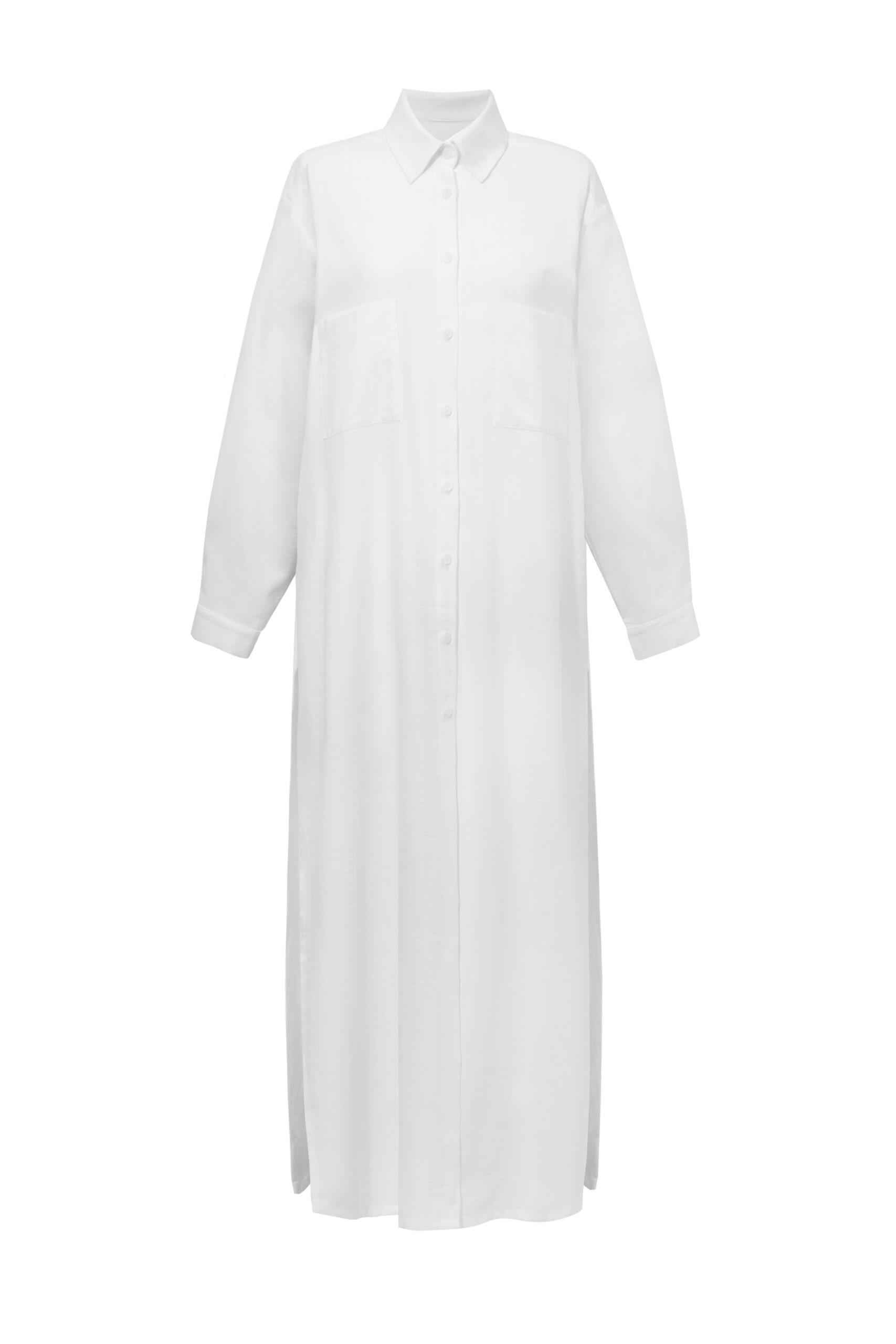 Koszula? Sukienka? A może jedno i drugie naraz? Ten model ma guziki od góry do kolan, dwa rozcięcia po bokach, które dają więcej swobody niż niejeden wolny weekend, i fason, który sprawdzi się w każdej sytuacji – od biura po piasek (serio). Możesz nosić ją solo, na spodnie, do szortów, na kostium czy jako lekką narzutkę, gdy „coś by się przydało zarzucić”. Dostępna w wersji błękitnej jak niebo i białej. Uniwersalna i wygodna.