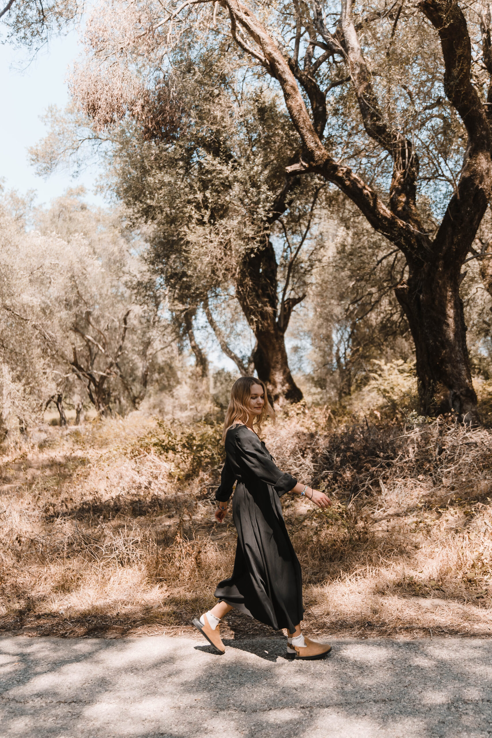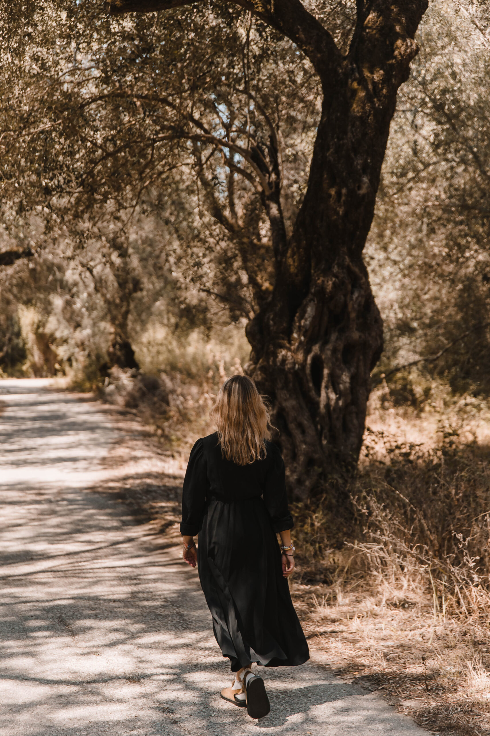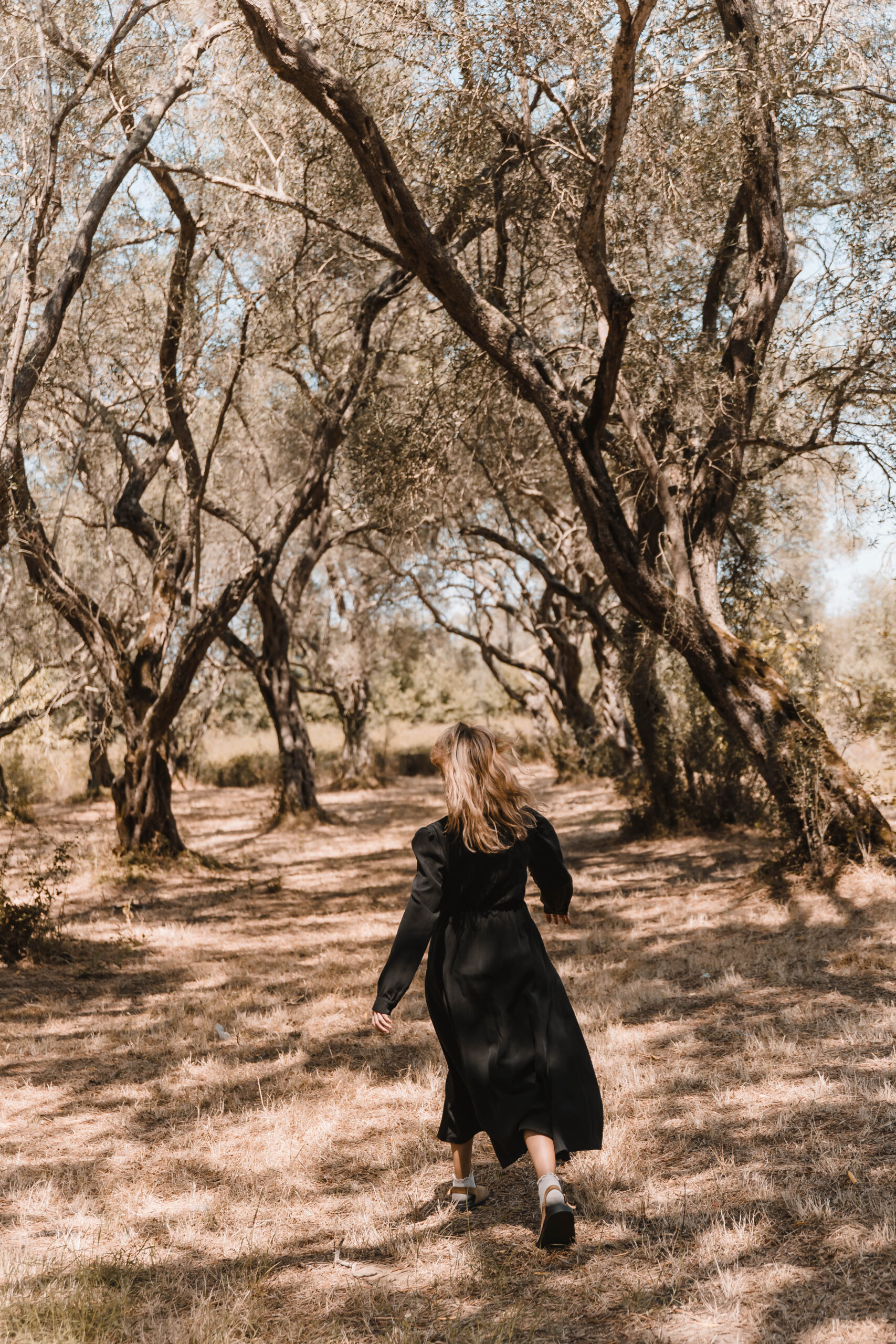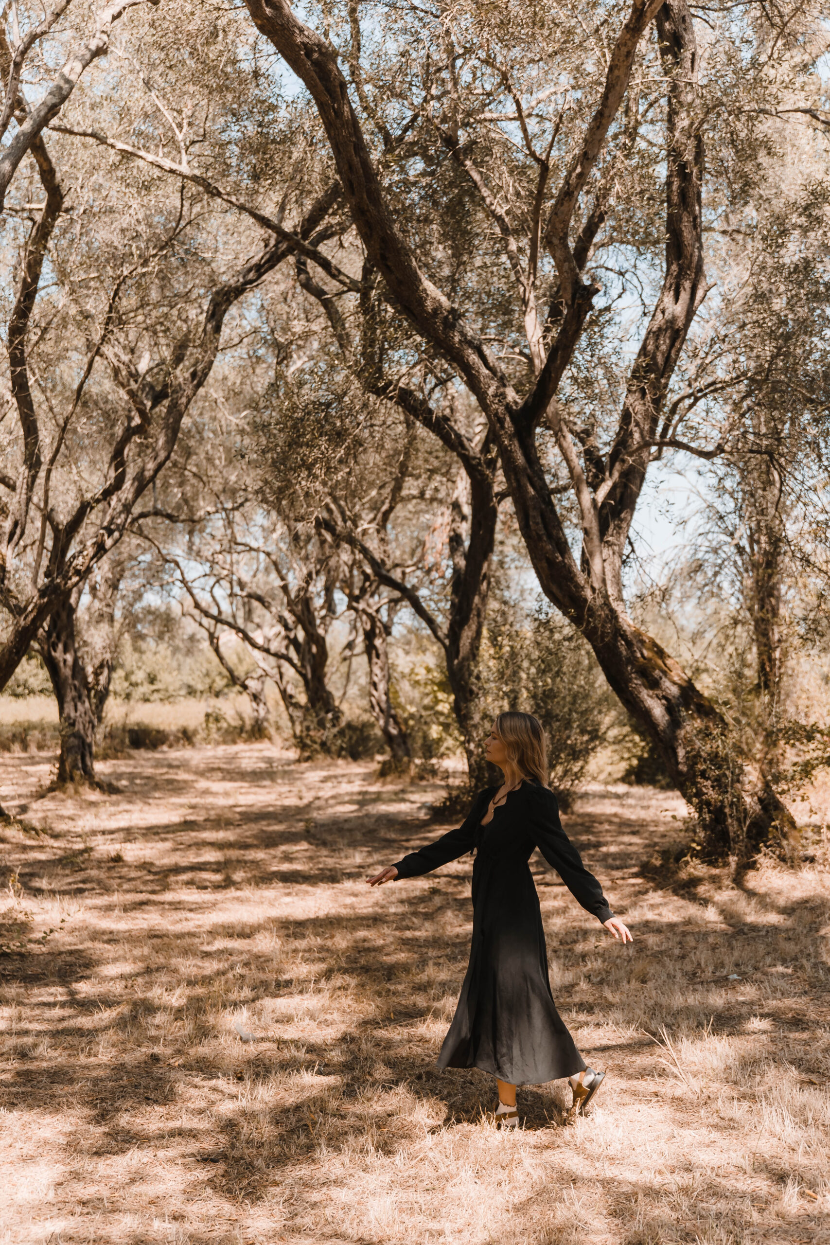 Ta sukienka w klasycznej czerni zachwyca elegancją i nietuzinkowymi detalami. Wykonana z lekkiego, zwiewnego materiału, zapewnia swobodę ruchu, a długość midi nadaje jej ponadczasowego stylu. Falujący dekolt przyciąga wzrok i dodaje romantyzmu, a uroczy guzik w kształcie truskawki nadaje całości niepowtarzalnego charakteru. Sukienka jest wygodna dzięki elastycznej gumce w pasie, która subtelnie podkreśla talię, oraz praktycznemu suwakowi z boku, ułatwiającemu zakładanie. Dodatkowym atutem są kieszenie, które wprowadzają odrobinę casualowego stylu, czyniąc tę sukienkę idealną zarówno na codzienne wyjścia, jak i wyjątkowe okazje.